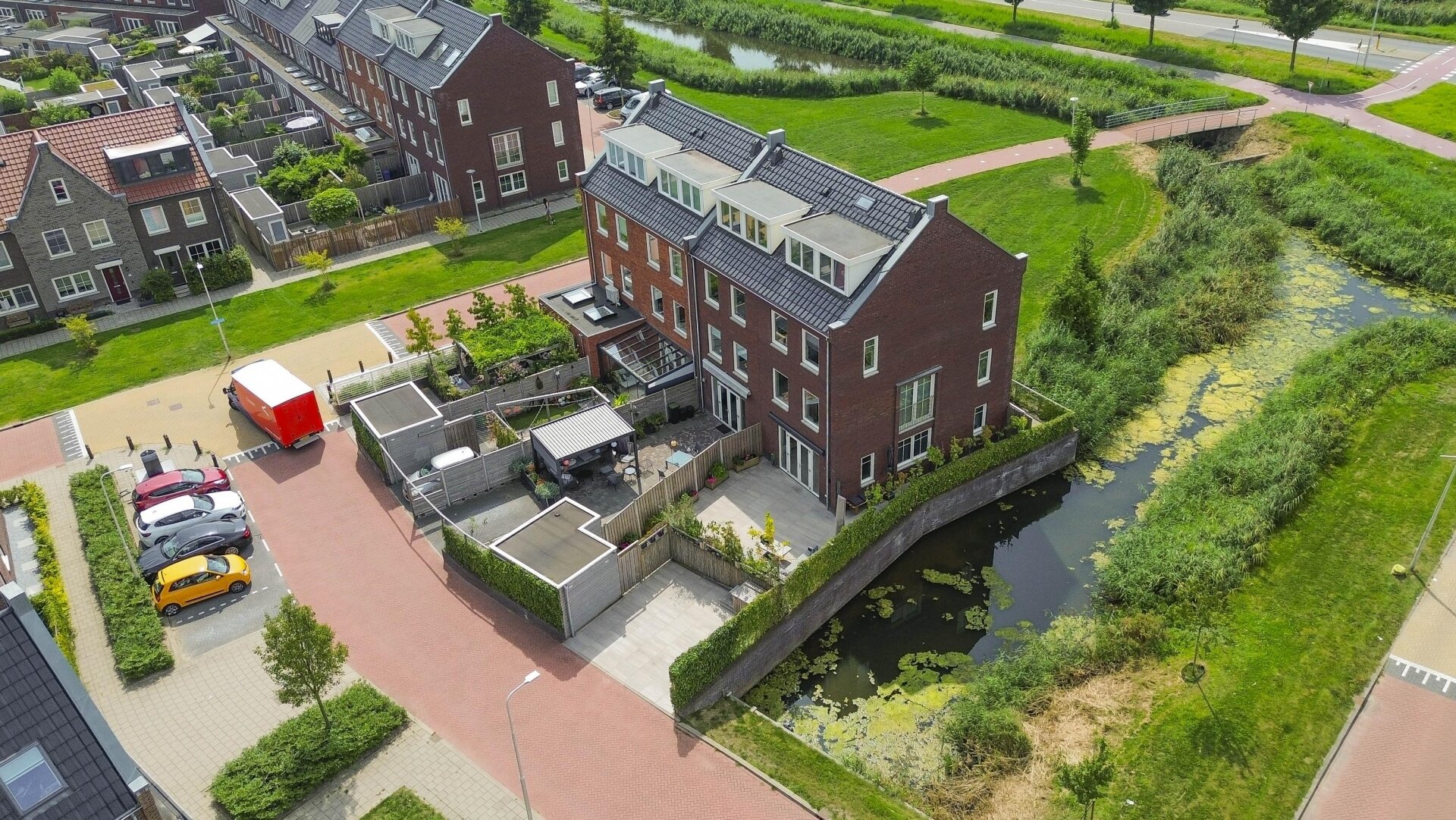 HIER BESCHIK JE OVER EEN ROYAAL PERCEEL VAN 192m2 EIGEN GROND INCLUSIEF 2 RUIME PARKEERPLAATSEN OP EIGEN TERREIN MET EEN FIJNE TUIN EN EEN VRIJ UITZICHT, EEN PLEK WAAR JE IN ALLE RUST KUNT ONTSPANNEN.