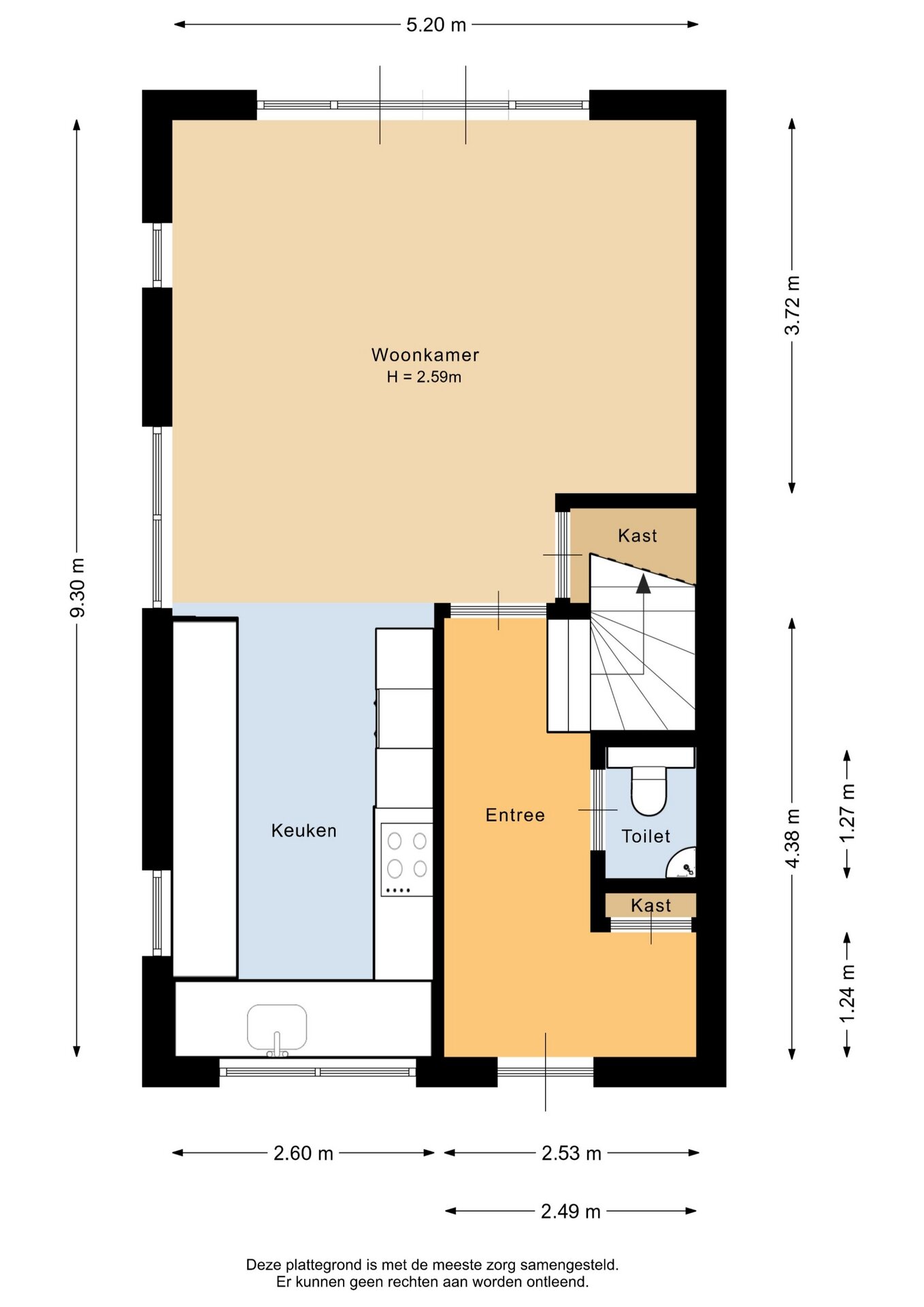 “Deze informatie is door ons met de nodige zorgvuldigheid samengesteld. Onzerzijds wordt echter geen enkele aansprakelijkheid aanvaard voor enige onvolledigheid, onjuistheid of anderszins, dan wel de gevolgen daarvan. Alle opgegeven maten en oppervlakten zijn indicatief.”