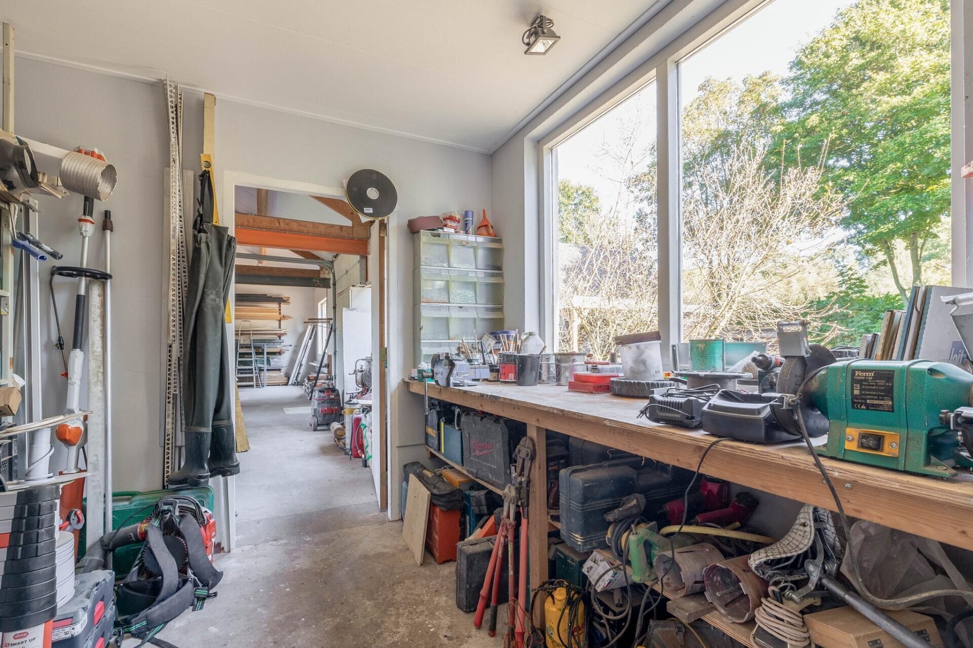 Achter het huis vind je een enorme werkplaats van meer dan 115 m2, die in 2012 volledig gerenoveerd is met onder andere een nieuw pannendak. Ideaal voor ondernemers die werken aan huis, mantelzorgwoning, fanatieke klussers, hobbyisten of voor wie extra opslag nodig heeft. De werkplaats is makkelijk bereikbaar via een brede oprit. Hier kun je jouw werk en wonen op een unieke manier combineren zonder concessies te hoeven doen, want er is in 2024 ook nog een garage gebouwd en een carport.