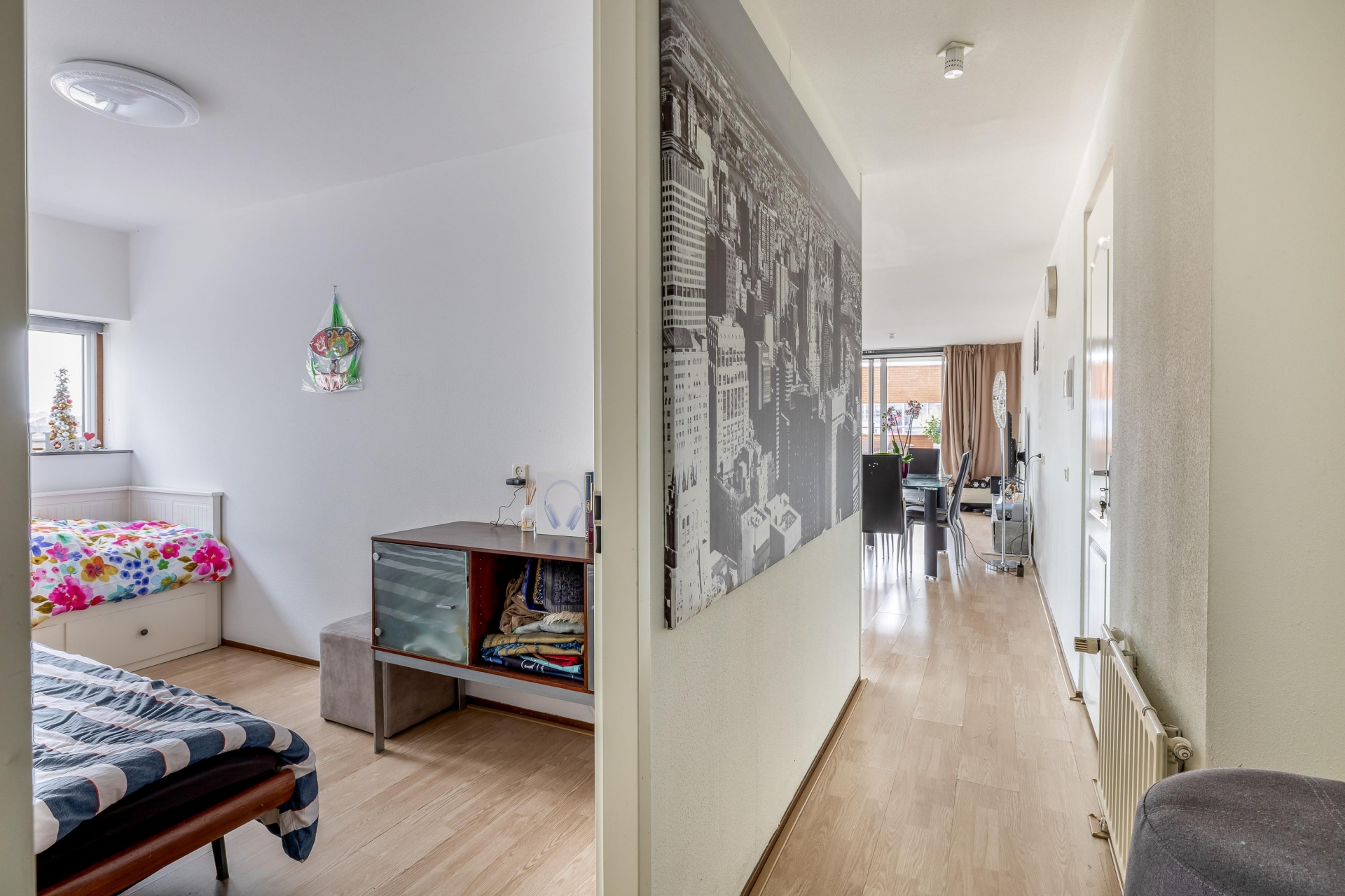 Het appartement beschikt over twee slaapkamers, beide goed van formaat en praktisch in te delen. De grootste slaapkamer biedt voldoende ruimte voor een tweepersoonsbed en kastruimte en voelt rustig en comfortabel aan. De tweede slaapkamer is ideaal als werkkamer, logeerkamer of eventueel kinderkamer. Dat maakt dit huis flexibel in gebruik en geschikt voor verschillende woonwensen. De badkamer is netjes en voorzien van een douche en wastafel. Daarnaast is er een separaat toilet, wat altijd prettig is. Vanuit de hal heb je toegang tot alle vertrekken, wat zorgt voor een logische en fijne indeling. Extra praktisch is de inpandige berging op de tweede verdieping. Ideaal voor het opbergen van spullen die je niet dagelijks nodig hebt, zoals koffers, seizoensspullen of gereedschap. Zo houd je het appartement zelf netjes en overzichtelijk.