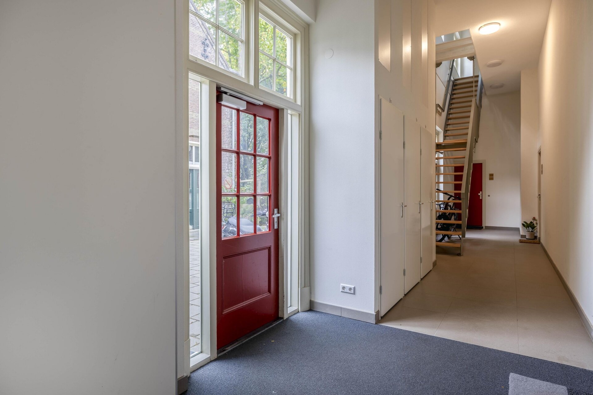 Via het voormalig schoolplein en de voormalige entree van de school kom je binnen in een ruime hal. In deze hal komen alle voordeuren van de 5 appartementen op de begane grond uit. Op de 2e woonlaag bevinden zich nog eens 5 appartementen. Een kleinschalig en verscholen complex met een unieke luxe sfeer middenin de binnenstad. Op slechts een paar stappen afstand vind je ambachtelijke winkeltjes, de bruisende markt en tal van gezellige restaurants en cafés. Dankzij de nabijheid van het NS-station en de uitvalswegen ben je bovendien verzekerd van een uitstekend verbinding. Naast de levendigheid van de stad biedt de omgeving veel mogelijkheden voor ontspanning. Kortom; een ideale ligging!