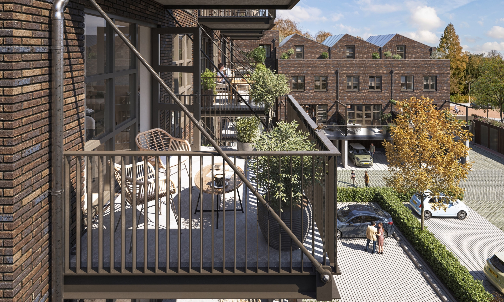 Vanuit de woonkamer stap je direct het zonnige balkon op, dat op het zuiden ligt. Hier kun je het hele jaar door genieten van de zon. Perfect voor een kop koffie in de ochtend of een ontspannen avond in de buitenlucht.