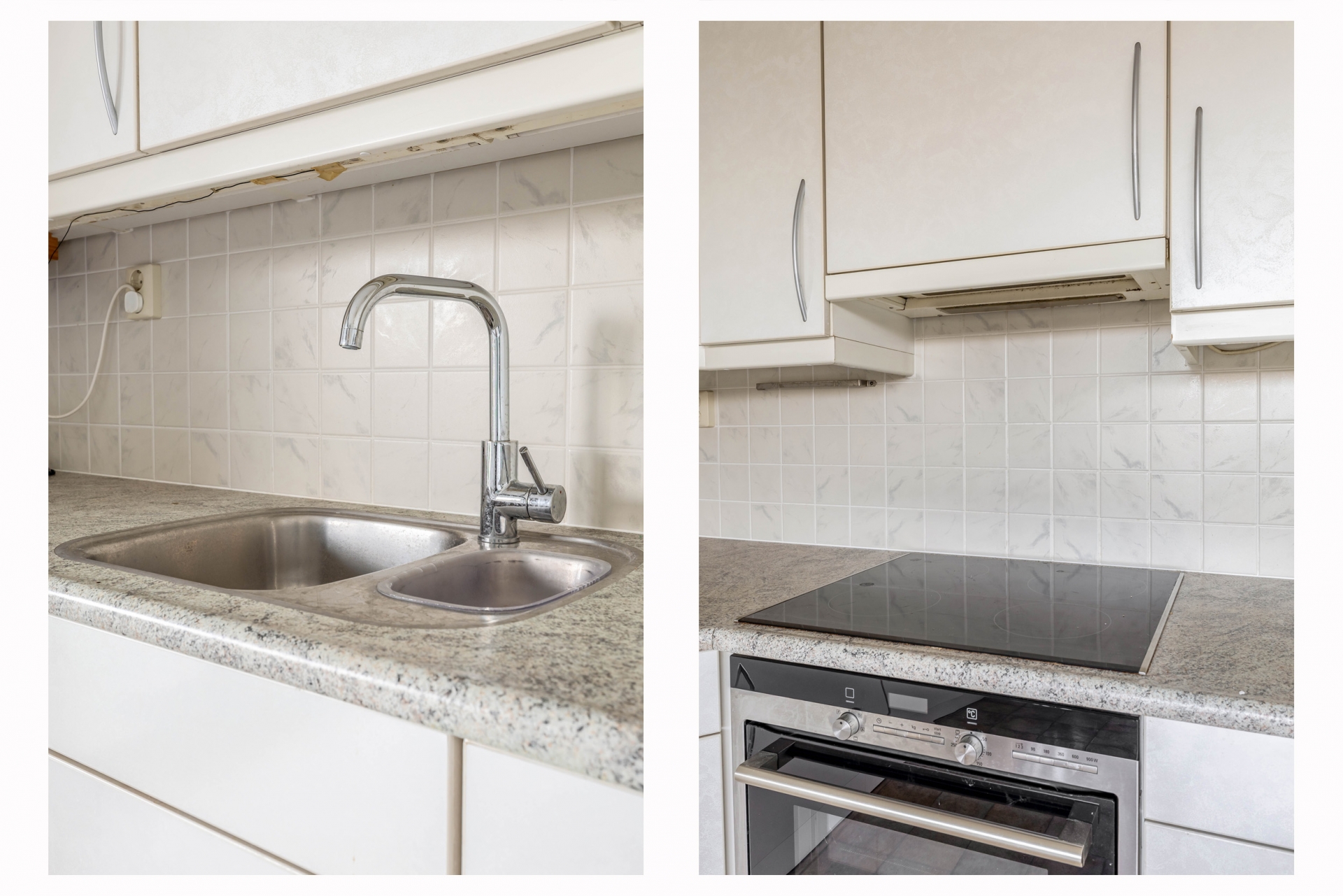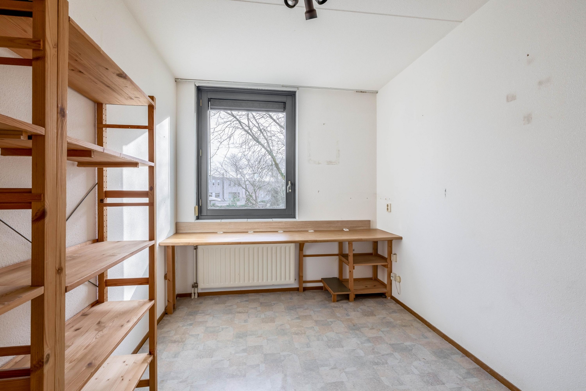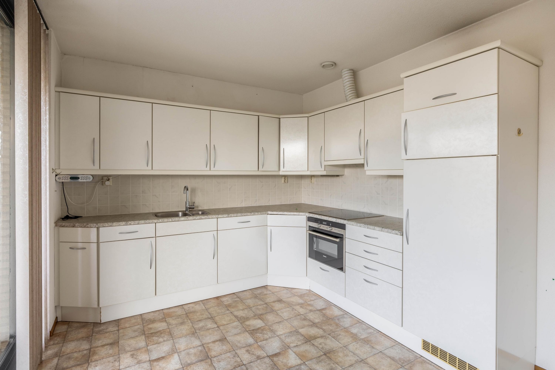 De halfopen keuken heeft een fijne maatvoering en biedt volop kastruimte en werkblad. Hier is ruimte genoeg om een eethoek te plaatsen, waardoor het echt een woonkeuken wordt.