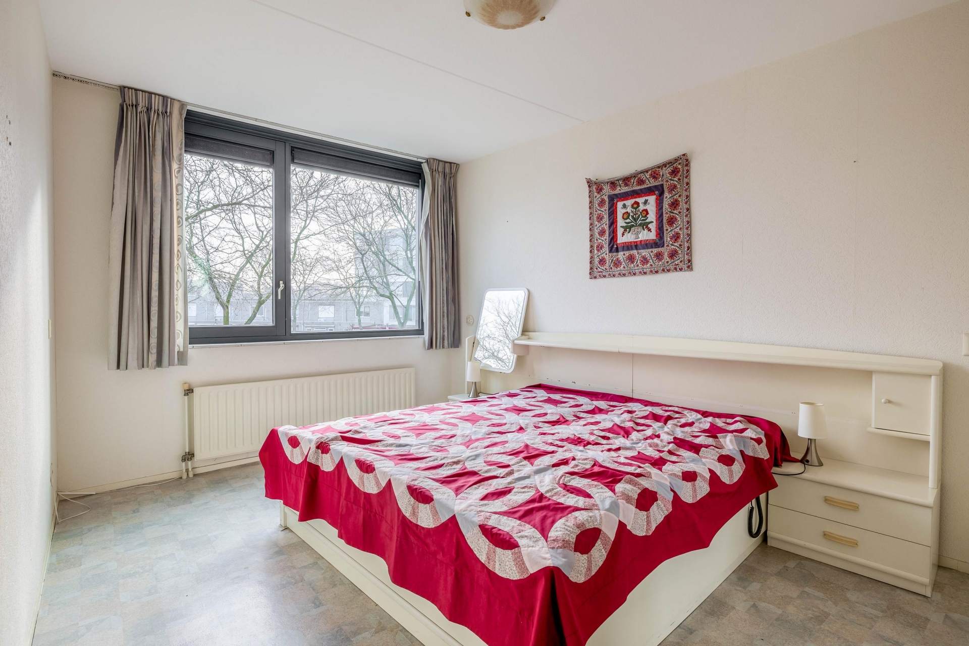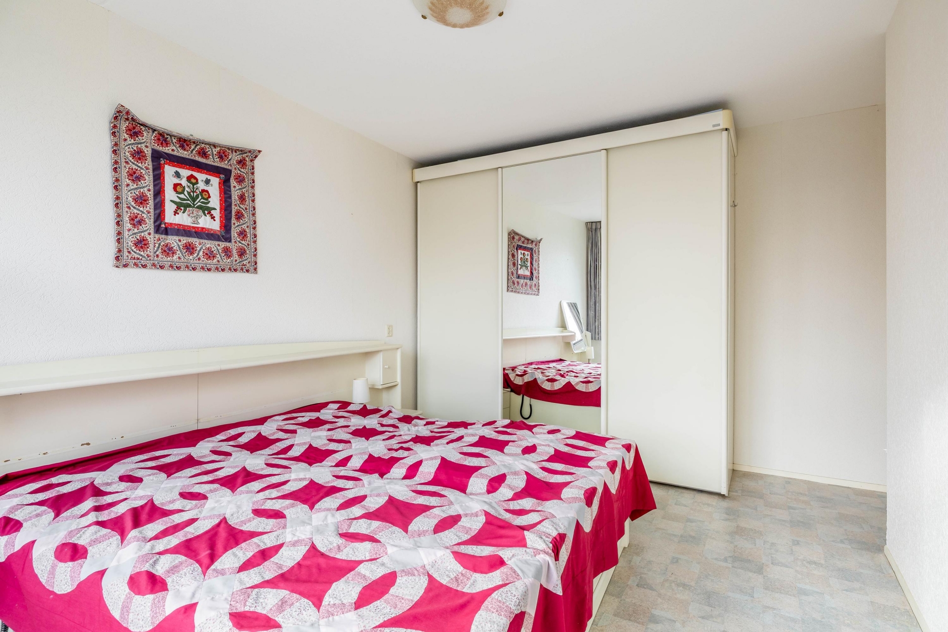 Het appartement beschikt over twee goed bemeten slaapkamers. De grootste slaapkamer biedt volop ruimte voor een tweepersoonsbed en een grote kastenwand. De tweede kamer is ideaal als logeerkamer, hobbyruimte of werkkamer.