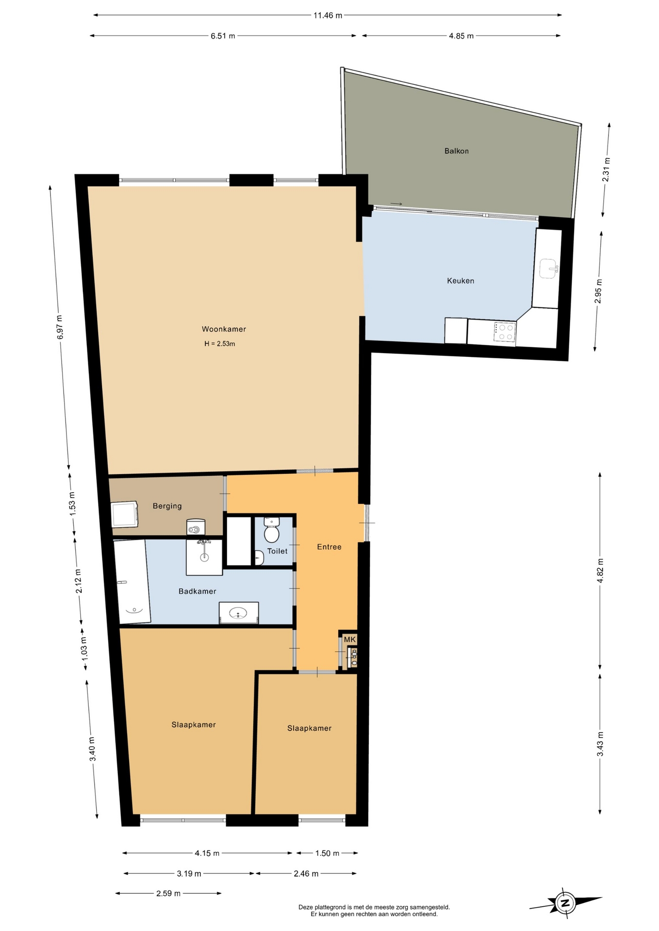 “Deze informatie is door ons met de nodige zorgvuldigheid samengesteld. Onzerzijds wordt echter geen enkele aansprakelijkheid aanvaard voor enige onvolledigheid, onjuistheid of anderszins, dan wel de gevolgen daarvan. Alle opgegeven maten en oppervlakten zijn indicatief.”