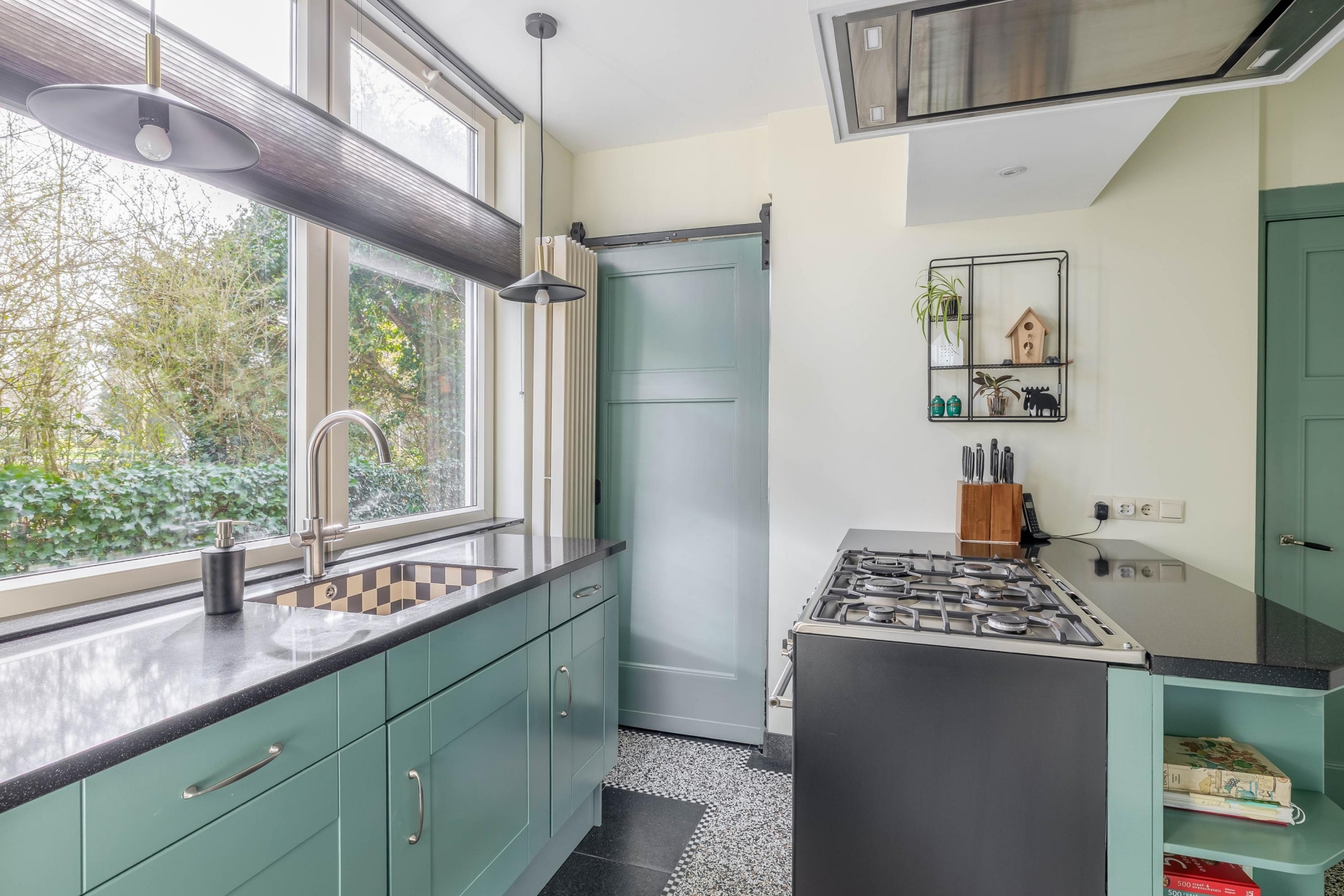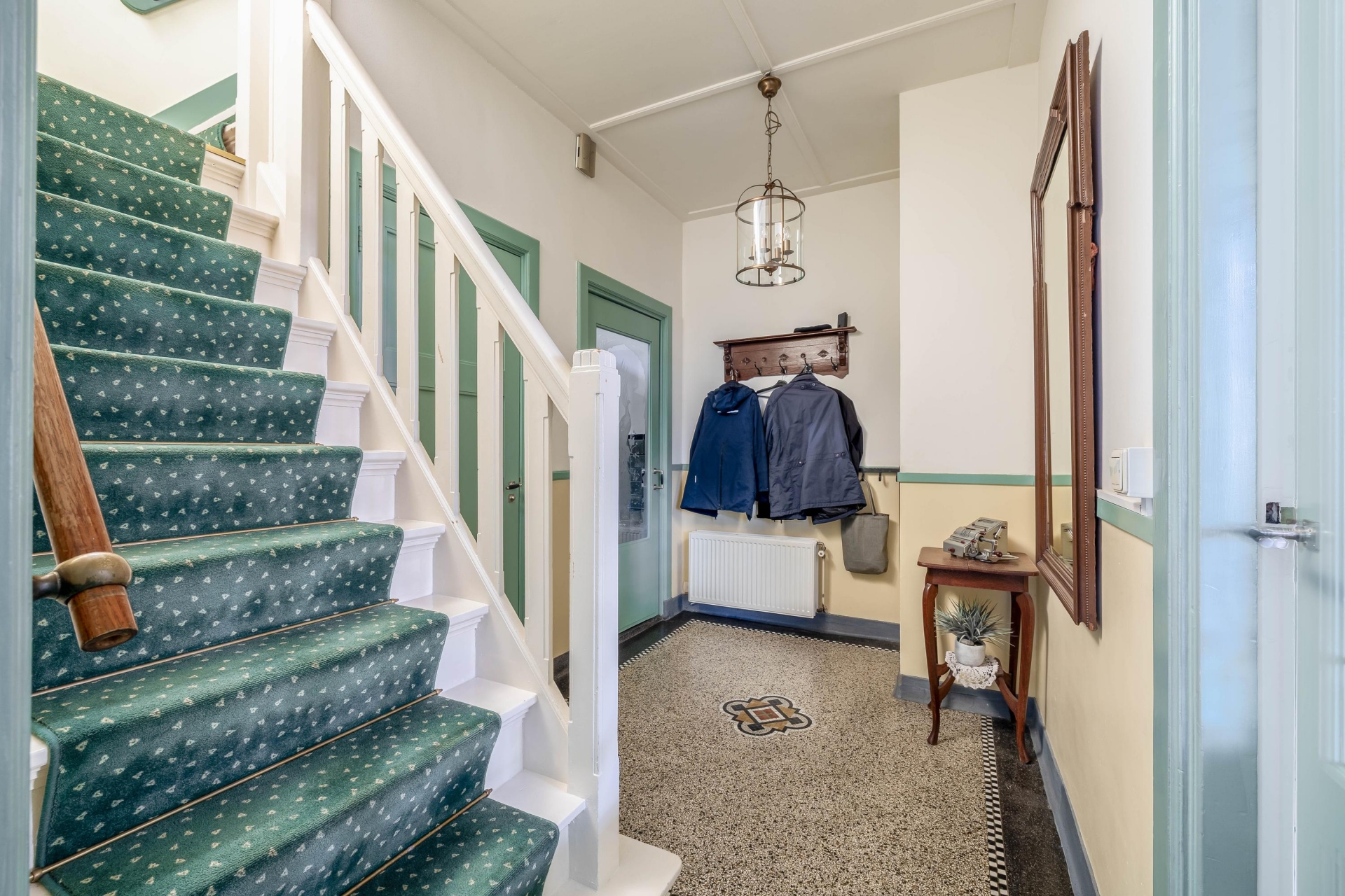 De woning ademt de sfeer van de jaren ’30 met prachtige originele details zoals een doorlopende terrazzovloer in de hal, glas-in-lood deuren en een erker aan de voorzijde. Tegelijkertijd is er aandacht geweest voor comfort en duurzaamheid, onder meer door de plaatsing van 20 zonnepanelen, isolatie en een energielabel C.