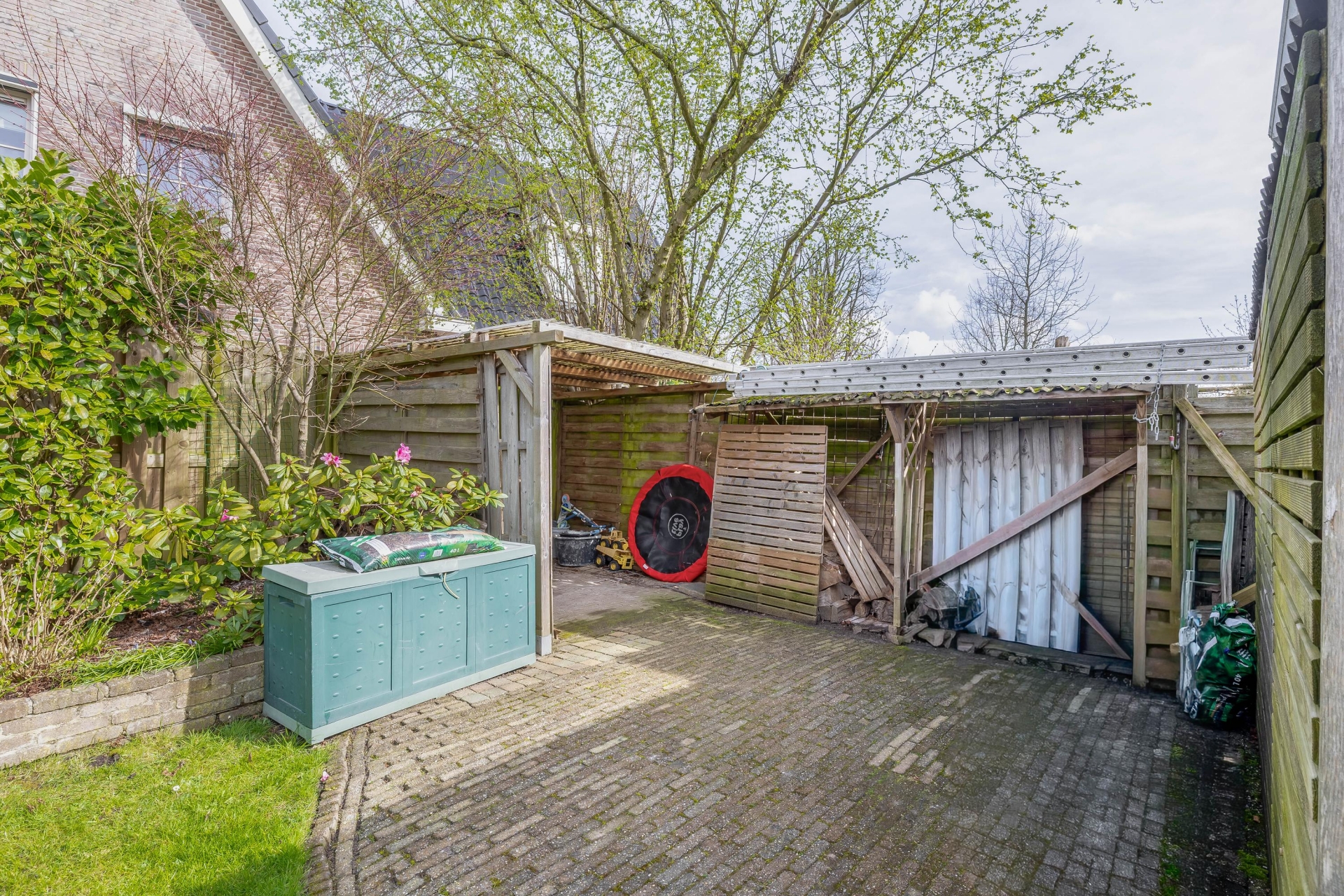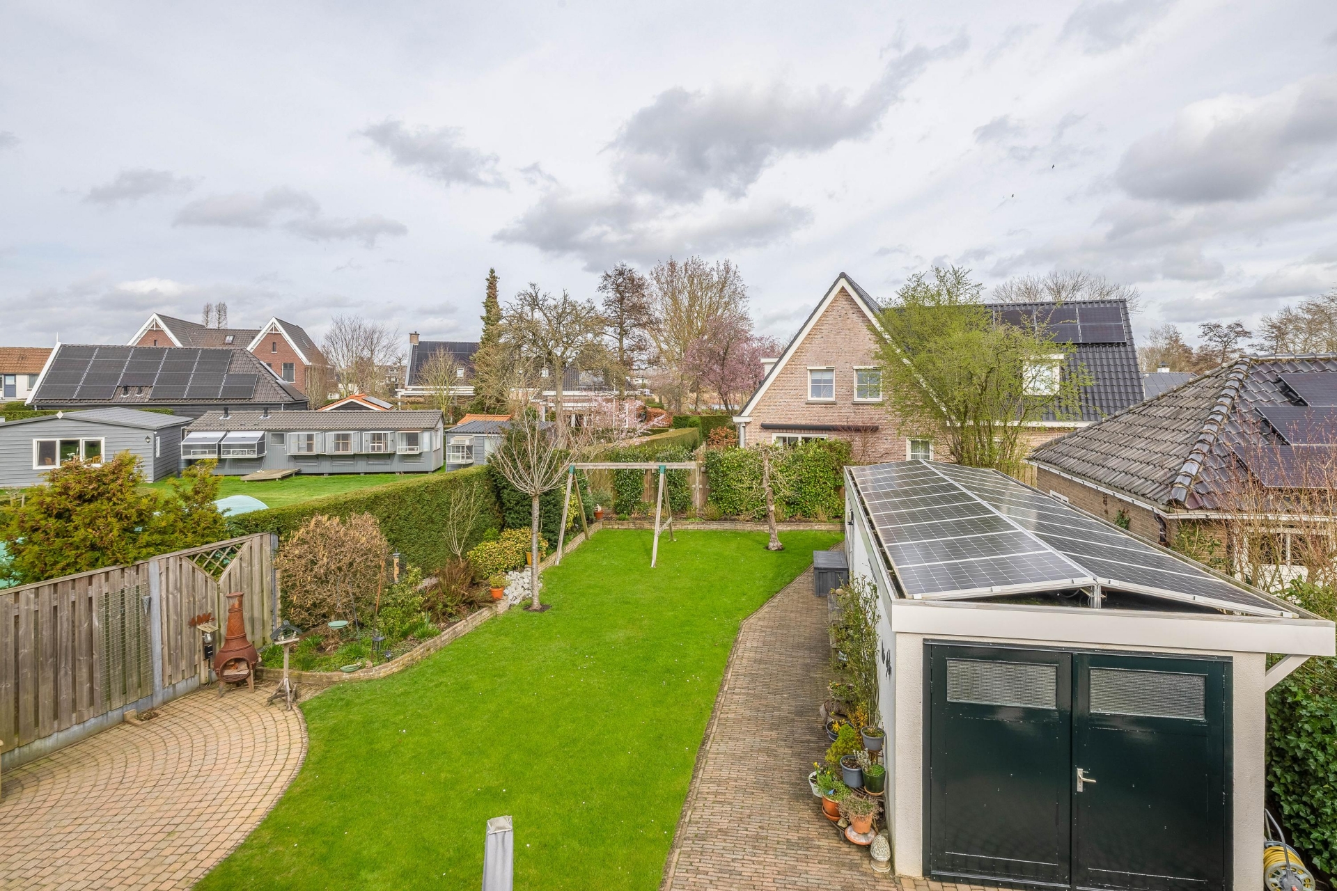 De brede en diepe achtertuin is fraai aangelegd, zeer vrij gelegen en biedt veel privacy. Achterin staat een ruime schuur/loods, ideaal als werkruimte, hobbyruimte of extra opslag. Op het dak zijn 20 zonnepanelen geplaatst.