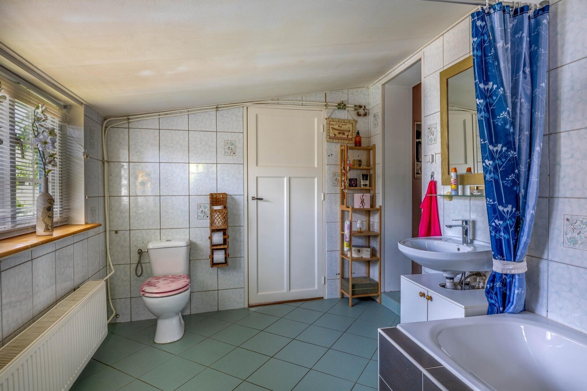 Op de eerste verdieping vind je nu één royale slaapkamer, met volop licht en zicht op de tuin. In het verleden waren dit twee ruime slaapkamers – wie dat wenst, kan die indeling eenvoudig terugbrengen. De bovenverdieping is bereikbaar via een karakteristieke trap en heeft een prettige, rustige sfeer die past bij het huis. Boven slapen en beneden leven? Of toch liever slapen én werken op beide verdiepingen? Alles is mogelijk.