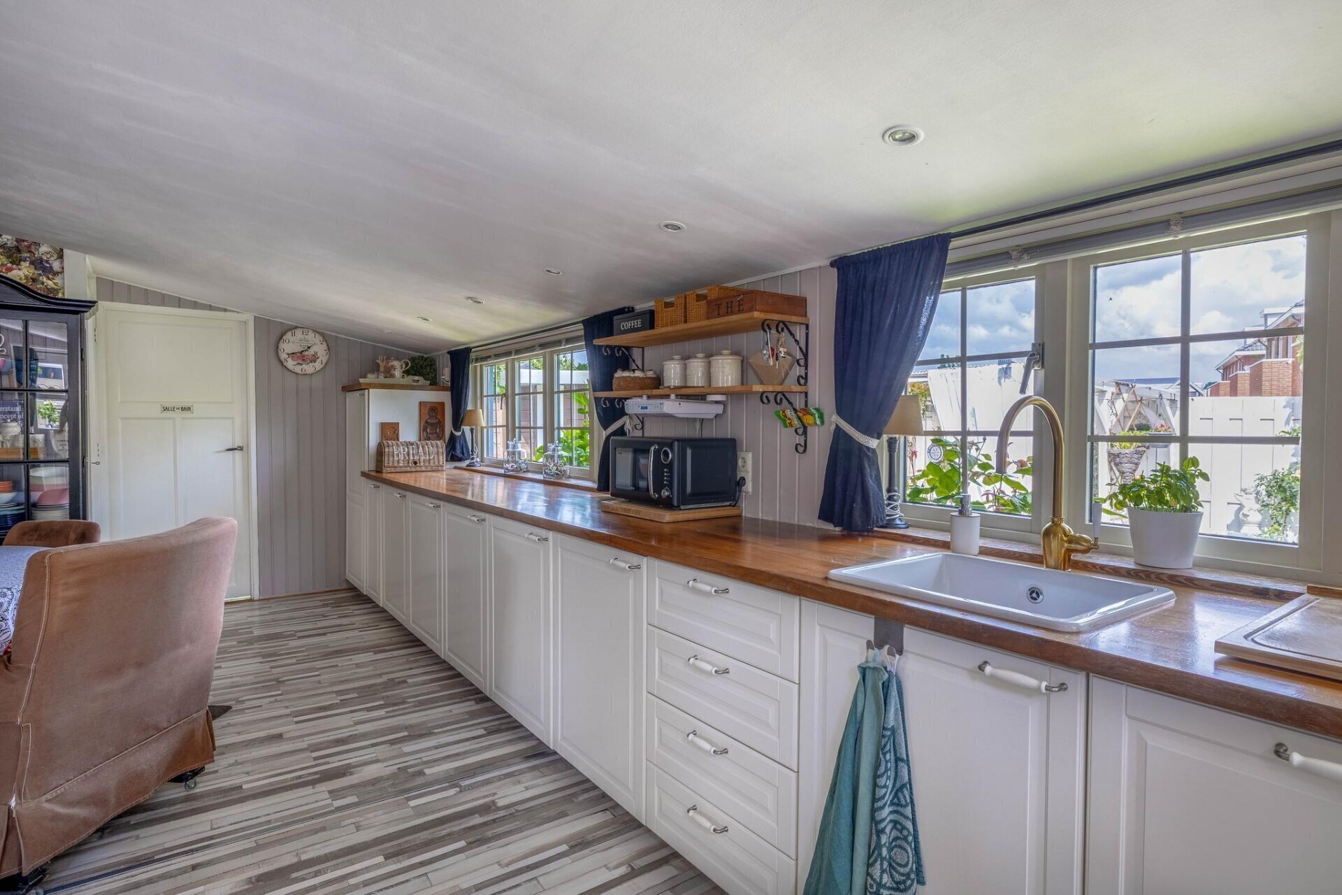 De woonkeuken aan de achterzijde (21m²) is een echte eyecatcher. Deze is in 2018 vernieuwd en van alle gemakken voorzien. Hier kook je heerlijk en dankzij de openslaande deur zet je met mooi weer zo de buitenwereld naar binnen. De badkamer ligt eveneens op de begane grond, de woonkeuken was in het verleden als slaapkamer en bijkeuken ingedeeld – Deze ruimte kun je natuurlijk opnieuw indelen naar jouw wensen wanneer je er een levensloopbestendige huis van wilt maken.