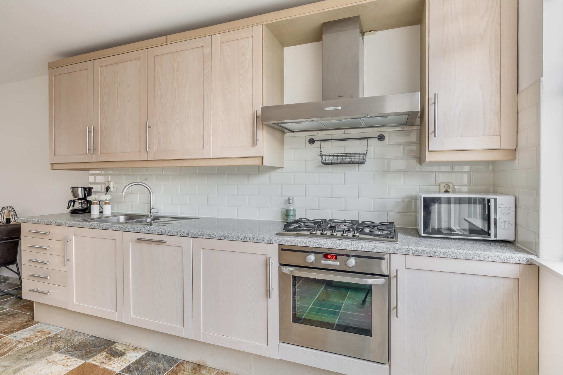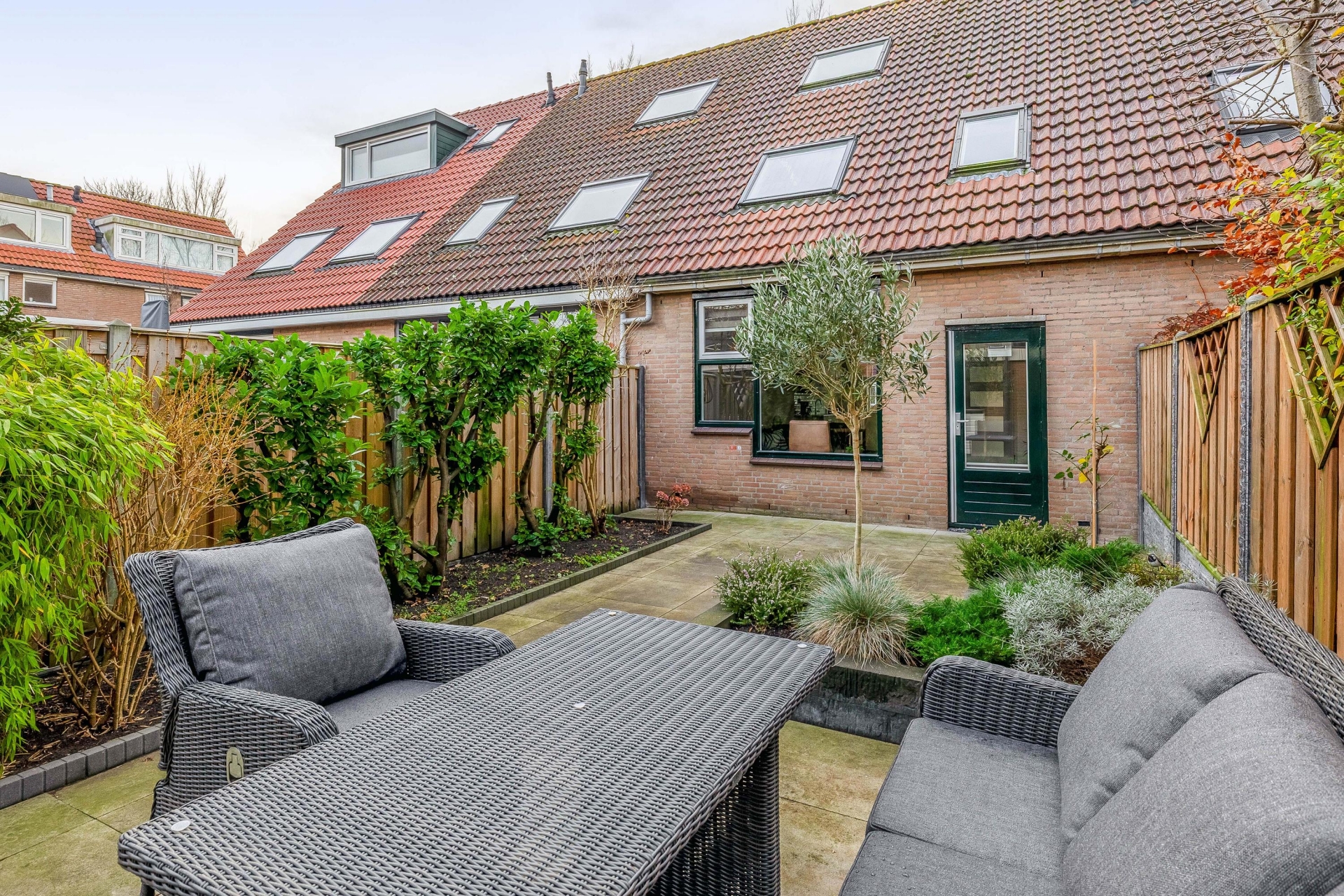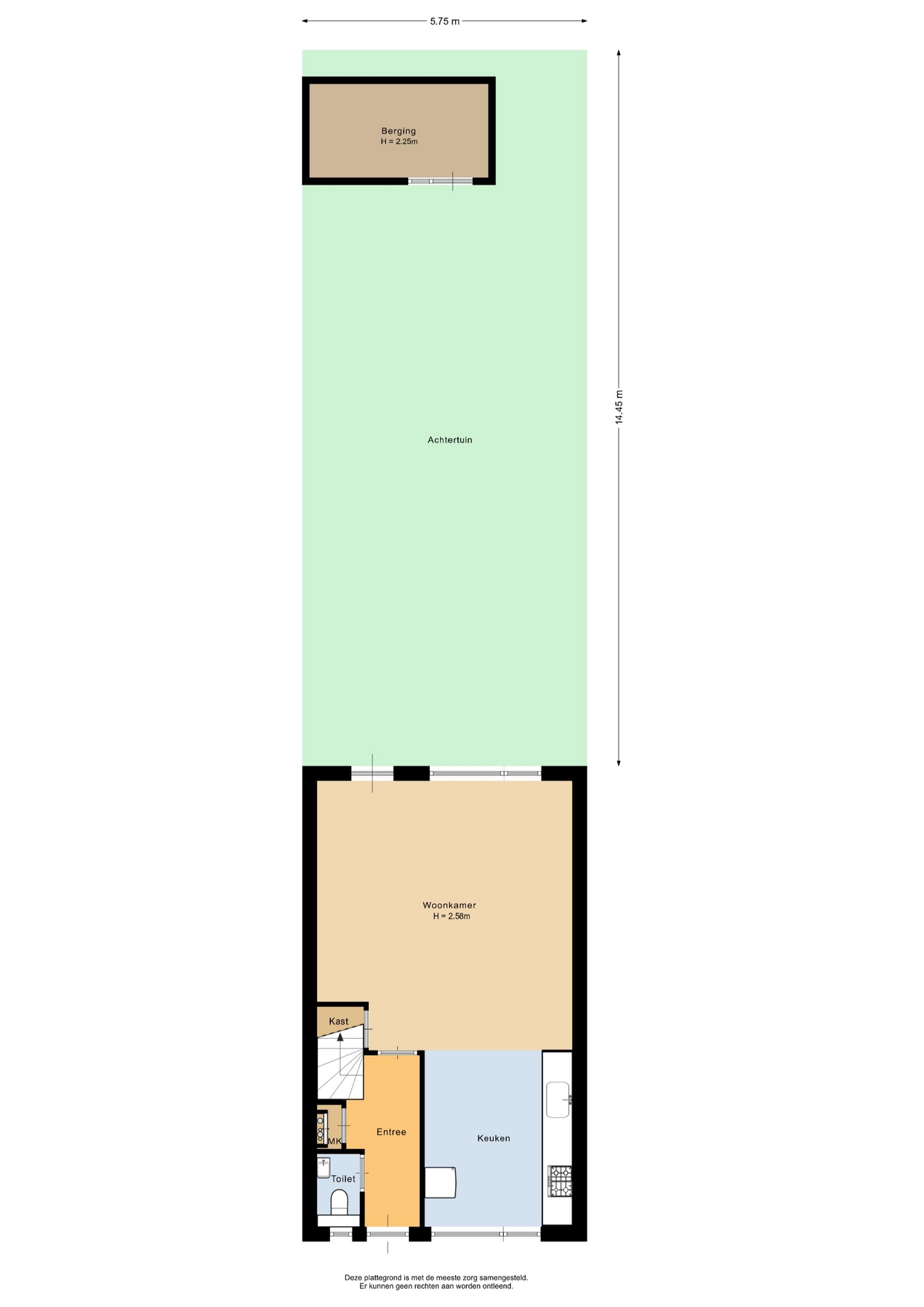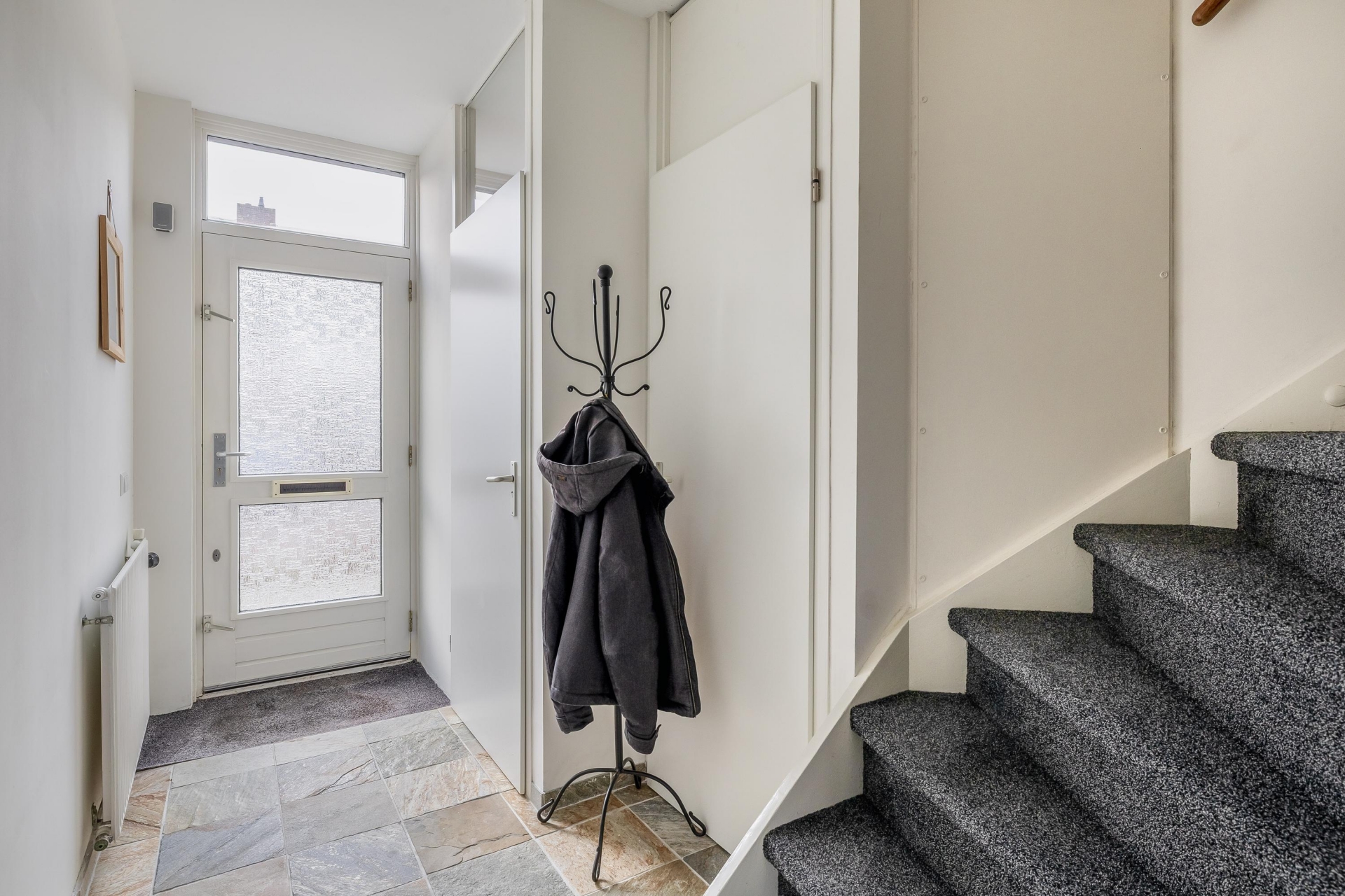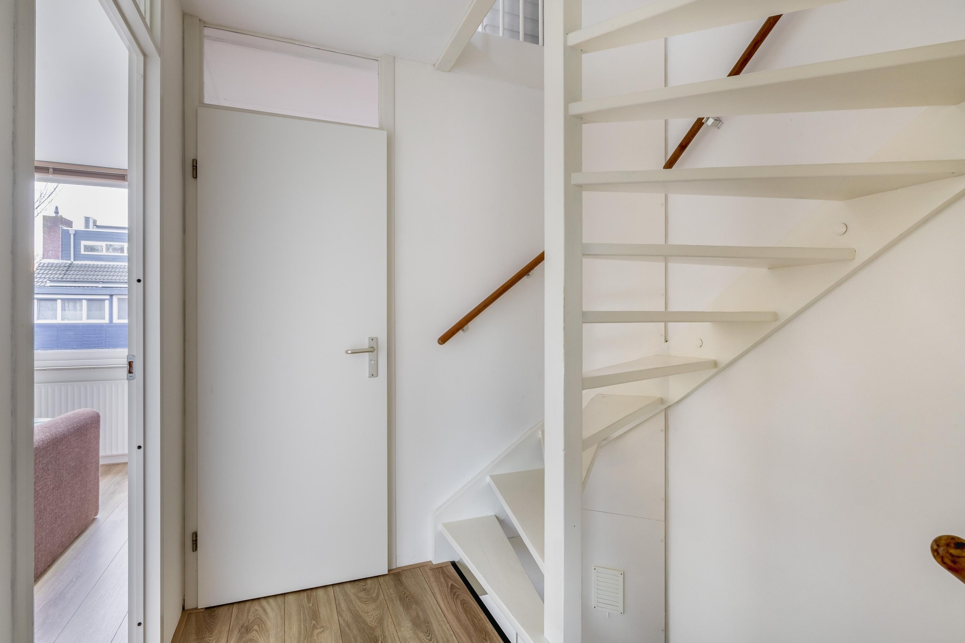 Entree woning met een lichte hal met meterkast (vernieuwd) en een licht betegeld toilet met hangend closet en fonteintje. Nette woonkamer met een trapkast, toegang tot de achtertuin en een halfopen keuken aan de voorzijde van de woning met diverse inbouwapparatuur waaronder een 5-pits gaskookplaat, afzuigkap, oven en vaatwasser. De achtertuin is uitgevoerd met een stenen berging met elektra en achterom. De gehele begane grond is voorzien van een natuurstenen vloer.