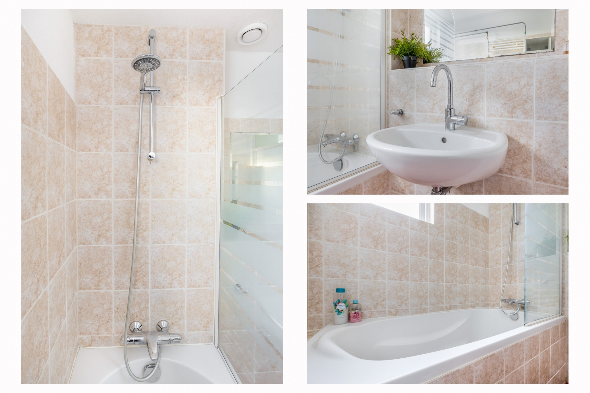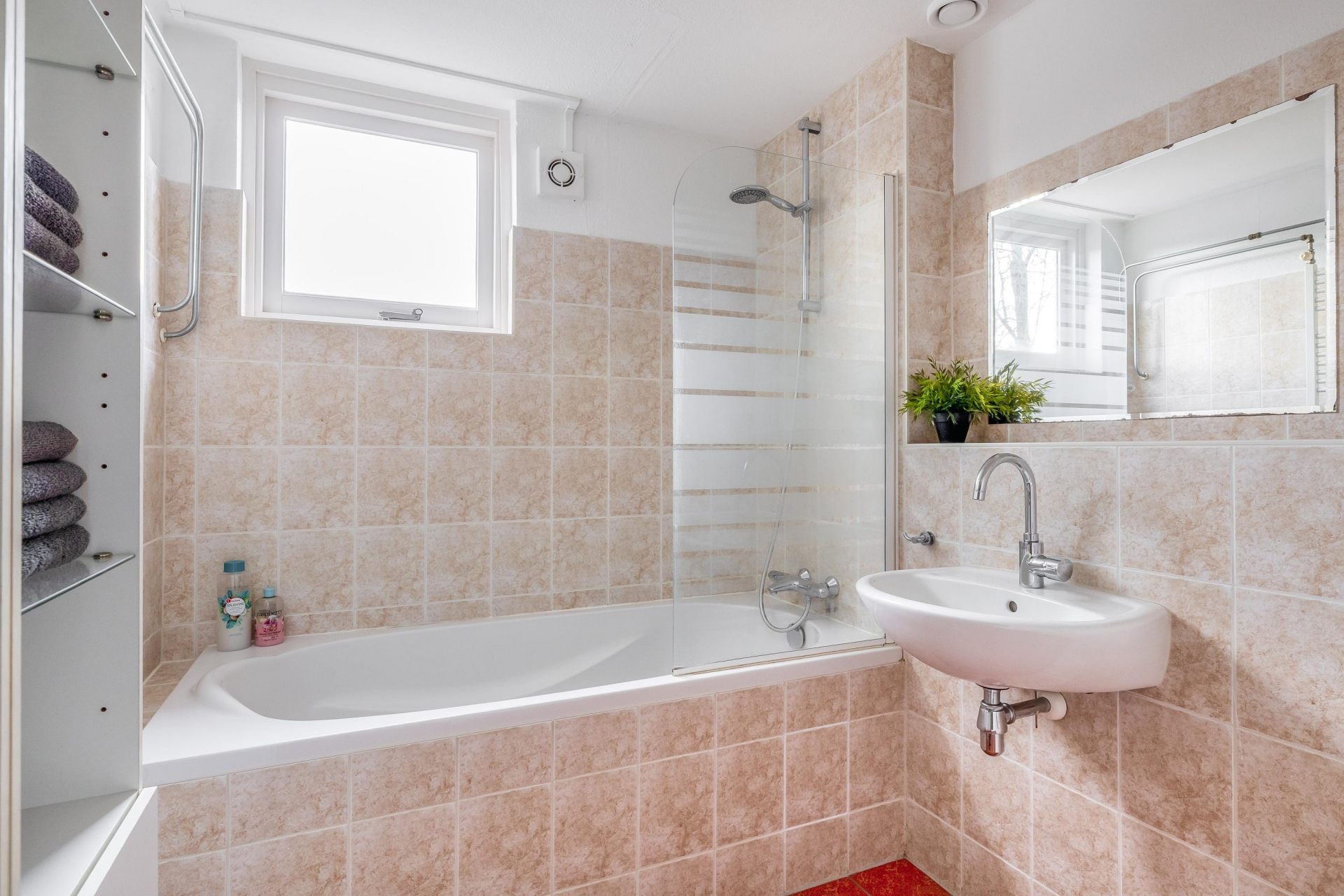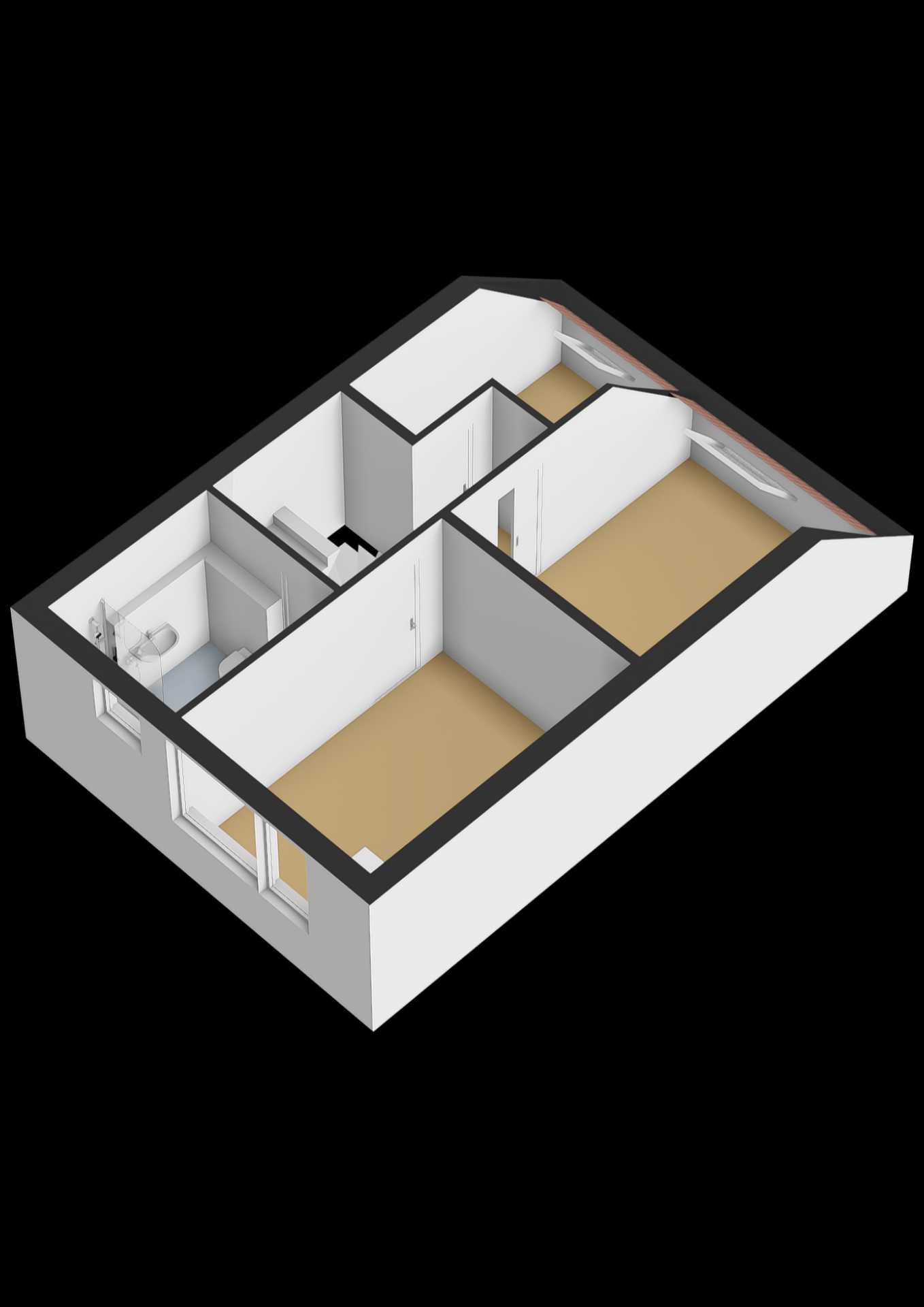 Overloop met toegang tot slaapkamer 1 voorzien van dakvenster; 2e slaapkamer met kast, badkamer voorzien van ligbad, douche, wastafel en 2e toilet; 3e slaapkamer aan de voorzijde.
