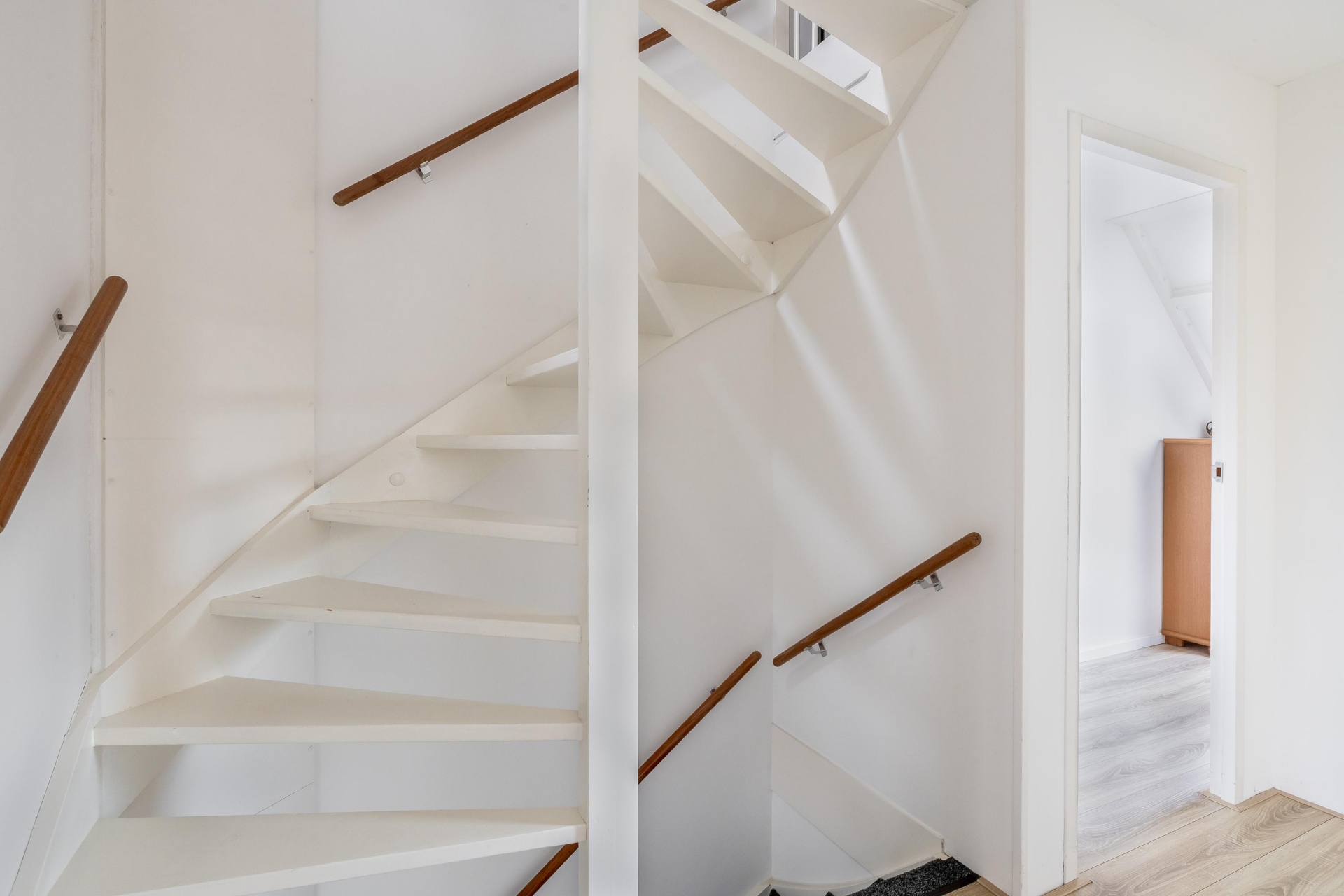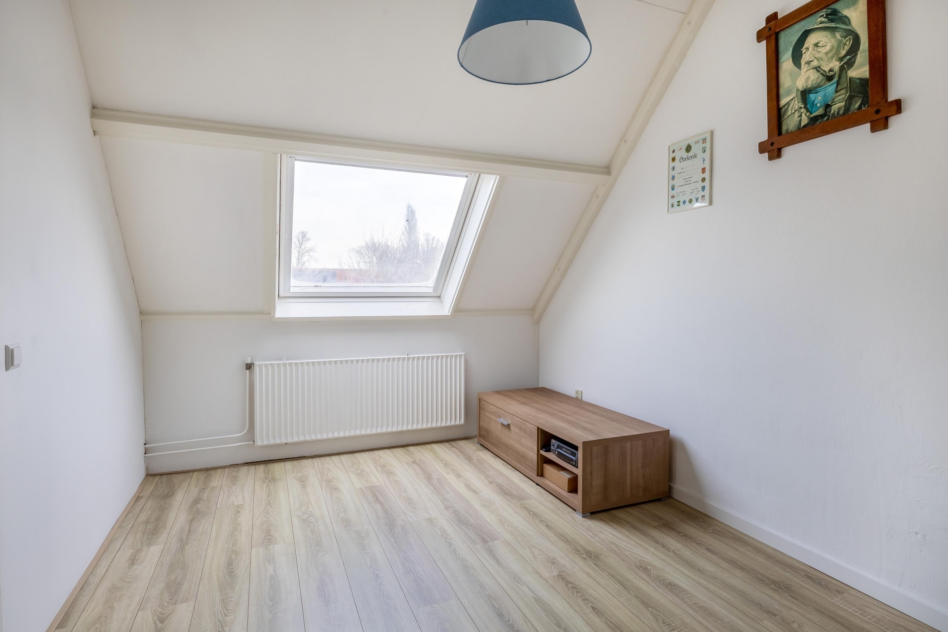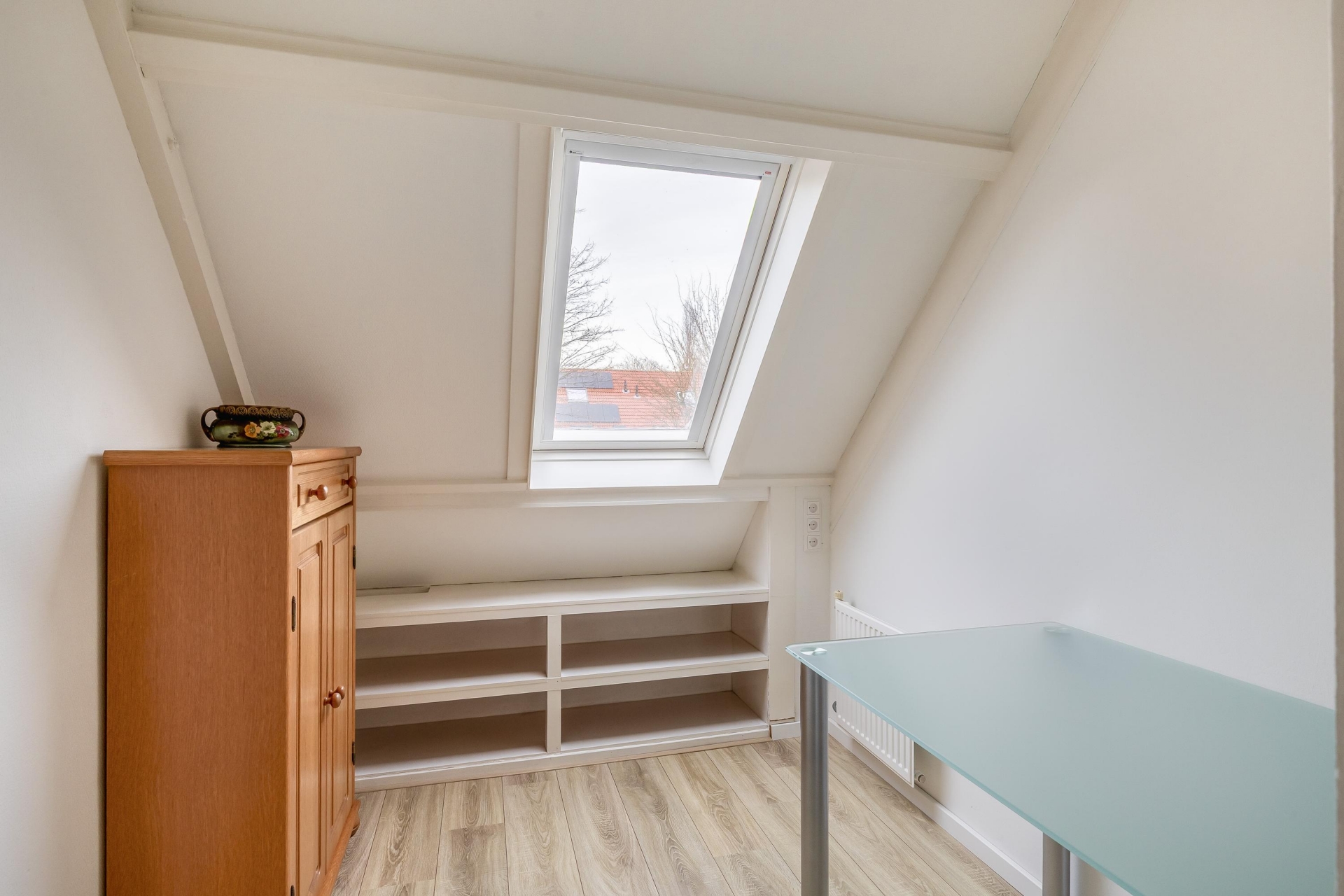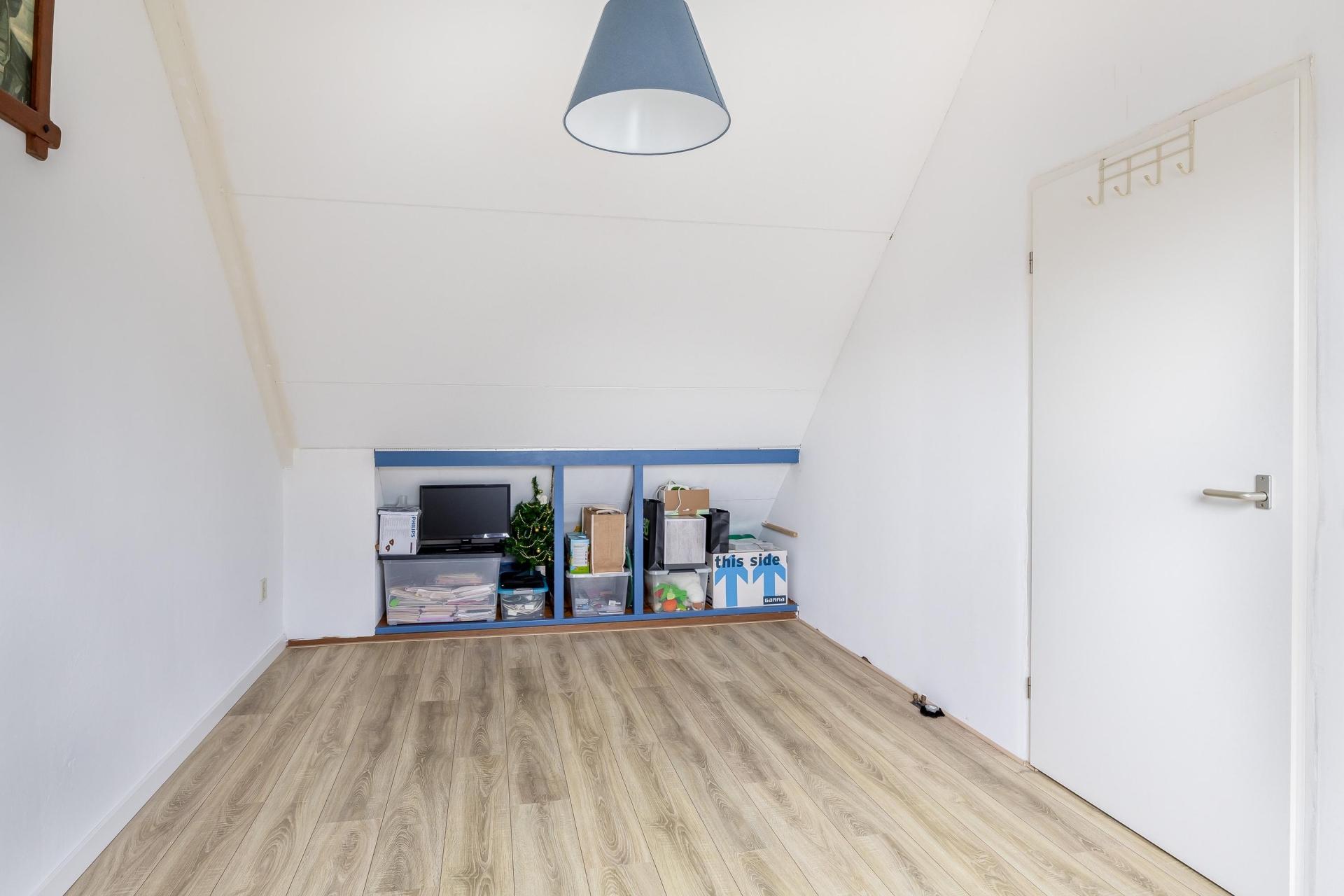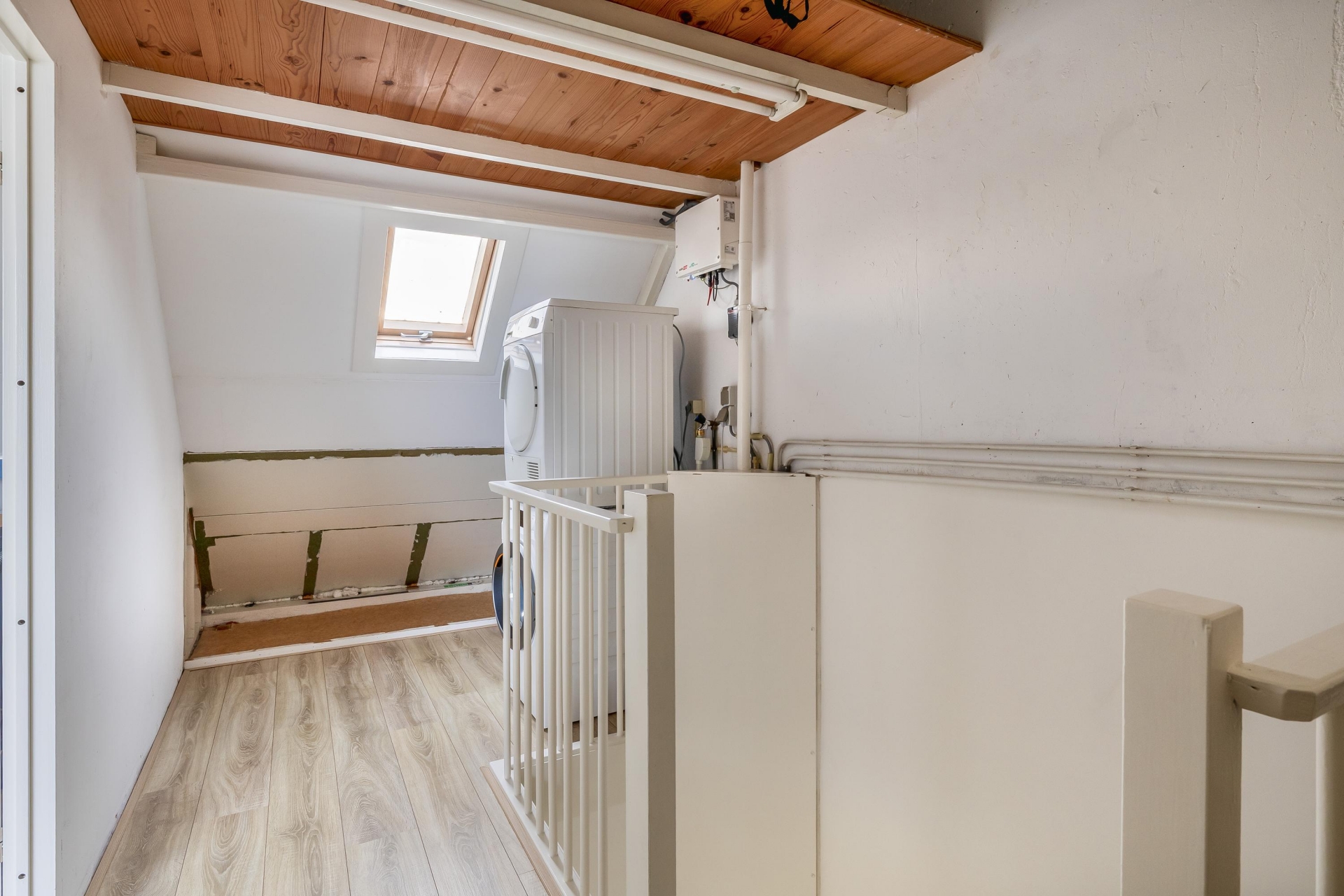 Overloop met vliering en bergruimte, opstelplaats voor de wasmachine, droger en de CV-combiketel; ruime 4e slaapkamer met dakvenster.