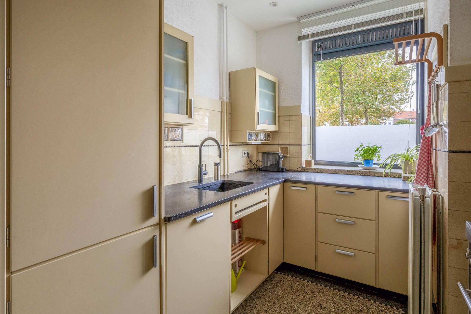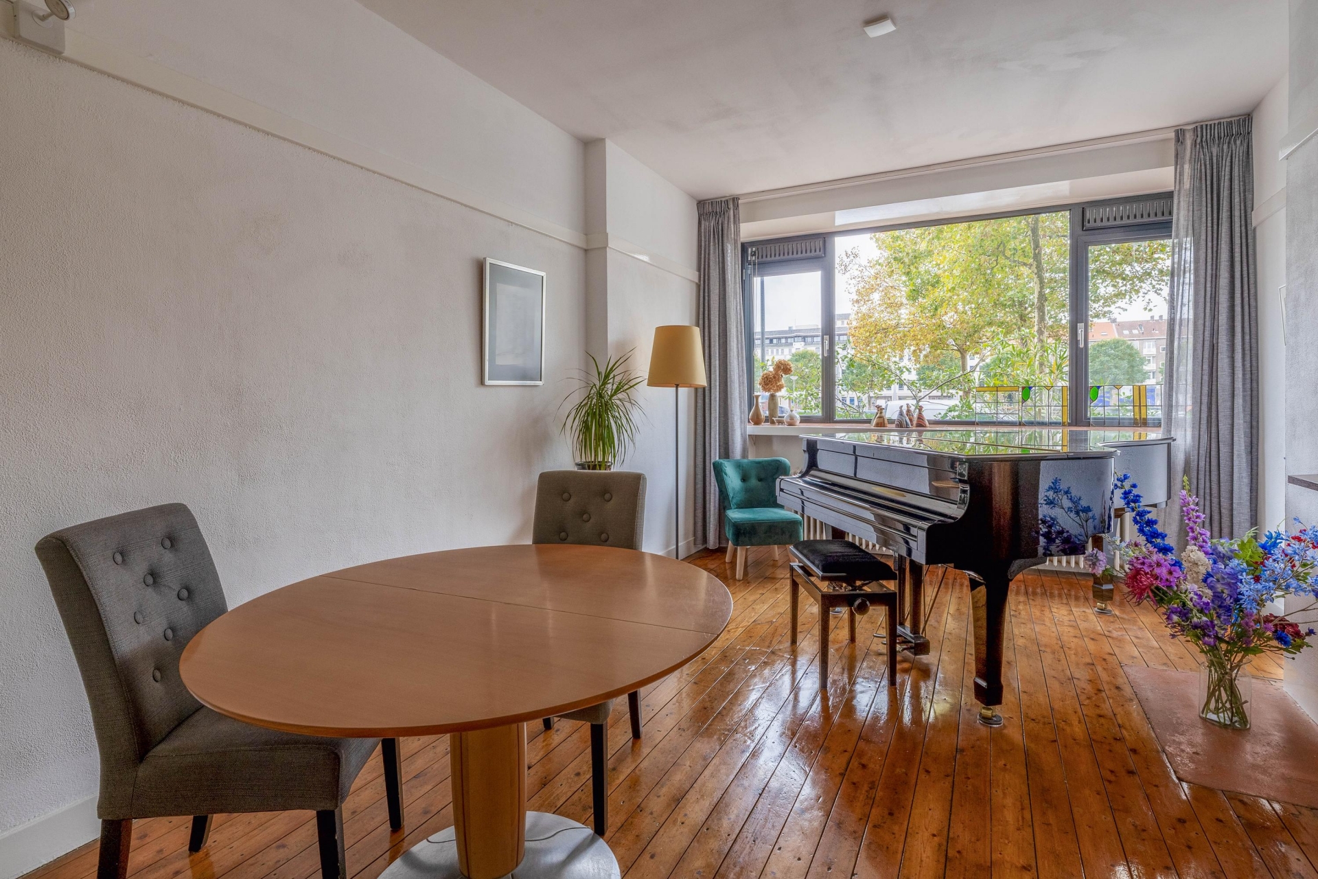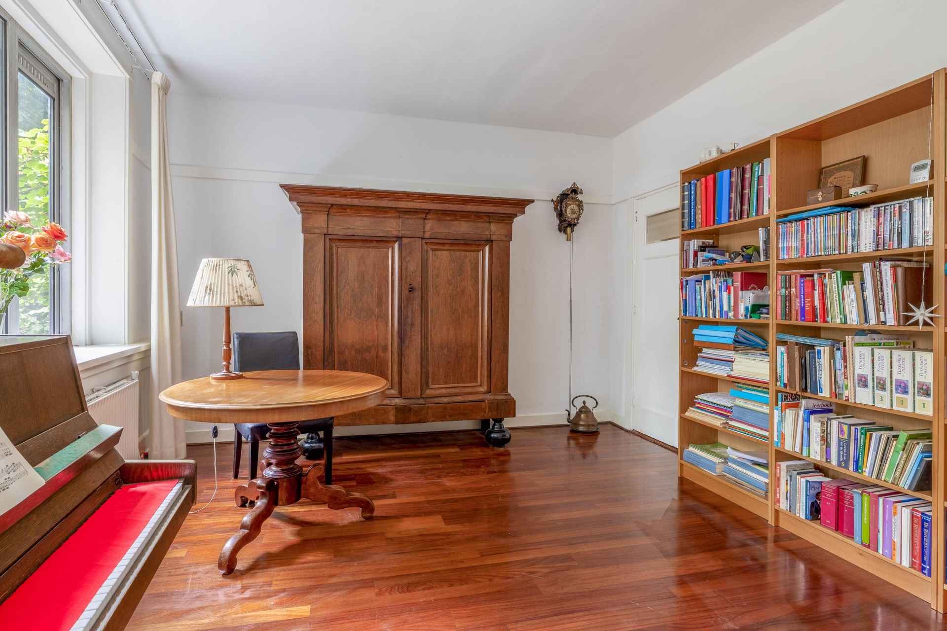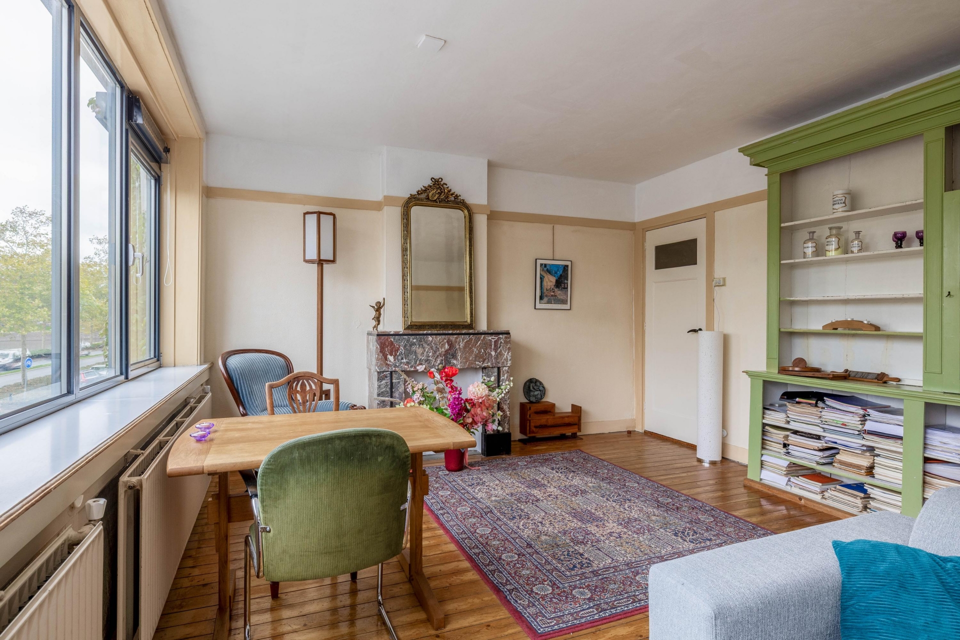 De hoge plafonds, originele details en houten vloeren benadrukken het karakter van de jaren 30-architectuur, terwijl de grote ramen zorgen voor een prettige lichtinval.