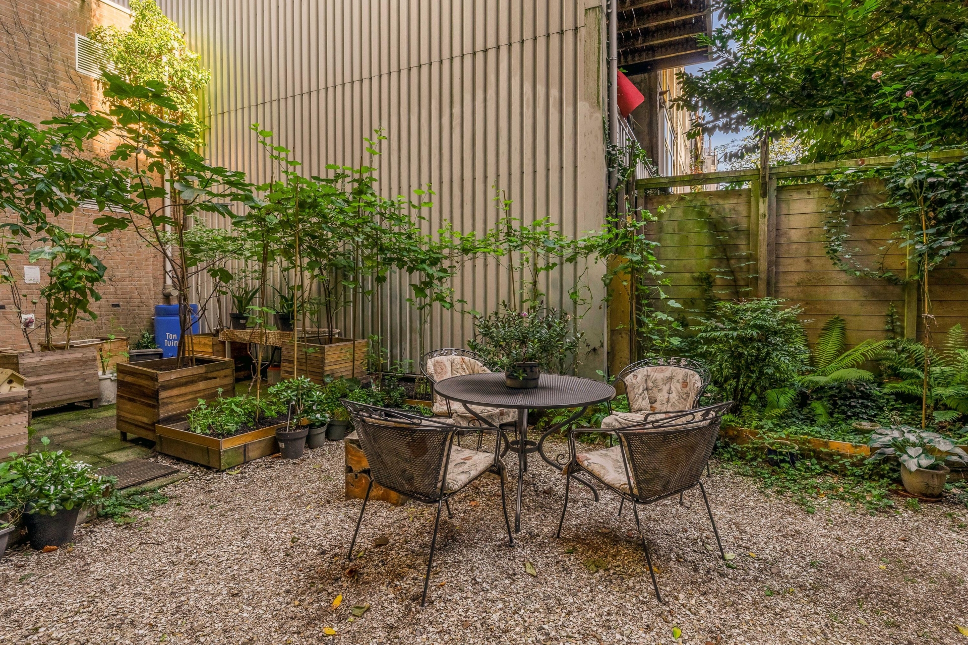 De tuin is bereikbaar vanuit de woning en via het souterrain, wat zorgt voor een praktische verbinding tussen binnen en buiten.