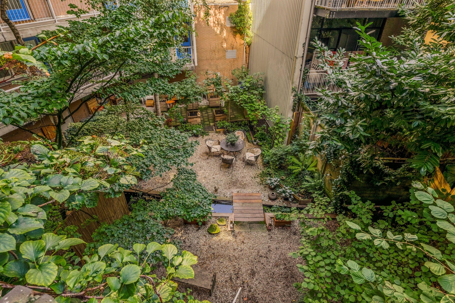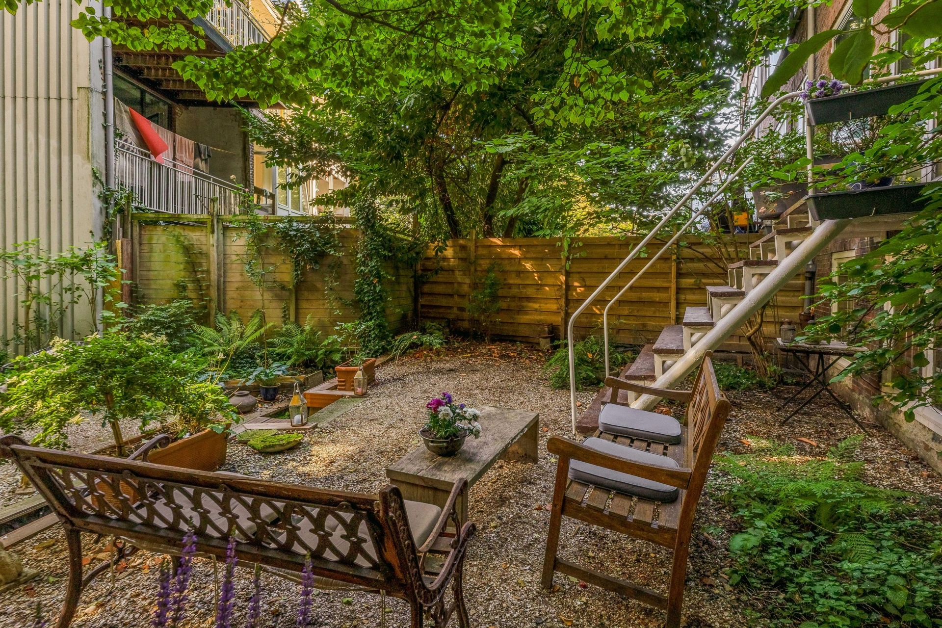 De achtertuin biedt een aangename buitenruimte met voldoende plek voor een eettafel of een groene hoek. Dankzij de ligging geniet u hier in de ochtend van de zon en van verkoelende schaduw in de middag.