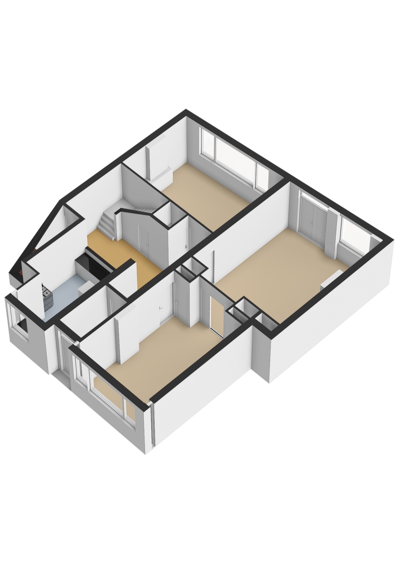 De keuken bevindt zich centraal in de woning en is functioneel ingericht, met een directe verbinding naar de hal en de woonvertrekken, praktisch en overzichtelijk in gebruik.
