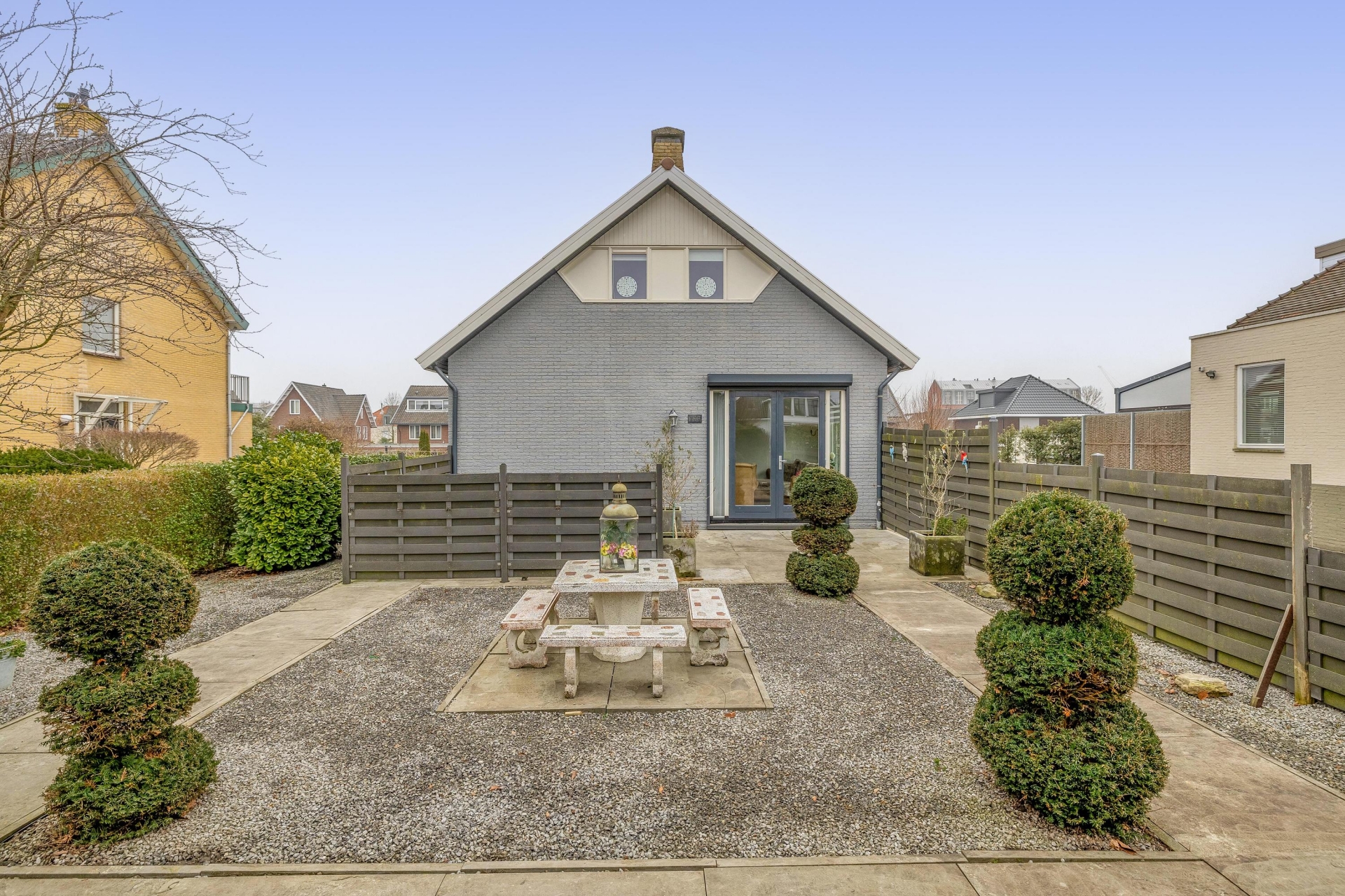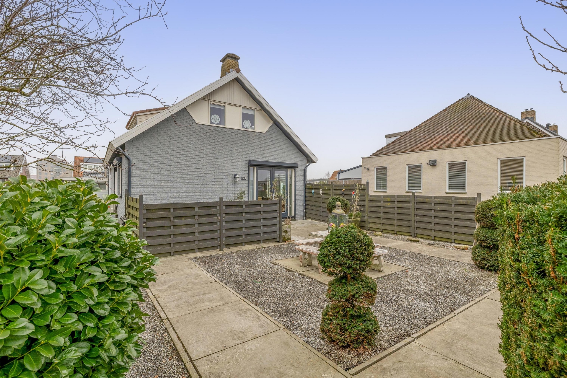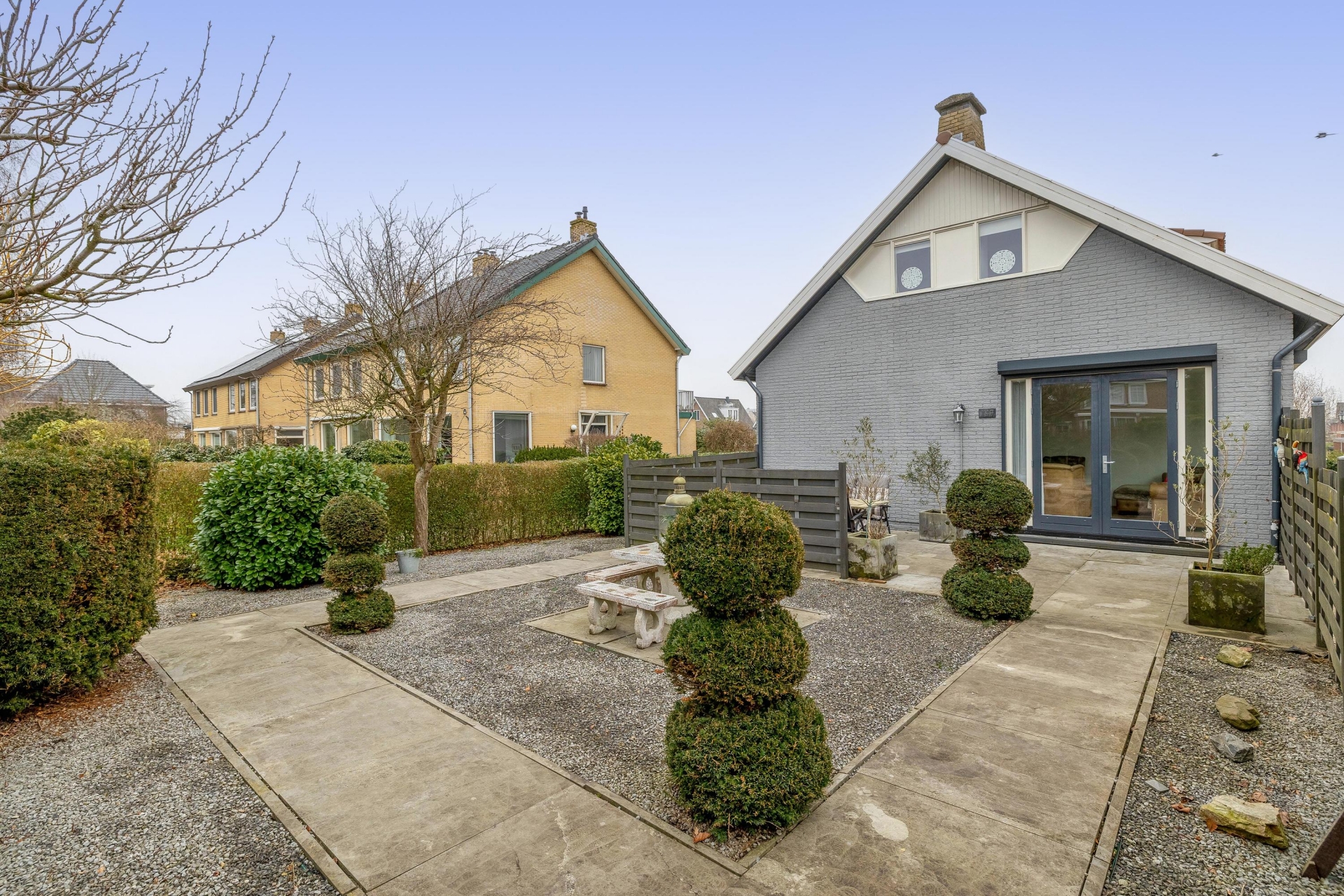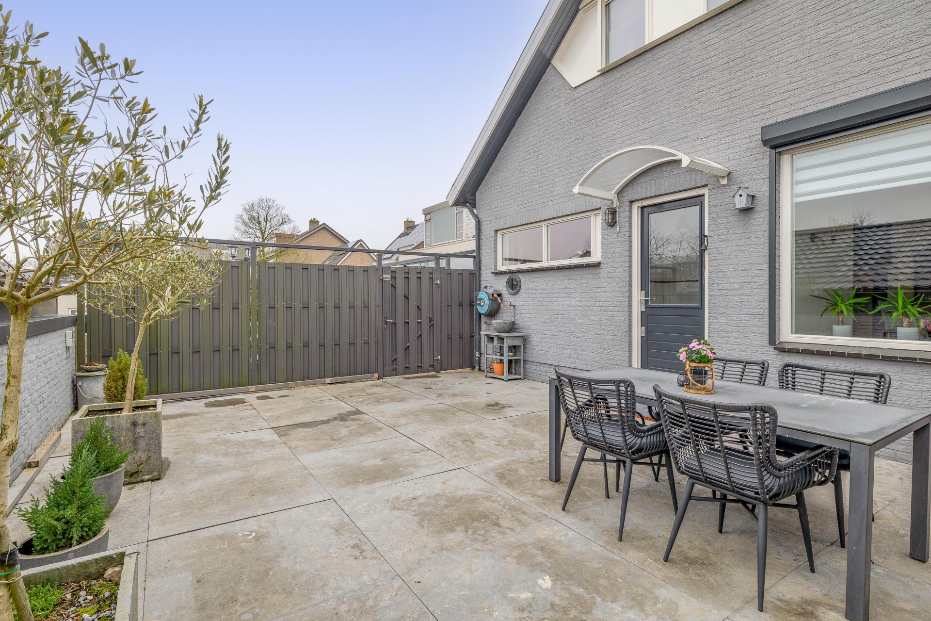 De tuin ligt rondom het huis, waardoor je op ieder moment van de dag een fijne plek in de zon of schaduw vindt. De voortuin zorgt voor afstand tot de weg en extra privacy, terwijl de zij- en achtertuin volop mogelijkheden bieden om verschillende terrassen te creëren. Of je nu graag tuiniert, gasten ontvangt of gewoon rustig wilt zitten met een kop koffie – hier kan het allemaal.