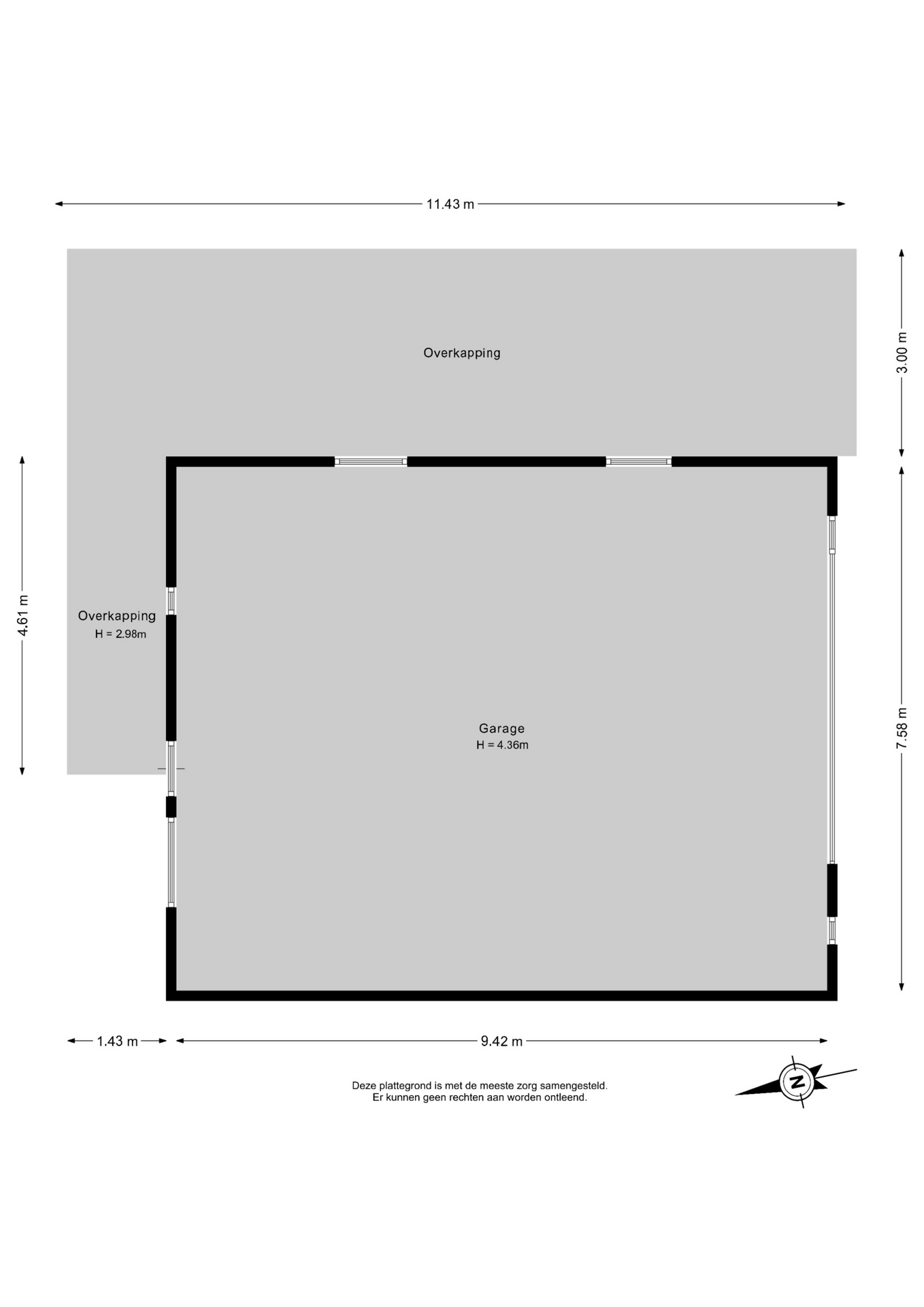 - Schuur van ca. 71 m² en een nokhoogte van 4.36 meter;