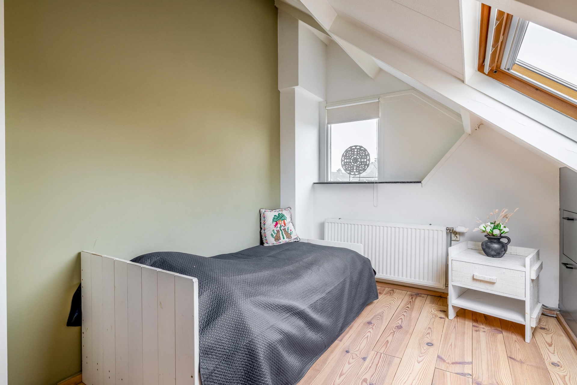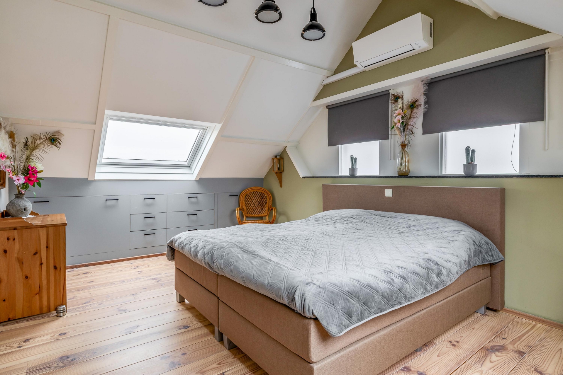 Dit huis beschikt over vier kamers, waarvan drie als slaapkamer zijn ingericht. De grootste slaapkamer heeft een sfeervolle kapconstructie met dakramen. Hierdoor ontstaat een lichte en rustige ruimte met karakter.