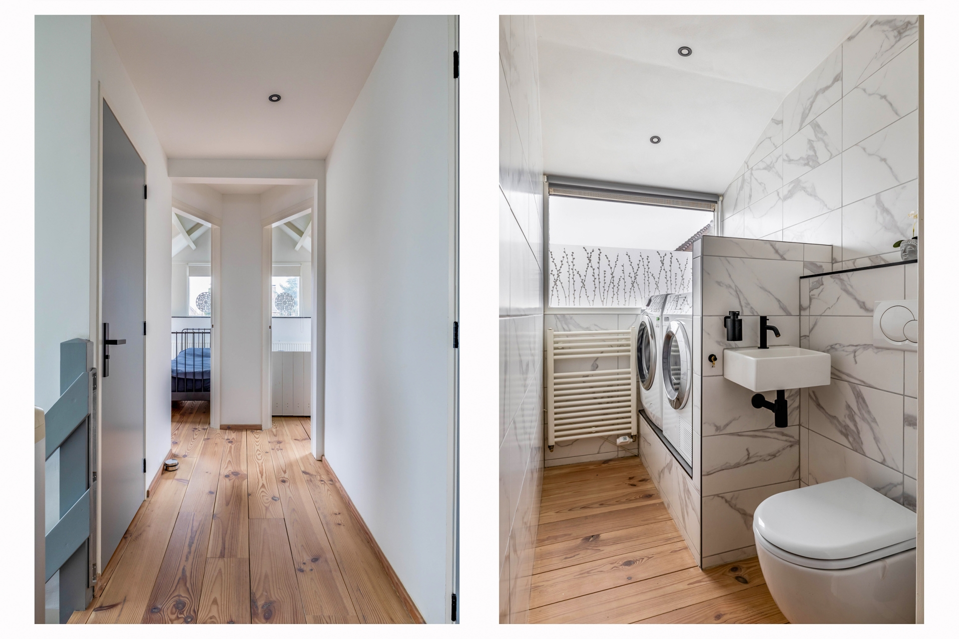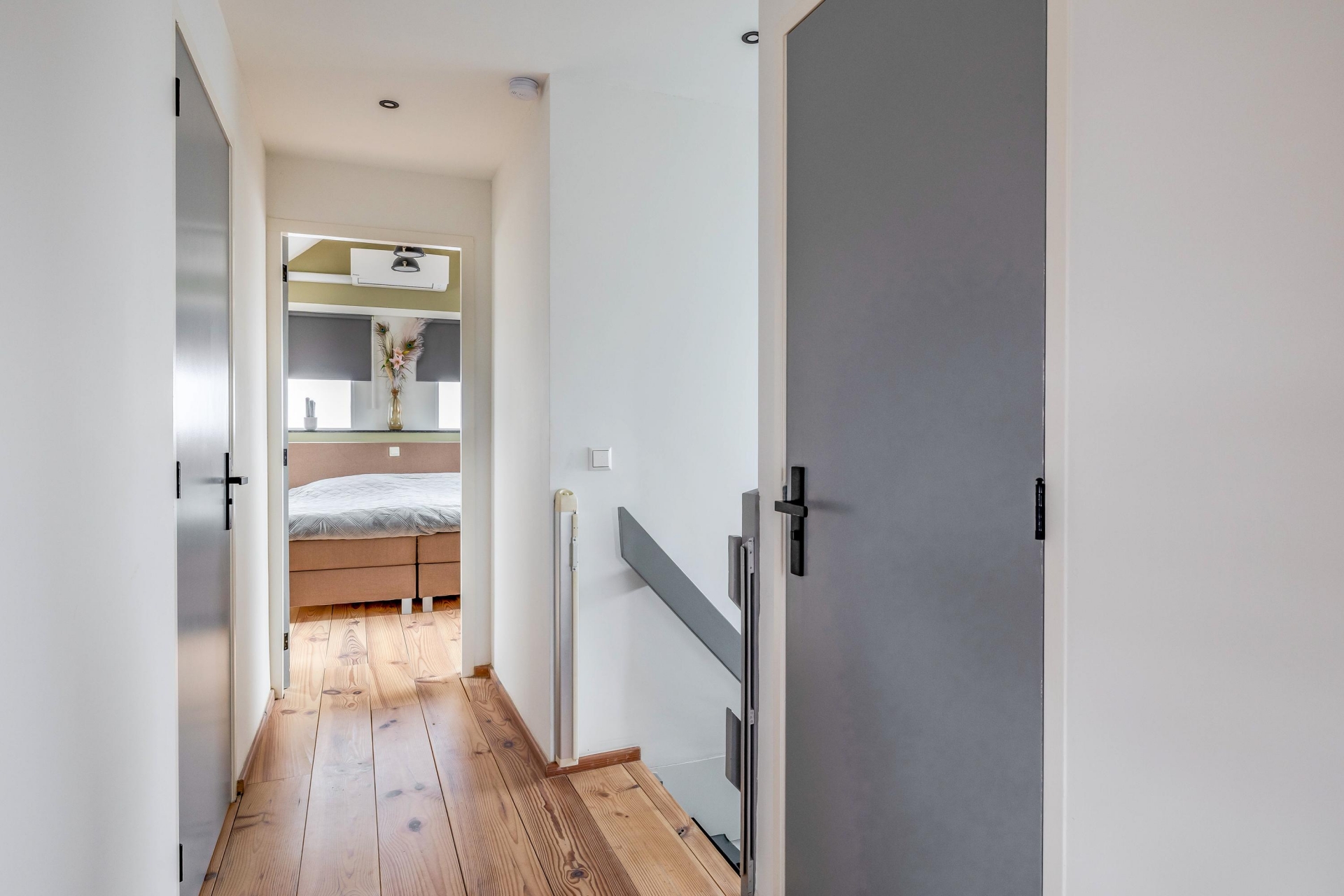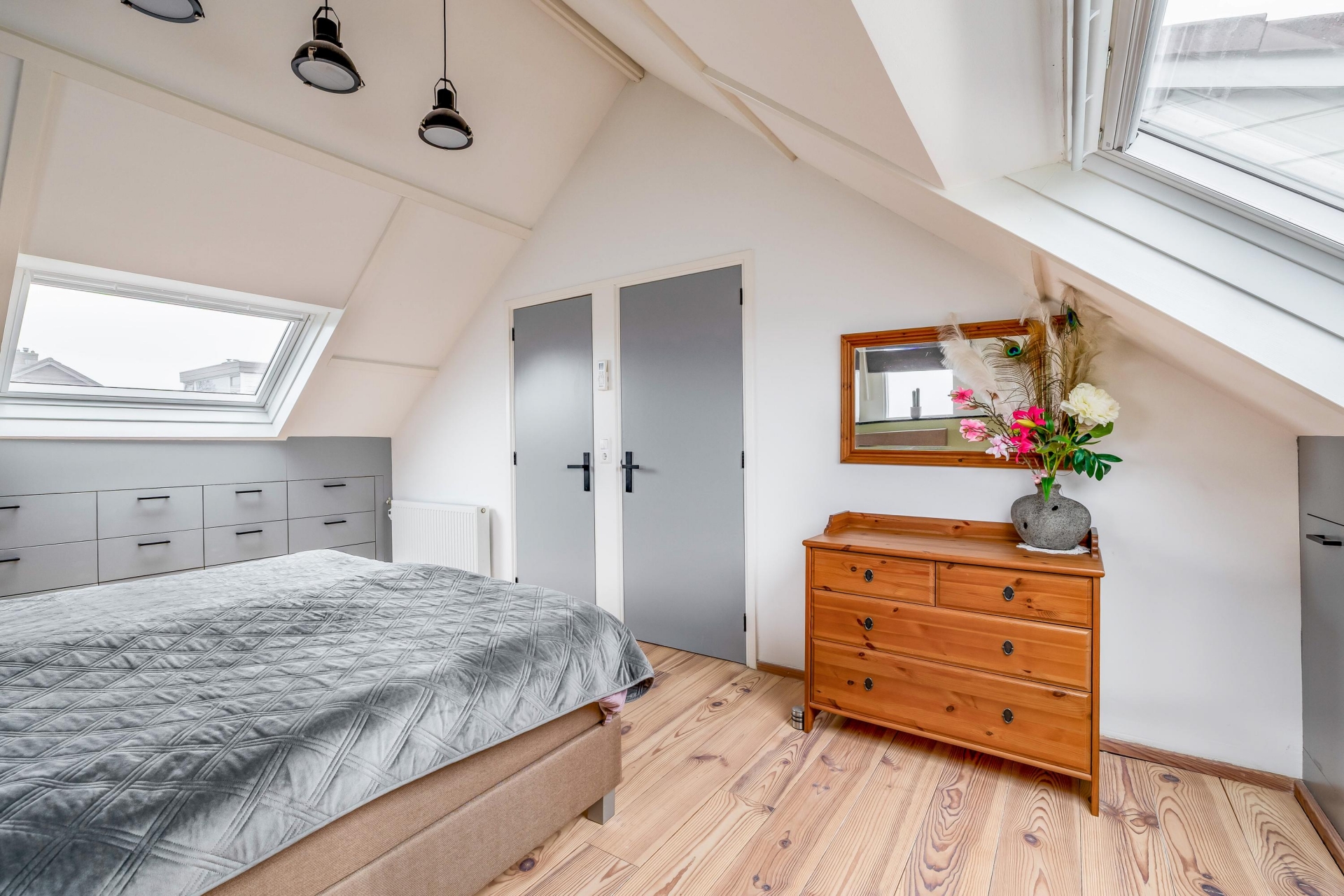 Een bijzonder detail is de inloopkast die direct aansluit op deze slaapkamer. Voor veel doorstromers is dit een grote wens: geen losse kasten meer in de ruimte, maar een overzichtelijke en praktische kledingruimte. Dat geeft rust en comfort.