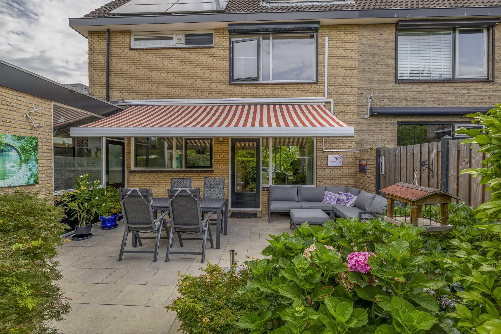 De achtertuin ligt op het zuidwesten, waardoor je hier heerlijk van de zon kunt genieten. Er is voldoende ruimte voor een grote eettafel, een loungehoek én speelruimte voor kinderen. Aan de voorzijde van het huis heb je een eigen oprit met carport én een aangebouwde garage, ideaal voor fietsen, gereedschap of gewoon extra opslag, hobby- of werkruimte.