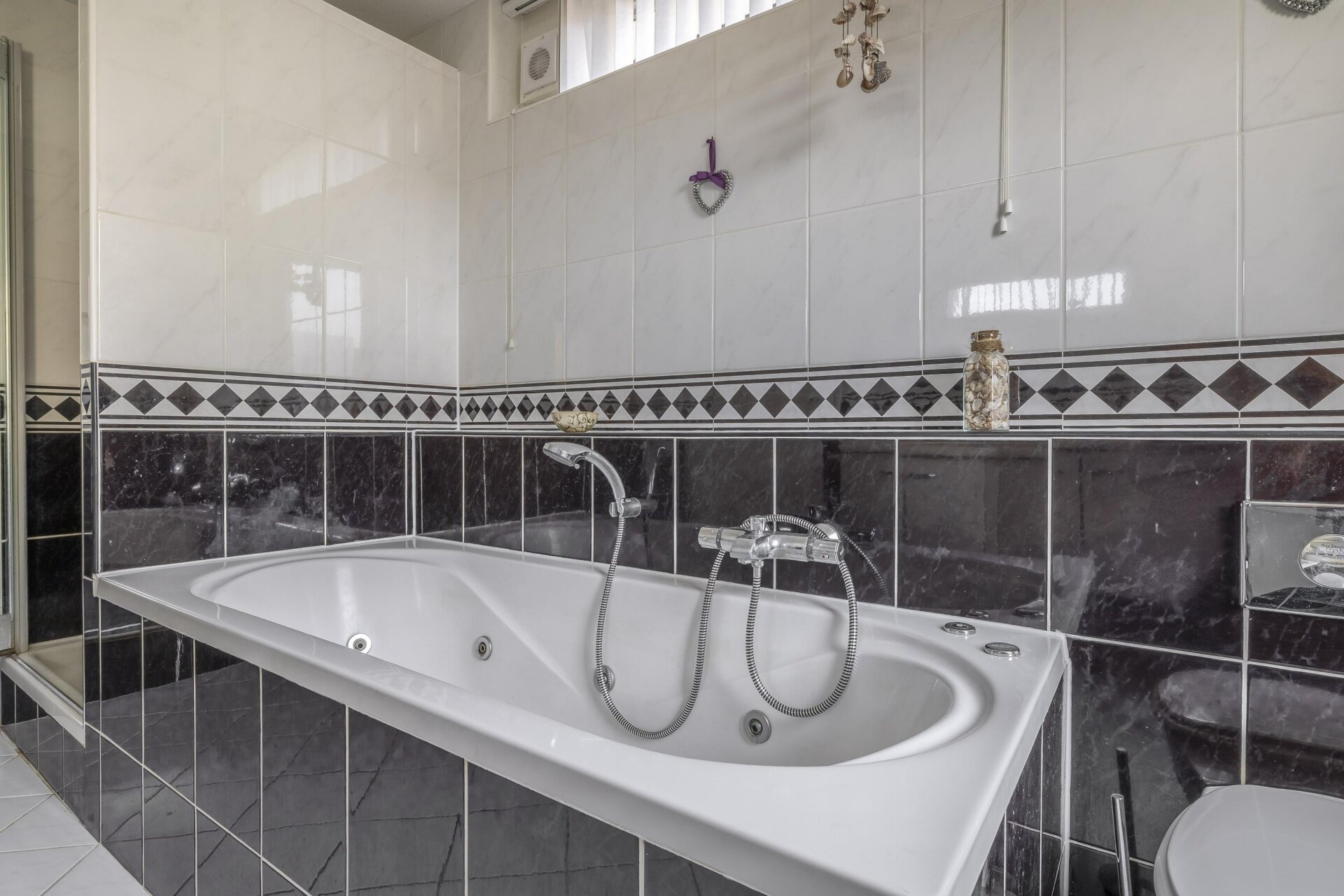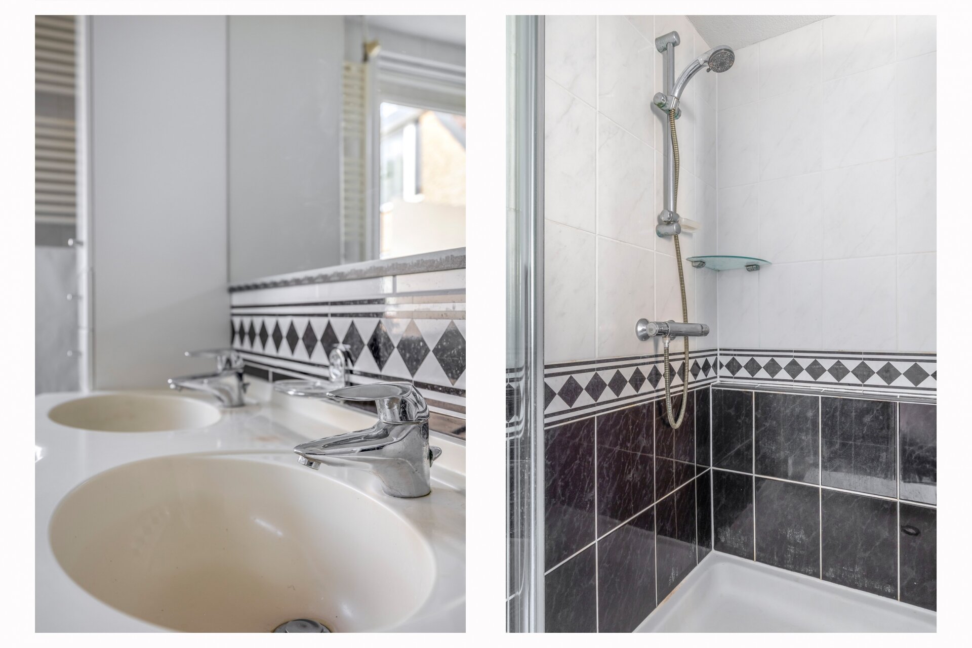 Op de eerste verdieping vind je twee slaapkamers (kunnen er eenvoudig weer 3 zijn), waaronder de grootste slaapkamer aan de achterzijde met riante inloopkast aan de voorzijde. De badkamer is uitgerust met een ligbad, douche, wastafelmeubel en toilet en voorziet toegang tot het balkon op het noorden. De tweede verdieping biedt nog een derde en vierde slaapkamer en extra badkamer voorzien van wastafel en douche – ideaal voor een groot gezin of logees.