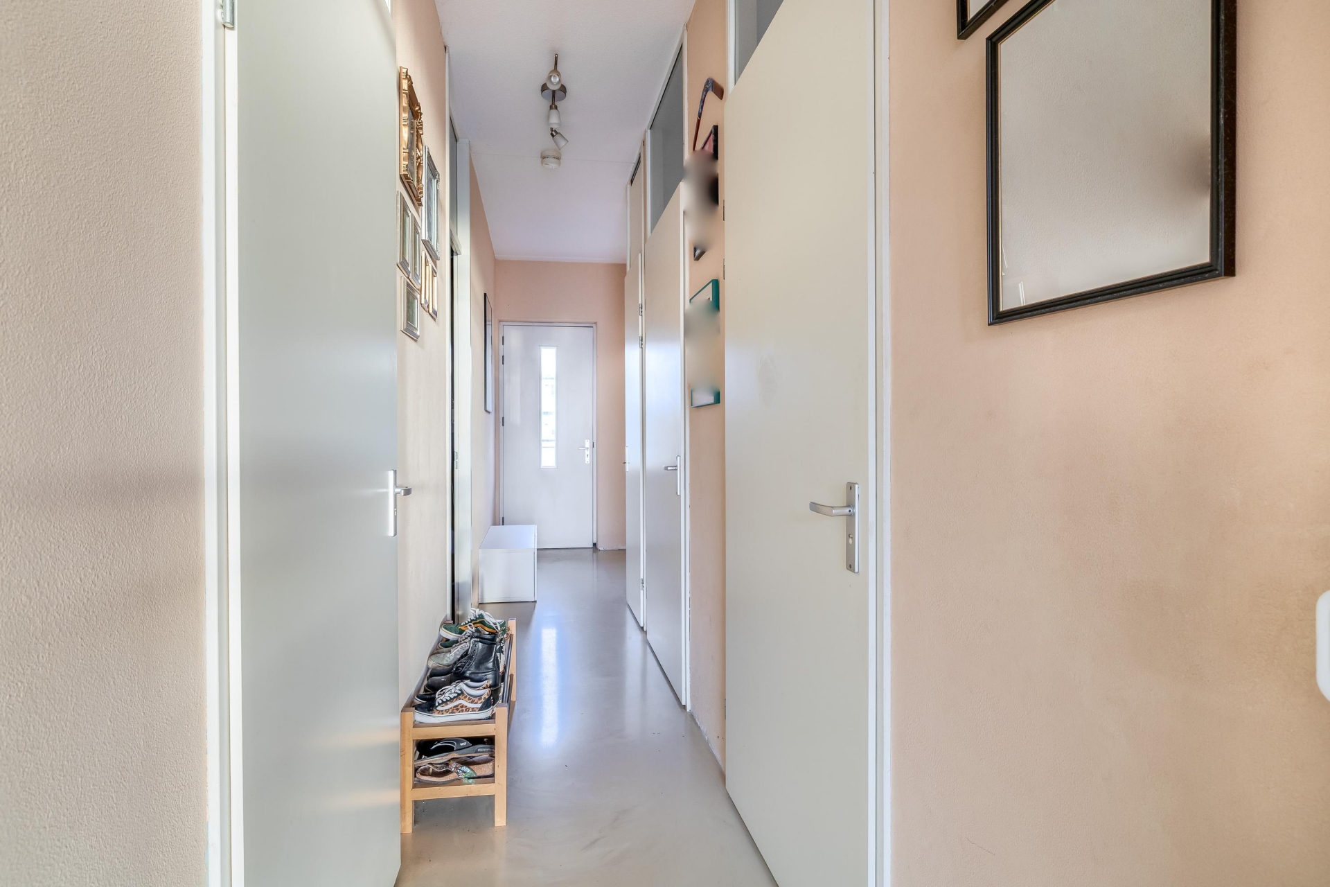 De twee slaapkamers liggen aan de rustige achterkant van het appartement en zijn praktisch in te delen. De grootste slaapkamer biedt ruimte voor een groot bed en een kastenwand. De tweede kamer is ideaal als logeer-, werk- of kinderkamer. De badkamer is netjes en voorzien van een inloopdouche, wastafel en aansluitingen voor wasmachine en droger. Het separate toilet bevindt zich in de hal.