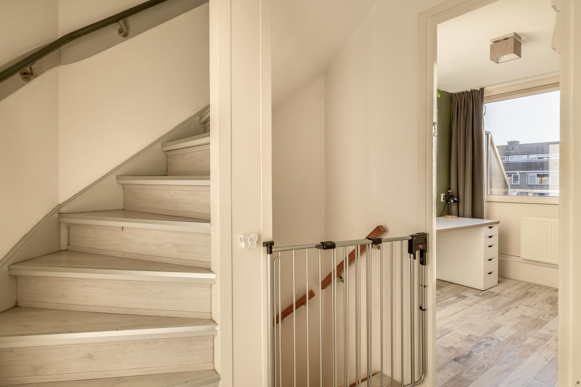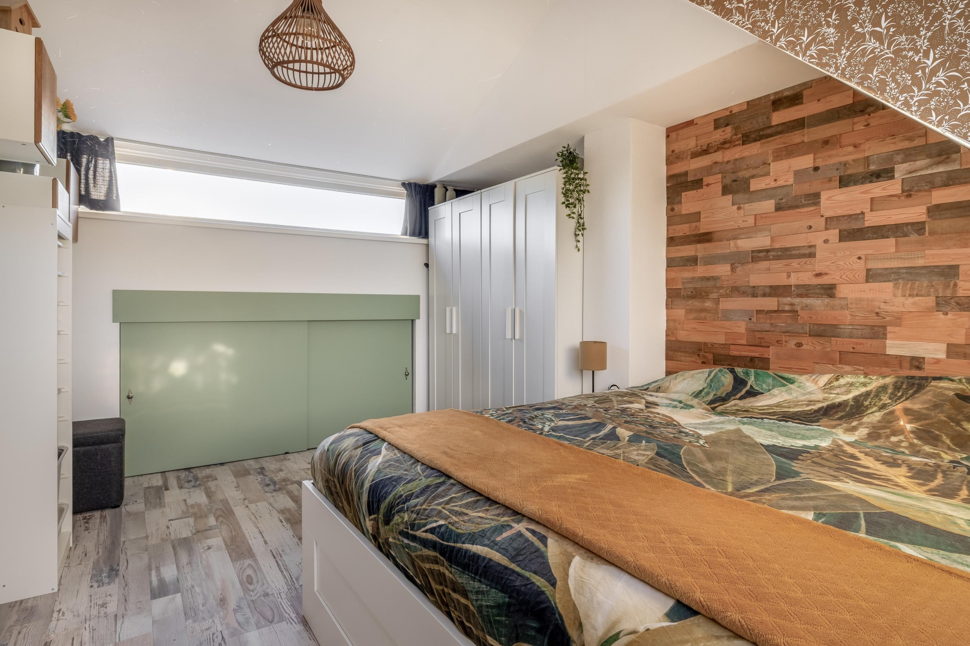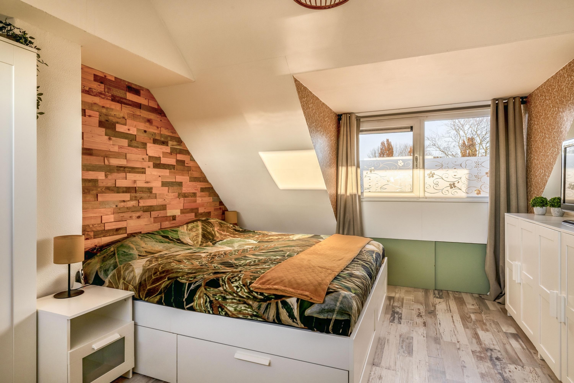 De tweede verdieping biedt eveneens een riante slaapkamer met dakkapel en een voorzolder met aansluitingen voor wasmachine en droger. Bovendien is er een vliering, bereikbaar via een stevige, vrijwel nieuwe vlizotrap — ideaal voor extra bergruimte.