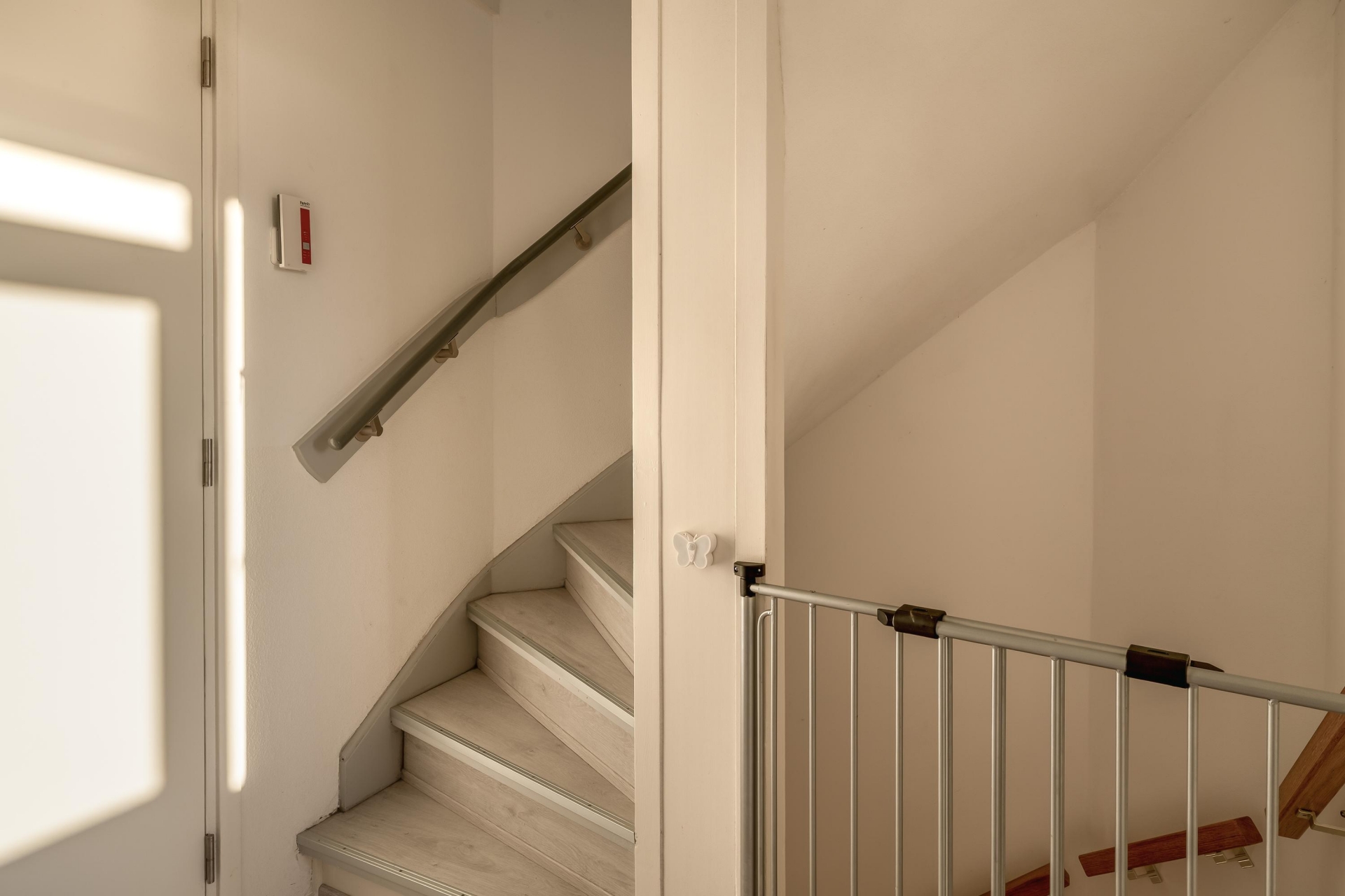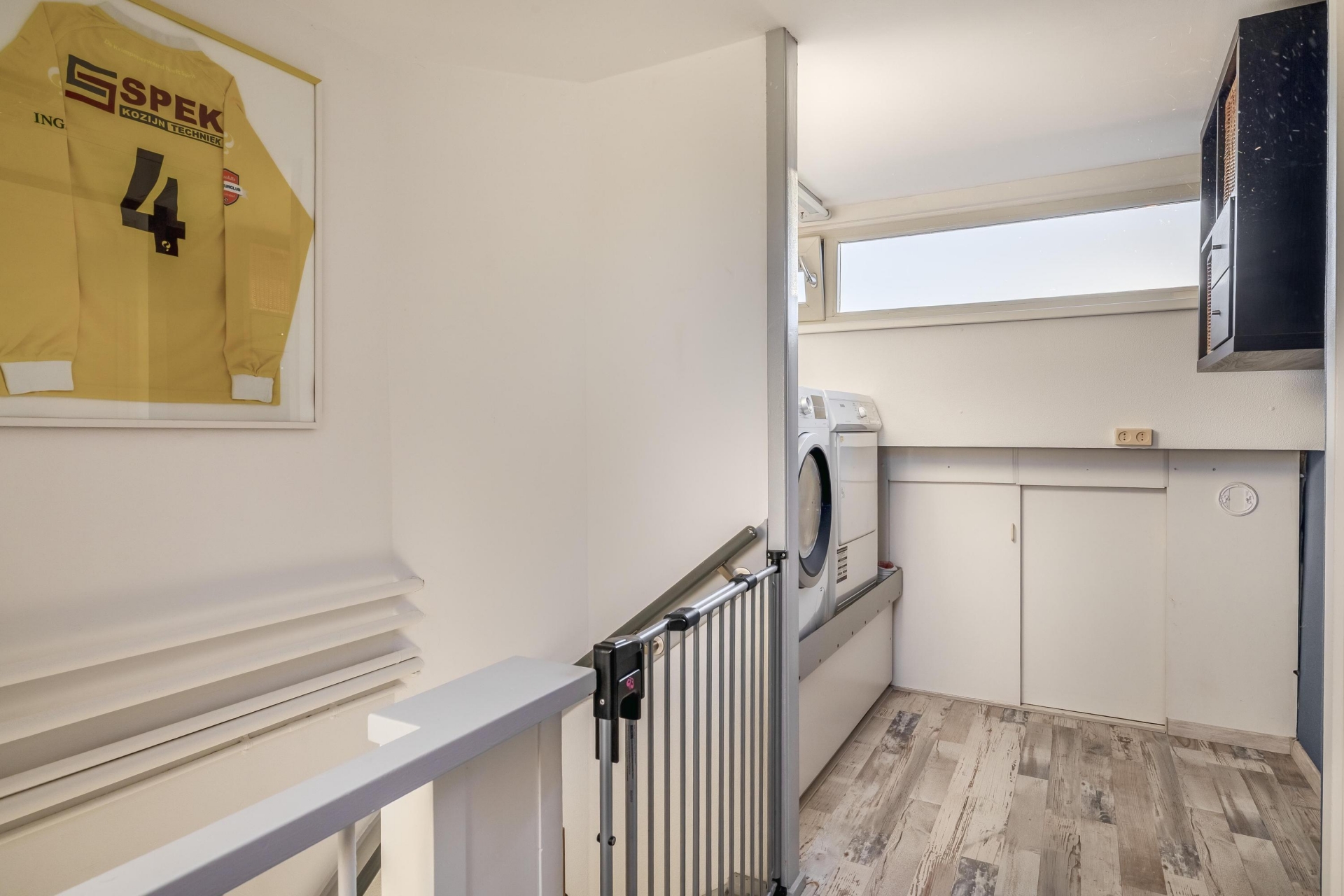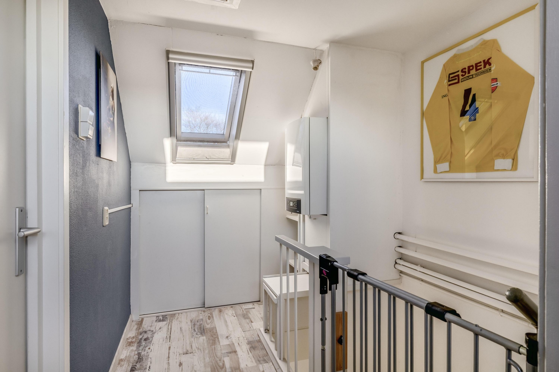 De tweede verdieping biedt eveneens een riante slaapkamer met dakkapel en een voorzolder met aansluitingen voor wasmachine en droger. Bovendien is er een vliering, bereikbaar via een stevige, vrijwel nieuwe vlizotrap — ideaal voor extra bergruimte.