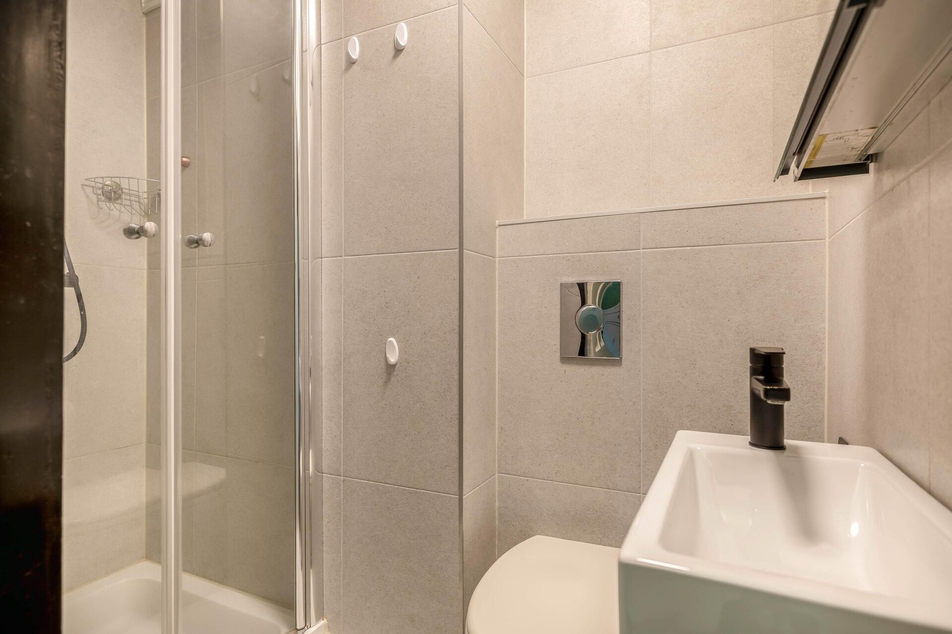 De slaapkamers liggen beide aan de voorzijde van het complex. Centraal is de badkamer (2022) gelegen. Deze is voorzien van een douche, wastafel en het toilet. Tevens is er op de begane grond nog een berging aanwezig.