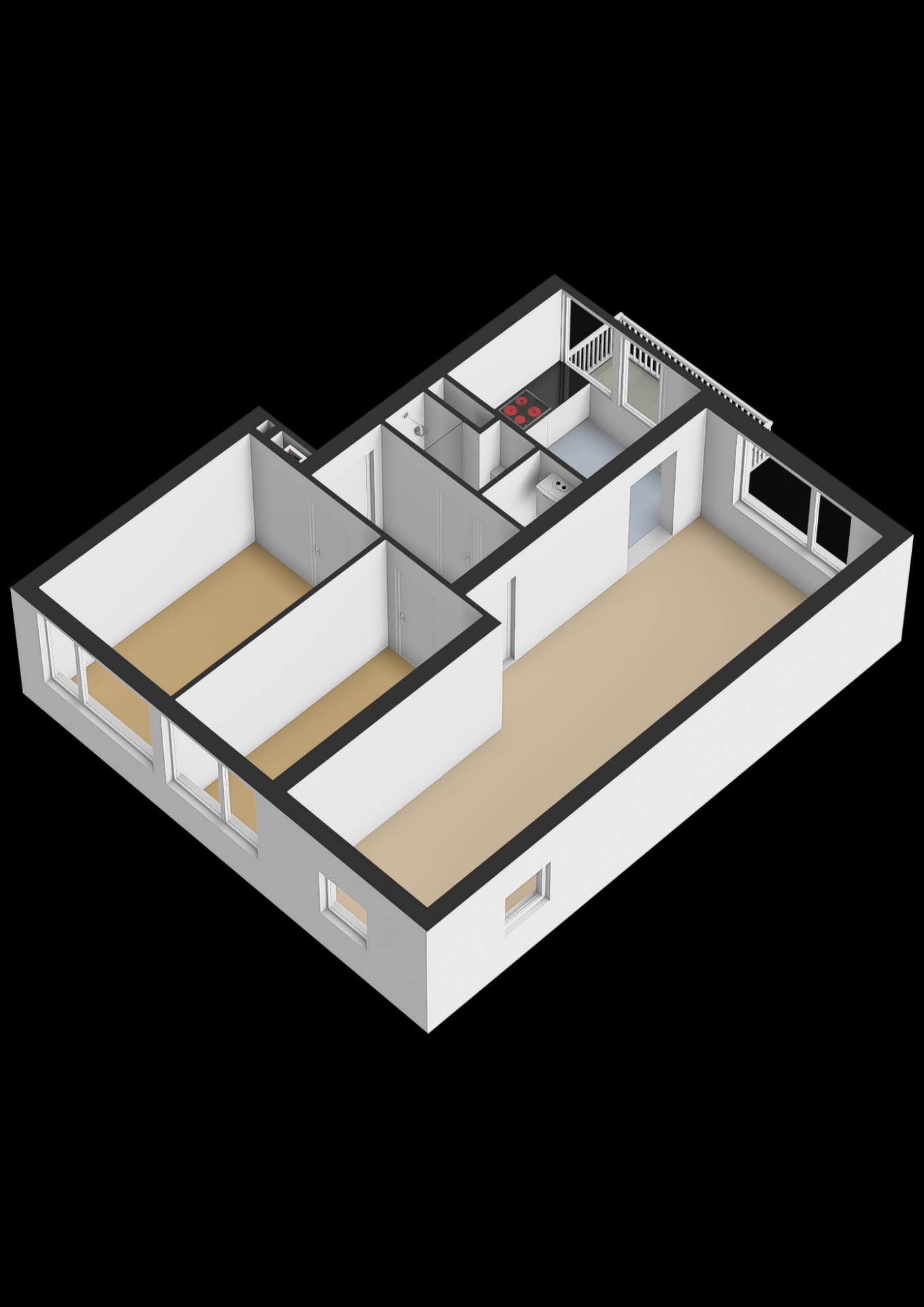 - Voorzien van twee slaapkamers aan de voorzijde van het appartement;