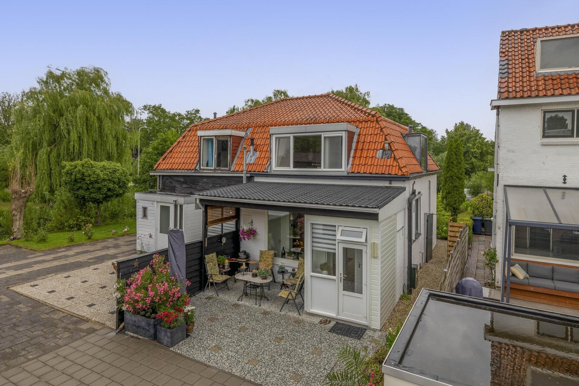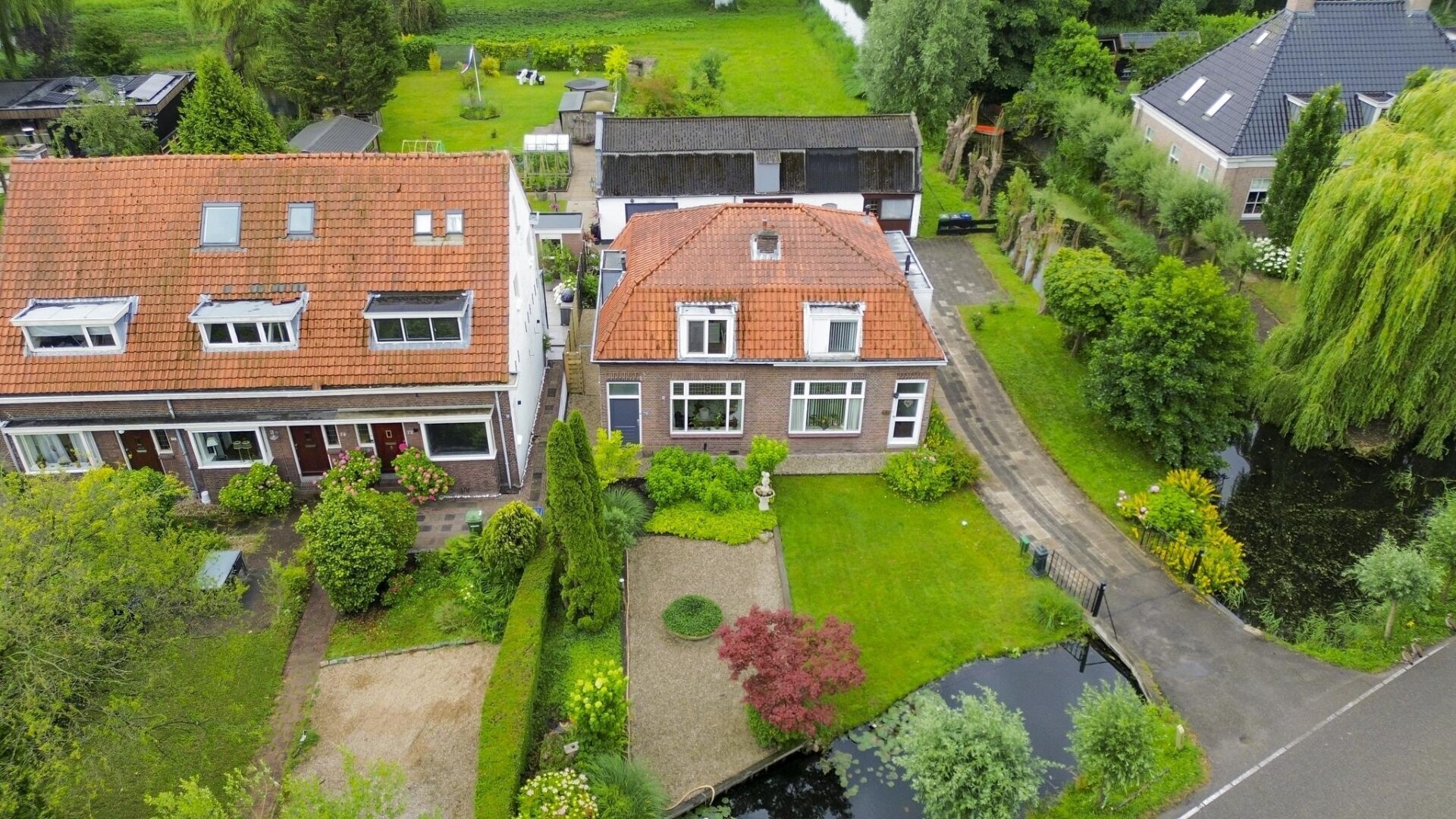 De voortuin / voordeur is via recht van overpad middels de gezamenlijke brug en oprit bereikbaar.