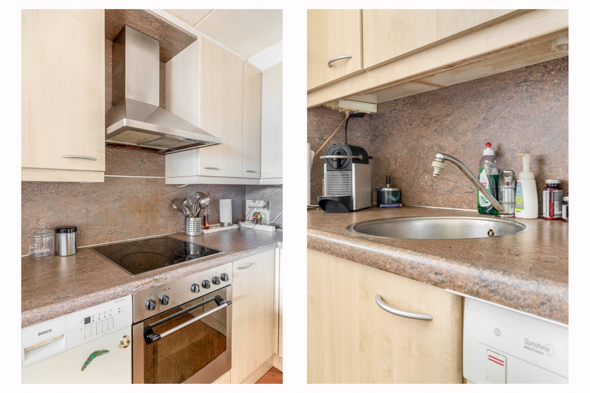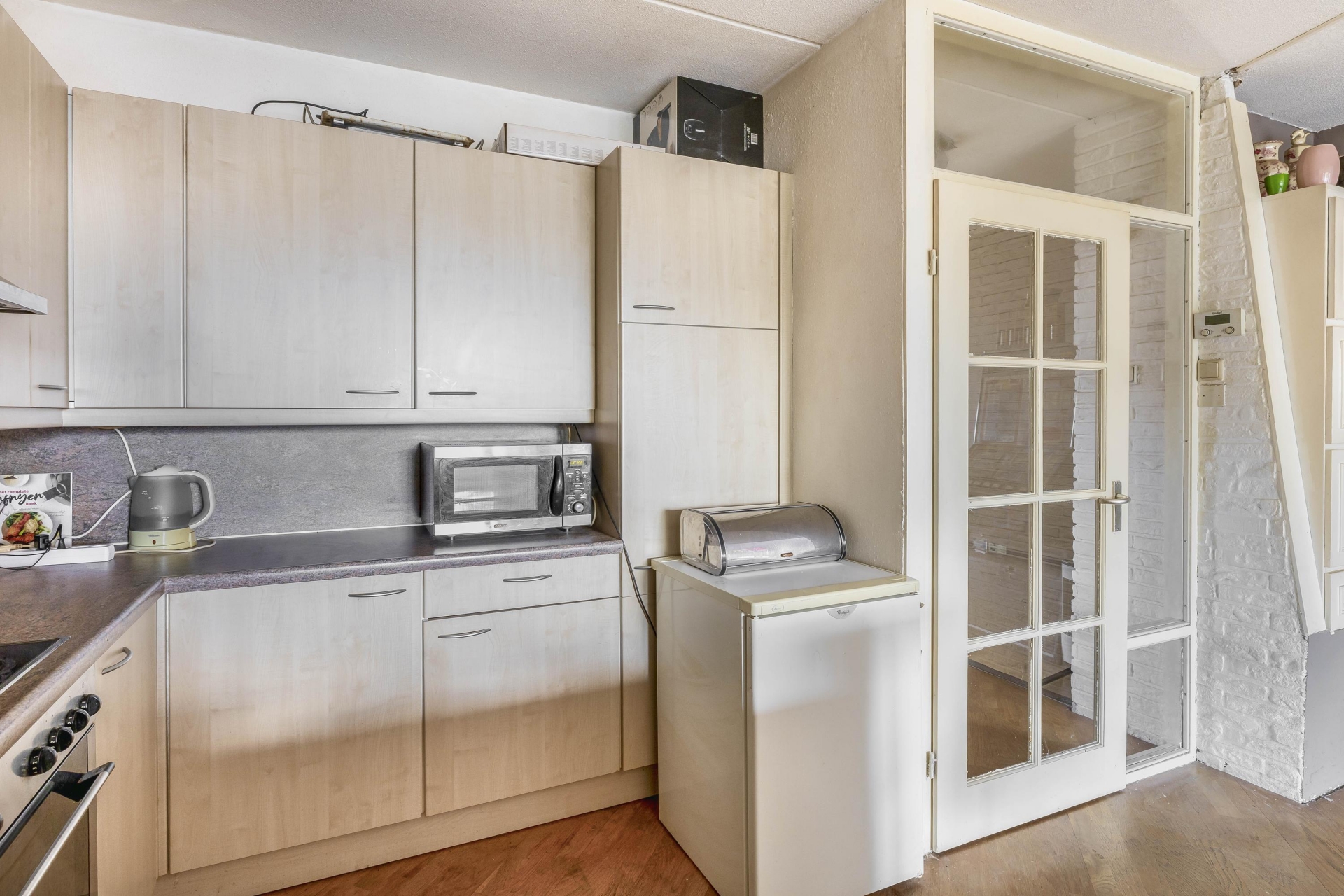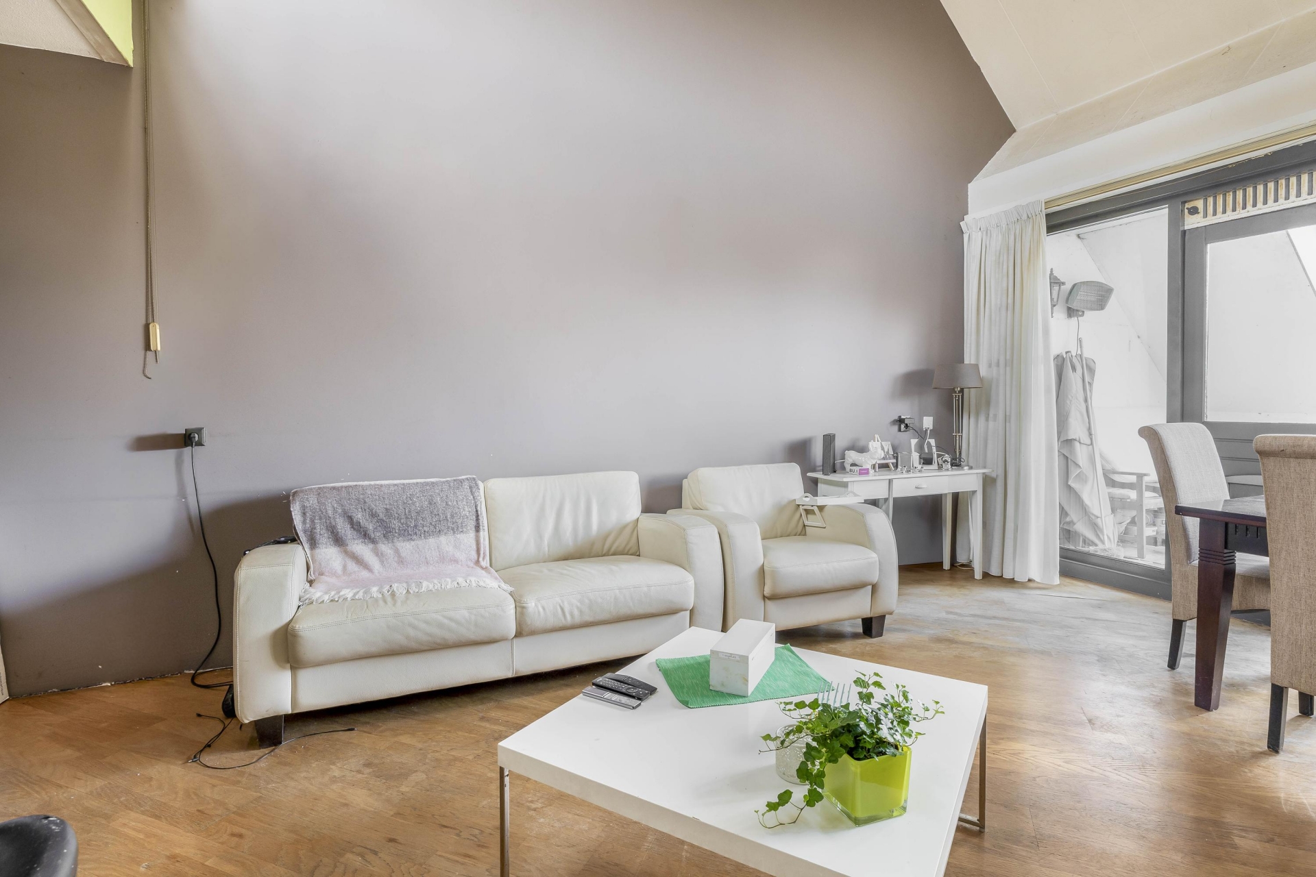 Een verdieping hoger is de woonkamer met hoog plafond en grote raampartijen te vinden. De keuken is functioneel opgezet in een hoekopstelling met veel kastruimte en inbouwapparatuur. De bar tussen keuken en woonkamer maakt het extra gezellig: ideaal voor een snel ontbijt of een drankje met vrienden. De ruimte is voorzien van een houten vloer en een neutrale afwerking die je eenvoudig naar je eigen smaak kunt stylen. Ook een openhaard ontbreekt niet: een sfeervolle toevoeging die voor extra warmte zorgt in de wintermaanden. Met wat liefde en (kleine) aanpassingen is hier een prachtige plek van te maken!