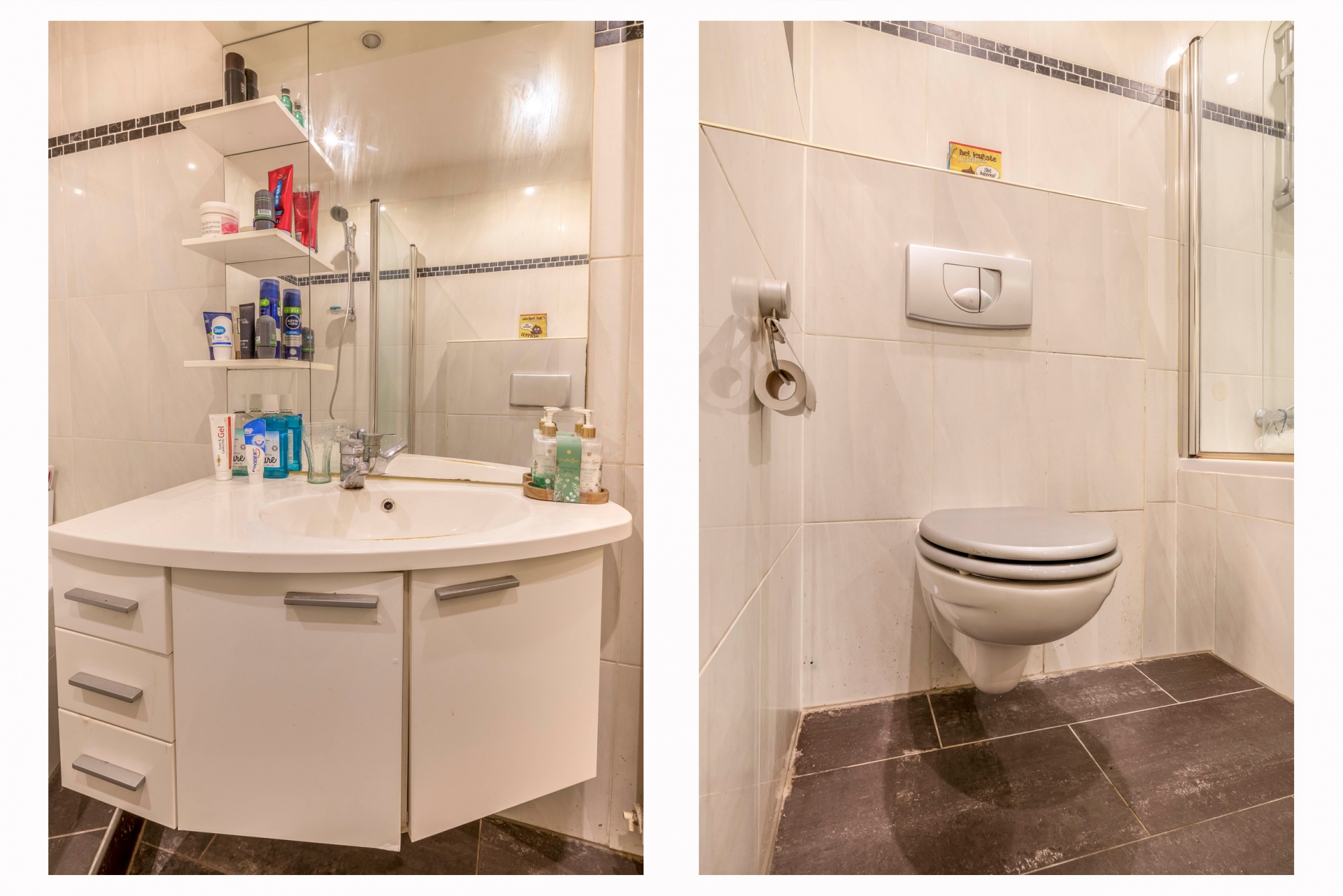 De 85 m² woonoppervlakte is verdeeld over 2 woonlagen. Op de begane grond is een ruime slaapkamer te vinden met een inbouwkast, de badkamer is uitgerust met een ligbad met douche, een wastafelmeubel en een toilet. Verder is er ook nog een trapkast.