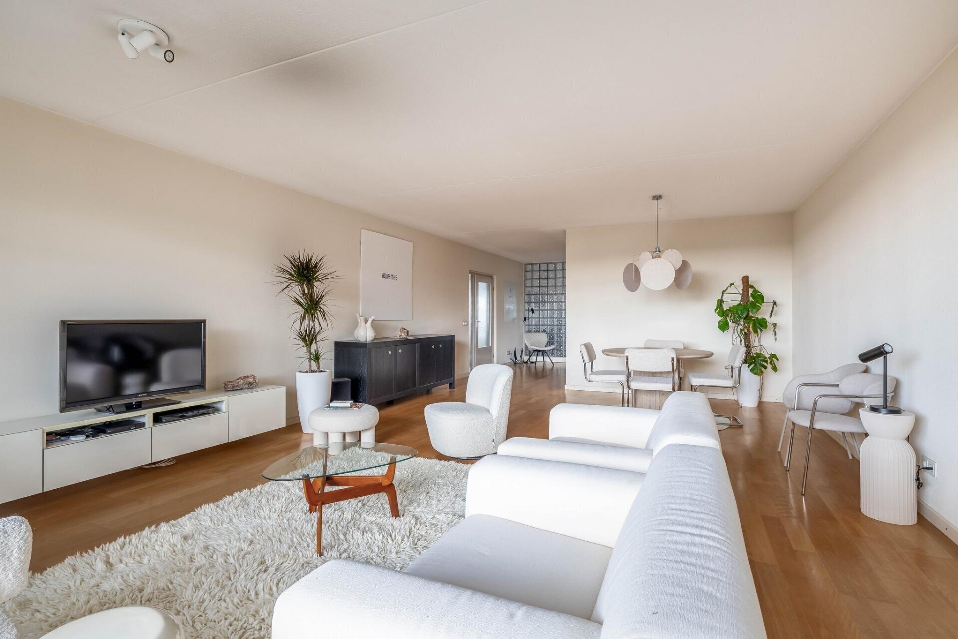 Stap binnen en ervaar de ruimte! De royale woonkamer is het hart van de woning en grenst direct aan het zonnige balkon op het zuidwesten een heerlijke plek om te ontspannen met een drankje en te genieten van de rust en privacy.