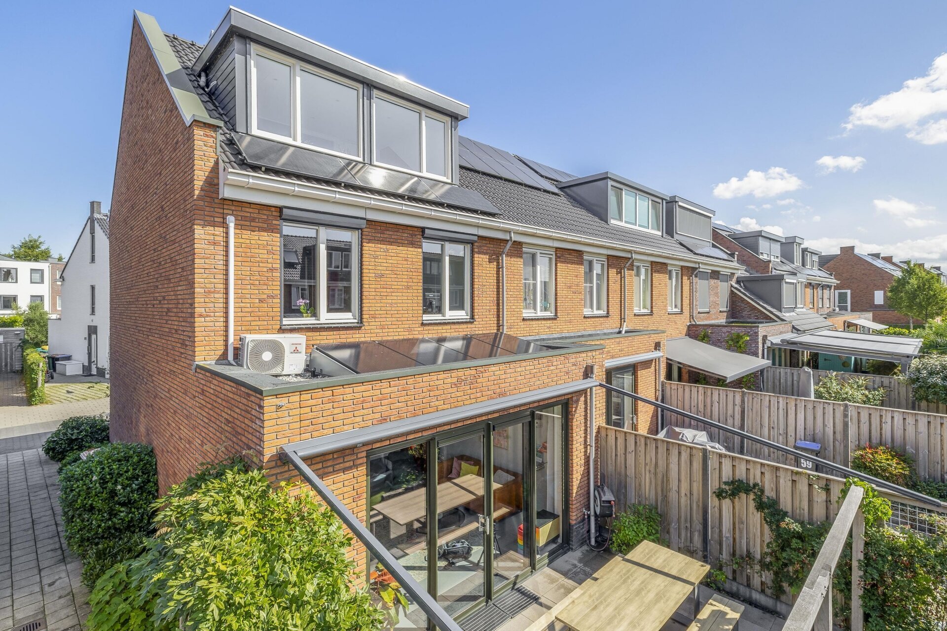 - Voorzieningen Mechanische ventilatie, rolluiken, tv kabel, buitenzonwering, airconditioning, schuifpui, dakraam, glasvezel kabel, zonnepanelen