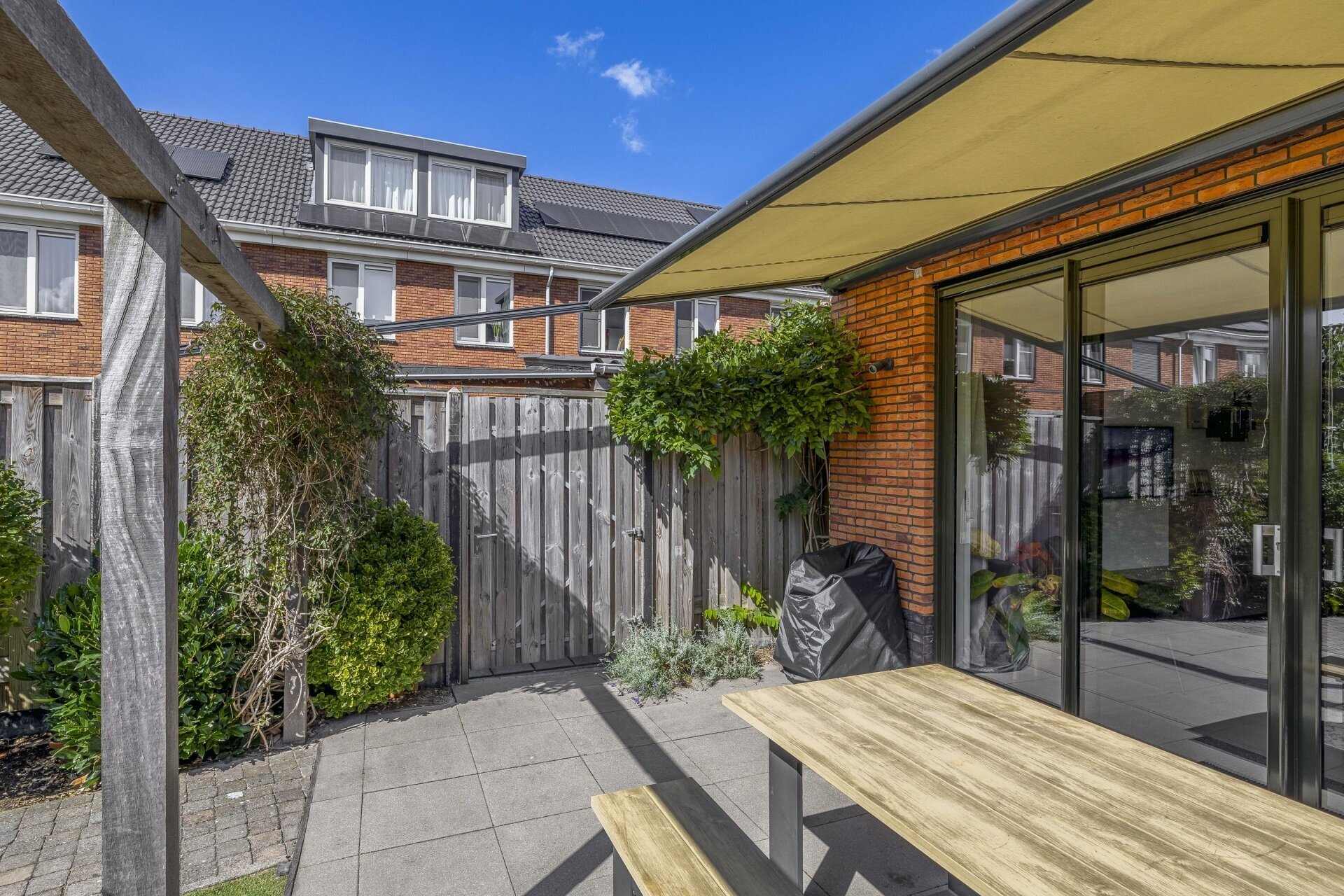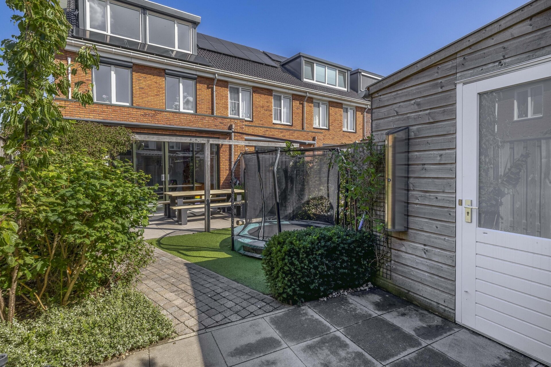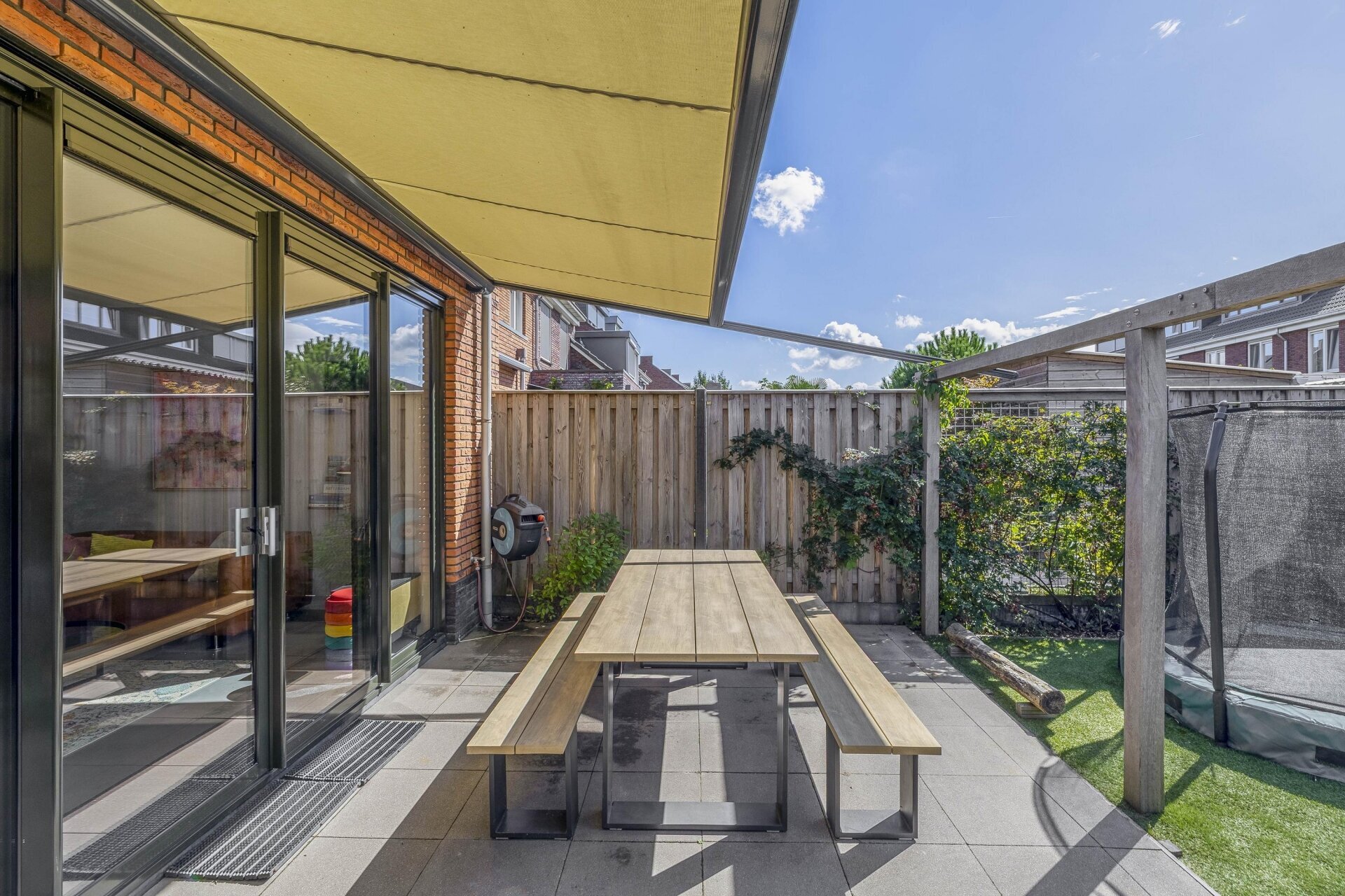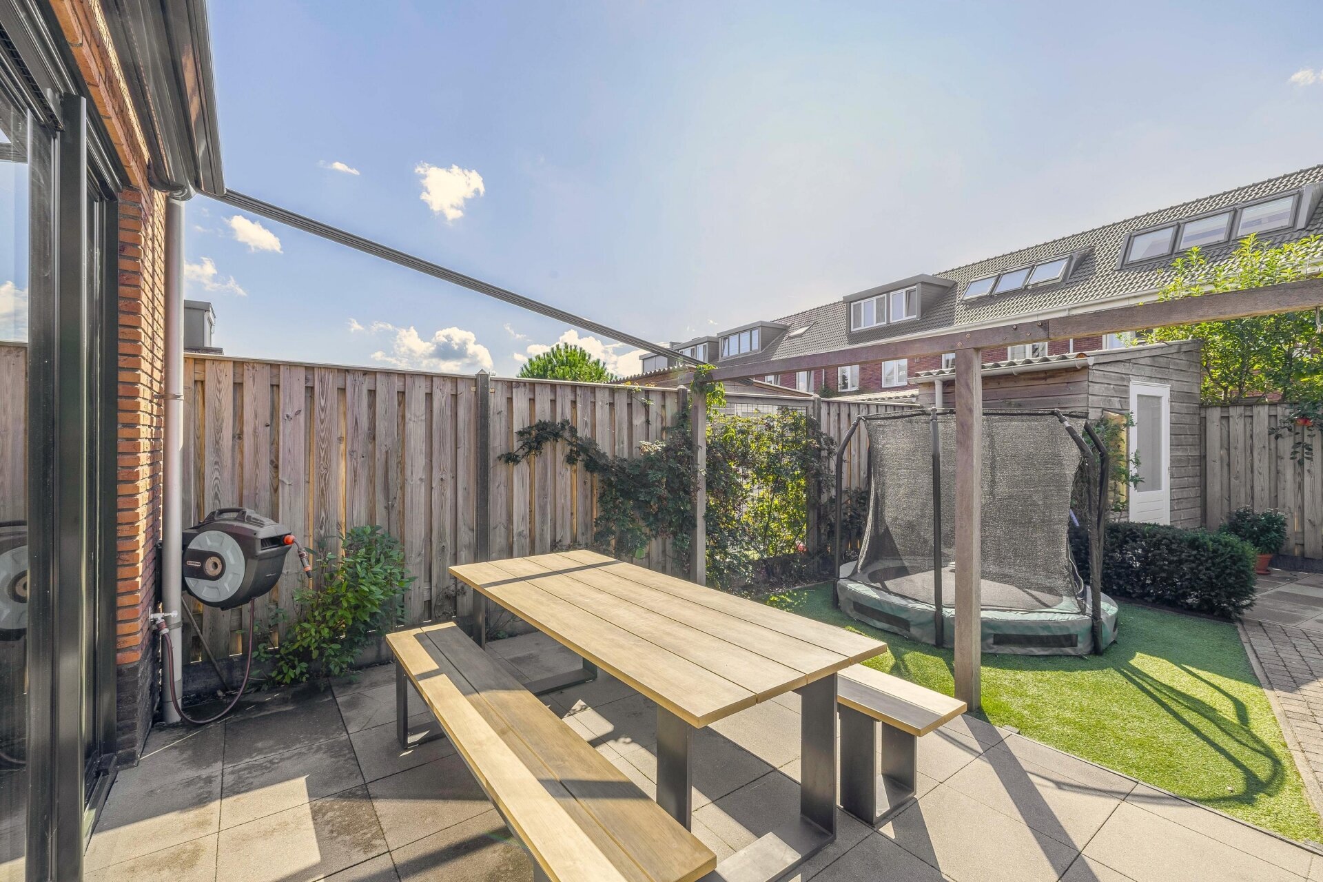 De tuin is een heerlijke plek om te ontspannen. Hier genieten we vrijwel de hele dag van de zon, vaak samen met familie of vrienden.