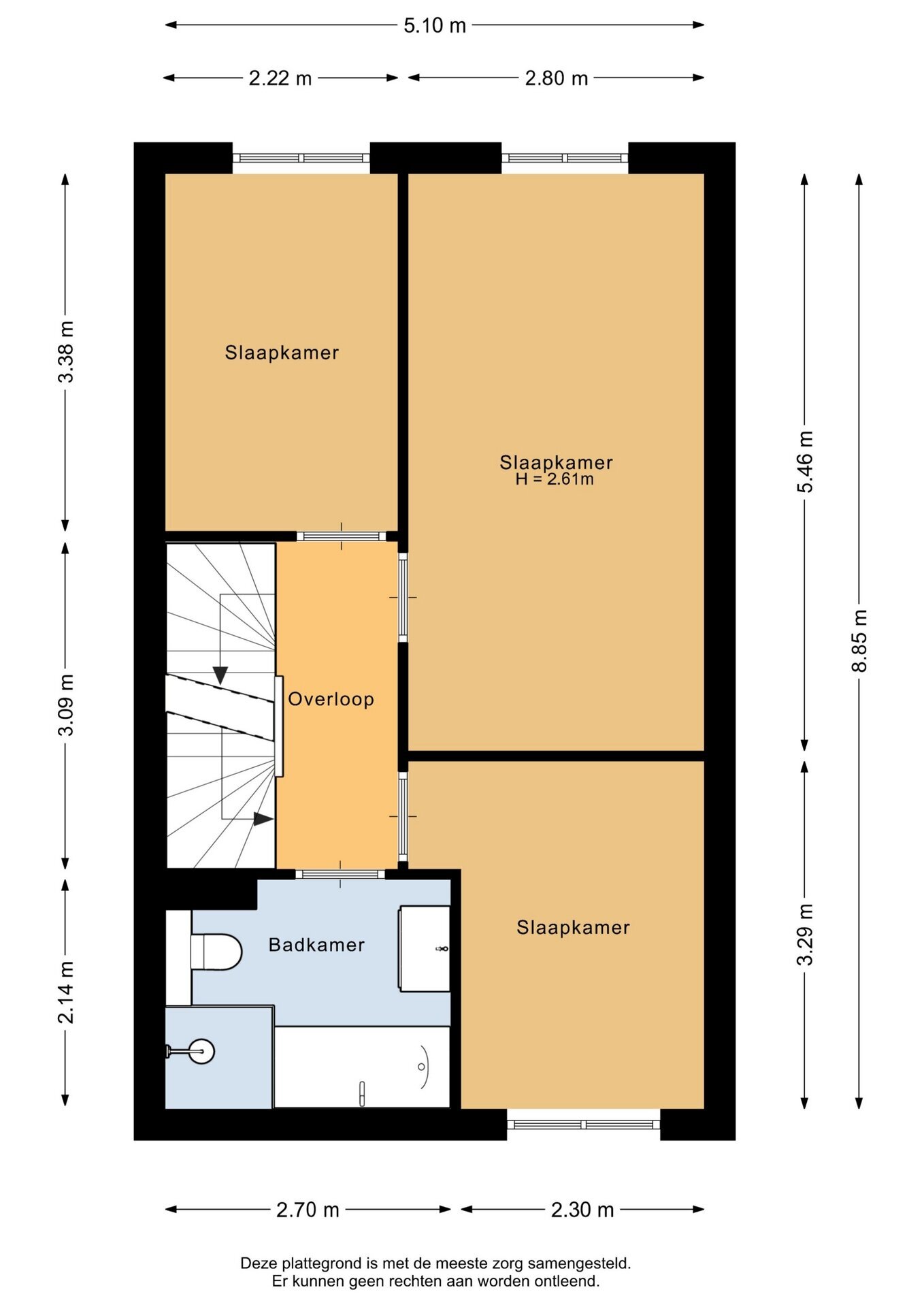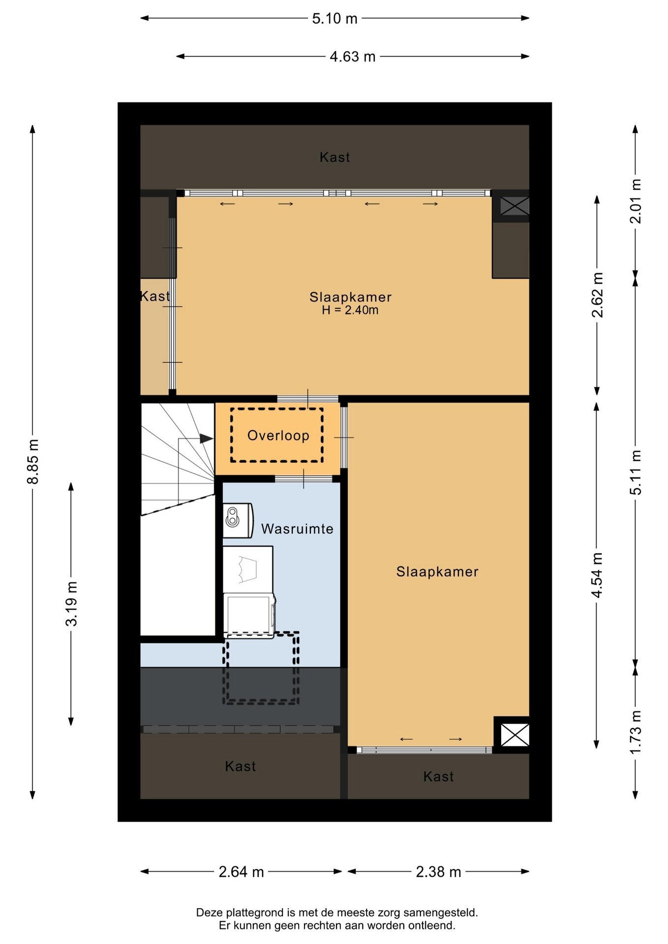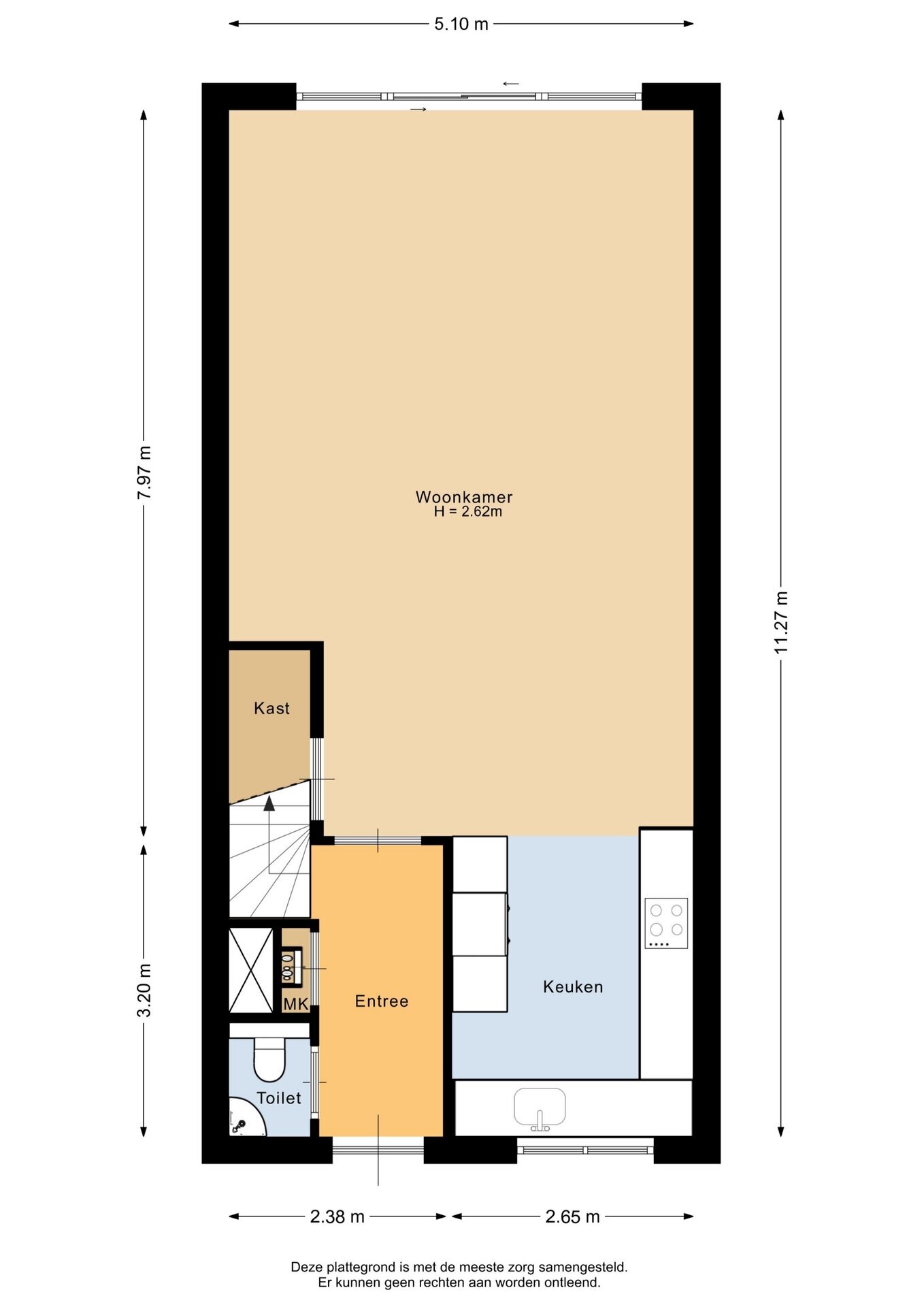 “Deze informatie is door ons met de nodige zorgvuldigheid samengesteld. Onzerzijds wordt echter geen enkele aansprakelijkheid aanvaard voor enige onvolledigheid, onjuistheid of anderszins, dan wel de gevolgen daarvan. Alle opgegeven maten en oppervlakten zijn indicatief.”