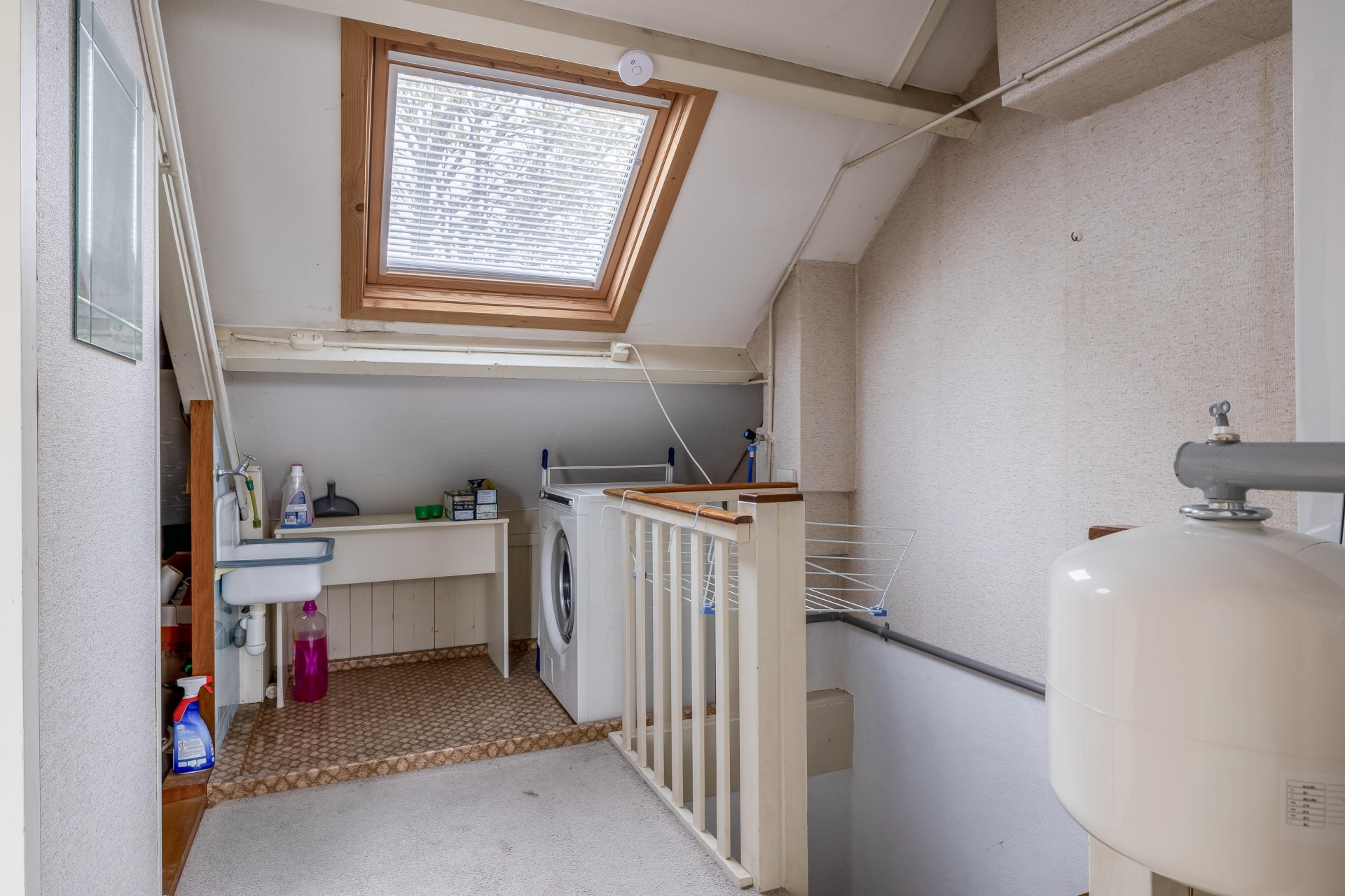 Overloop met een 4e kamer met opstelplaats wasmachine en droger; bergruimte en 5e slaapkamer met dakkapel en bergruimte. Door de woning brede dakkapel aan de achterzijde is ook deze 2e verdieping verrassend ruim.