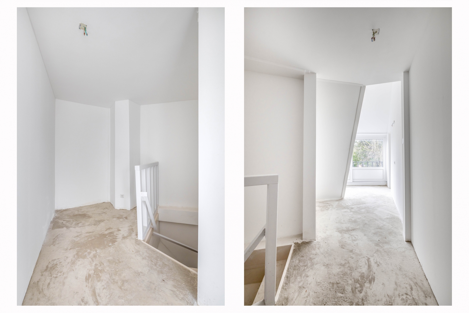 Met in totaal vijf slaapkamers verdeeld over drie verdiepingen is dit huis een uitkomst voor grotere gezinnen of wie gewoon graag de ruimte heeft. De bovenverdieping telt twee slaapkamers, beide met veel lichtinval dankzij de grote ramen. Vanuit de overloop is er toegang tot het indrukwekkende dakterras van bijna 50 m² – een echt verlengstuk van de woning. De derde verdieping biedt nog een volwaardige zolderkamer, perfect als hobbyruimte, extra slaapkamer of thuiskantoor.