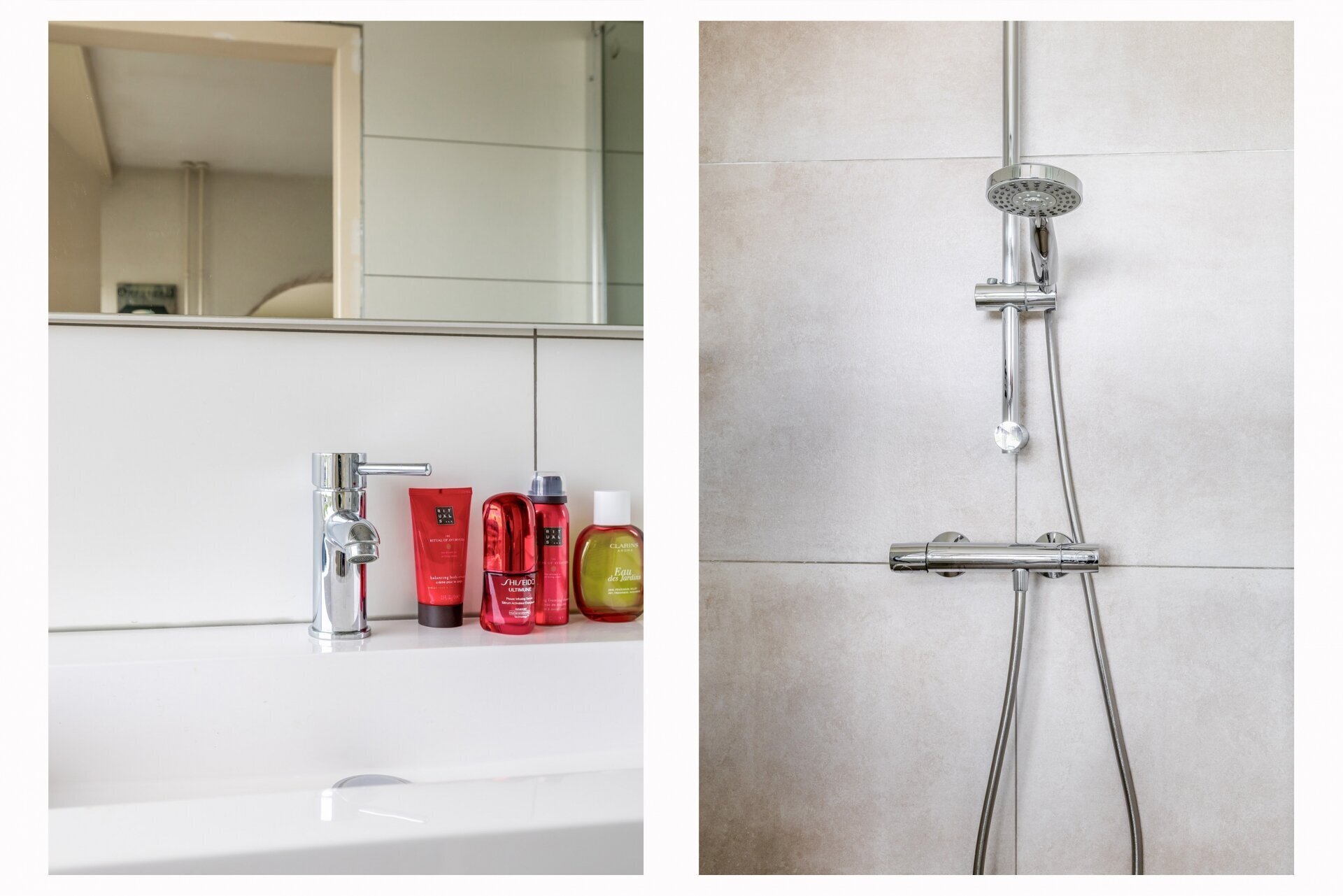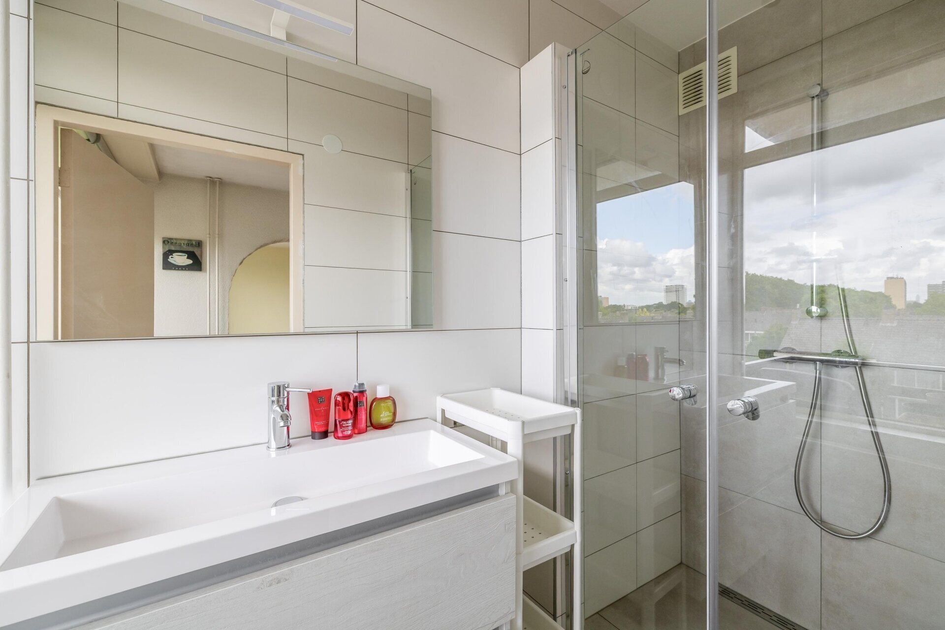 Grenzend aan de keuken bevindt zich de moderne badkamer, voorzien van een ruime inloopdouche en een stijlvol wastafelmeubel. De badkamer is twee jaar geleden volledig vernieuwd.