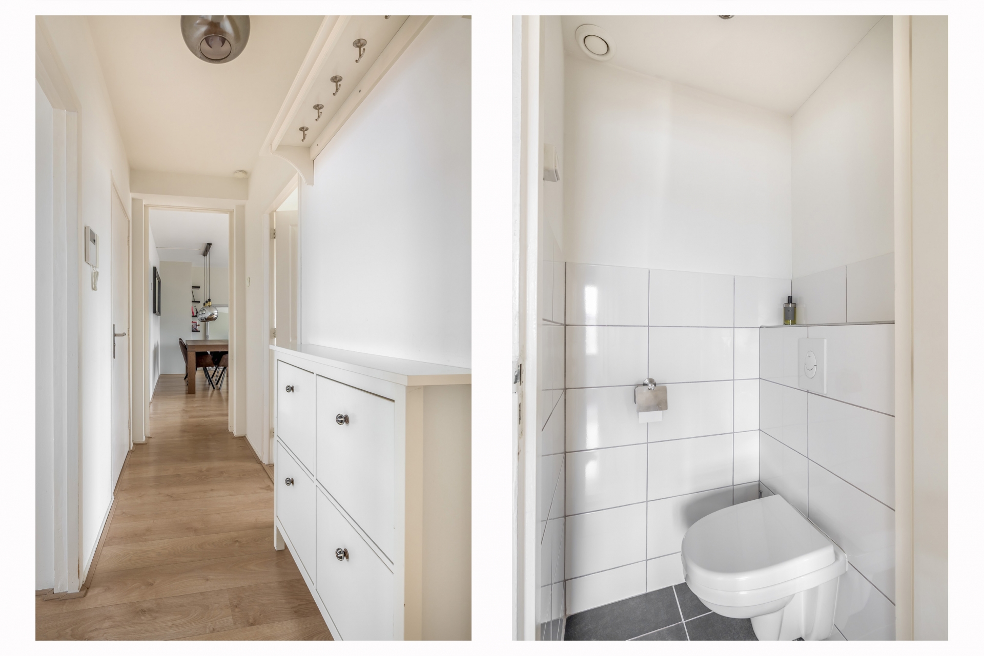 Naast de keuken bevindt zich het half betegelde toilet met wand closet.