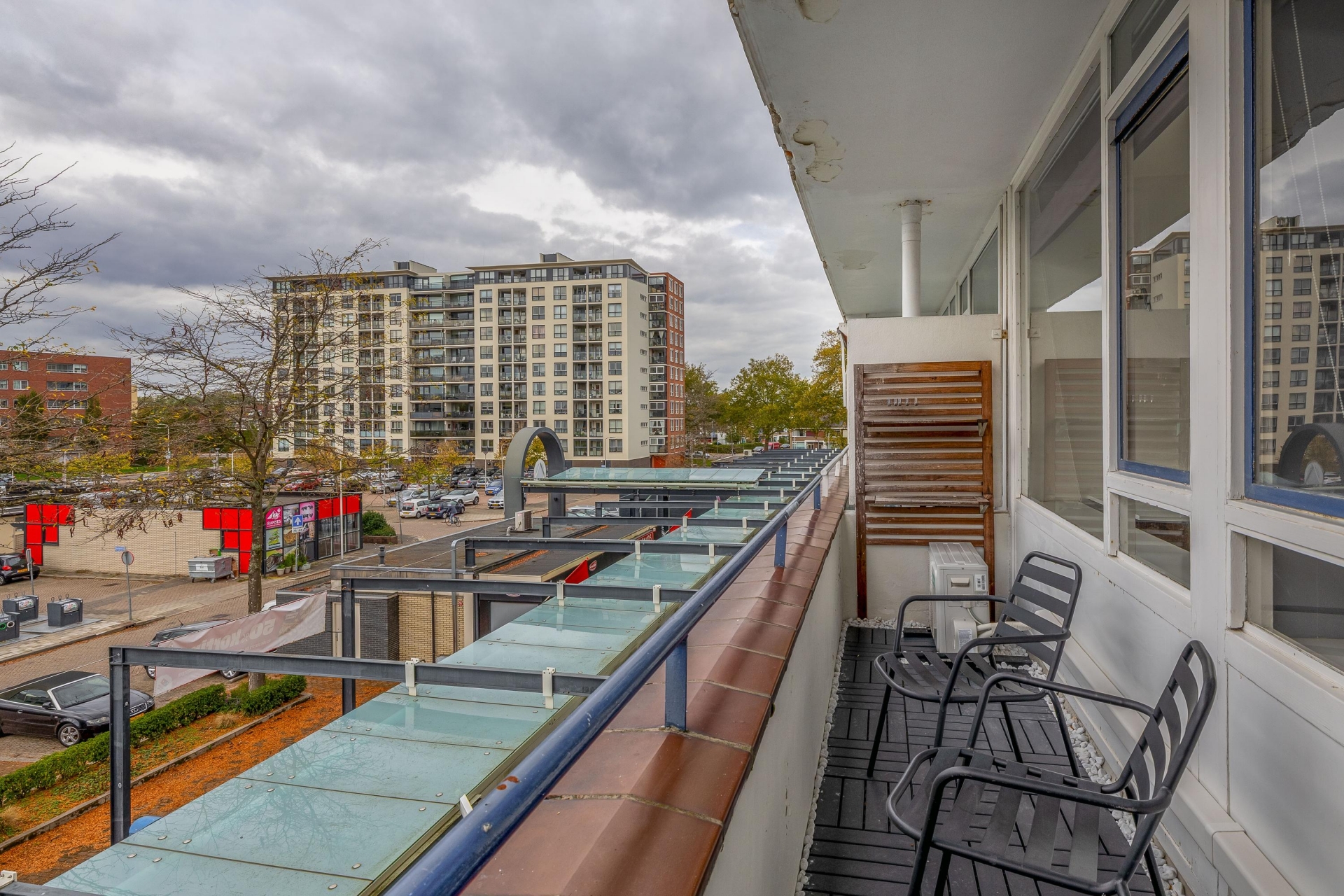 -Elektrische zonwering boven balkon aan voorzijde (zuid west)