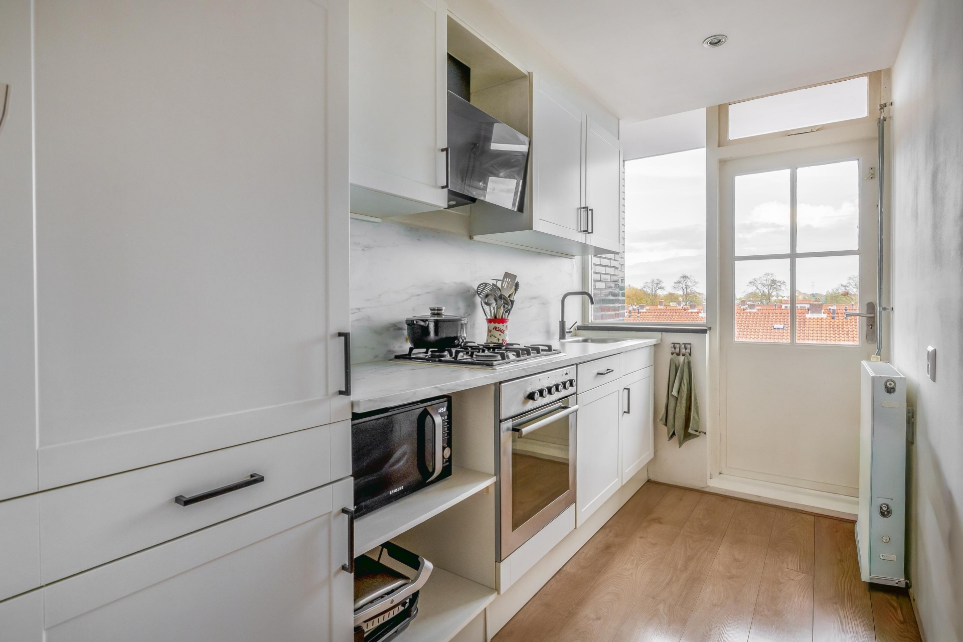 Vanuit de keuken is er een deur naar het kleine balkon aan de achterzijde (3.4m²).