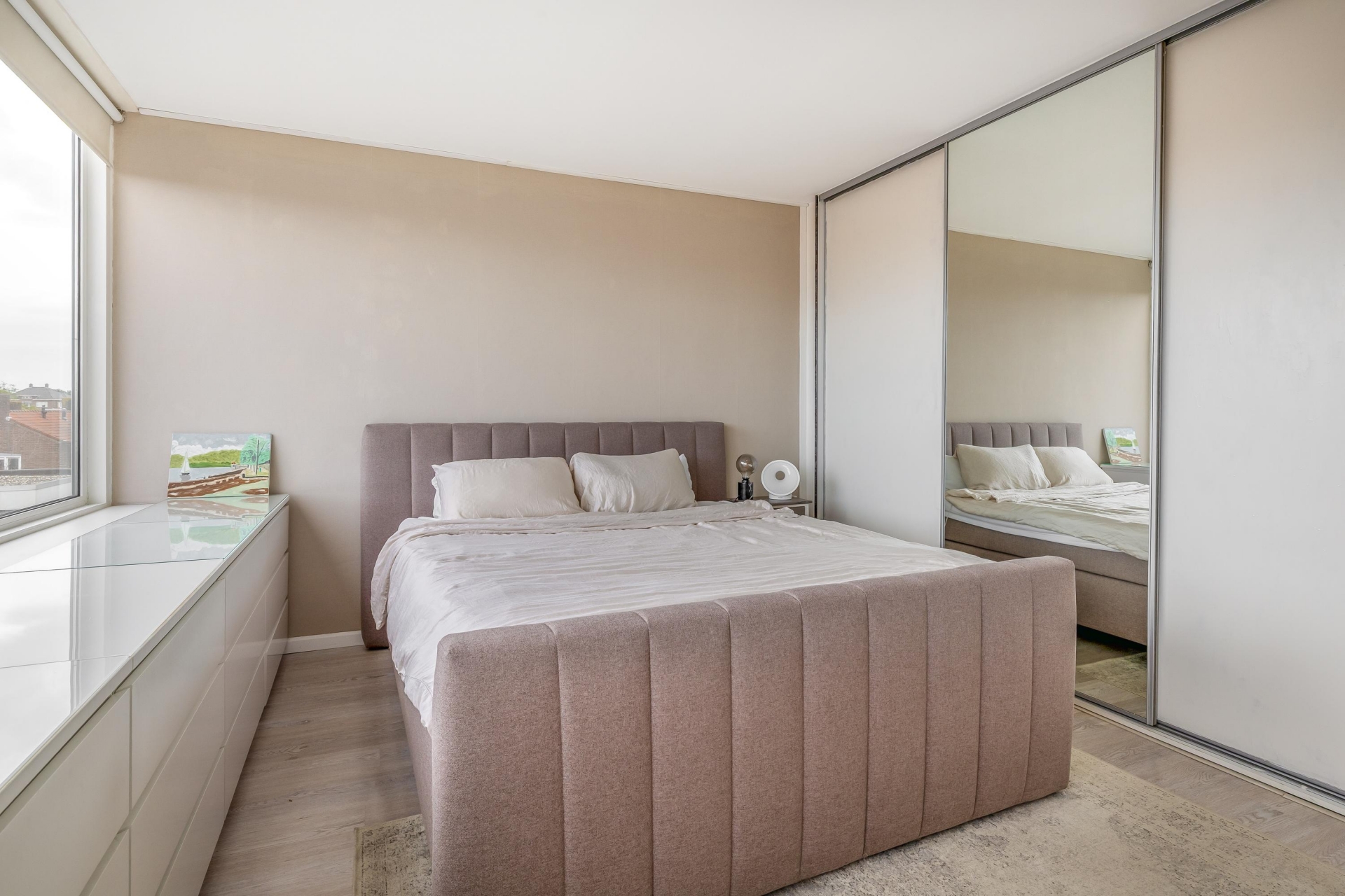 Vanuit de woonkamer is ook de hoofdslaapkamer bereikbaar.