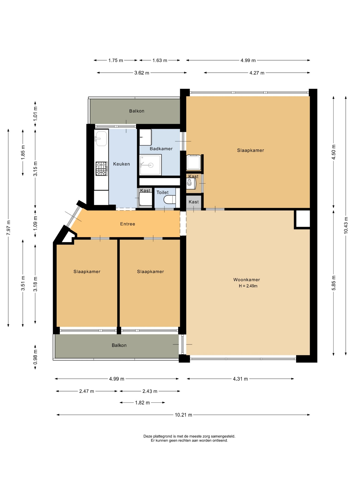 “Deze informatie is door ons met de nodige zorgvuldigheid samengesteld. Onzerzijds wordt echter geen enkele aansprakelijkheid aanvaard voor enige onvolledigheid, onjuistheid of anderszins, dan wel de gevolgen daarvan. Alle opgegeven maten en oppervlakten zijn indicatief.”
