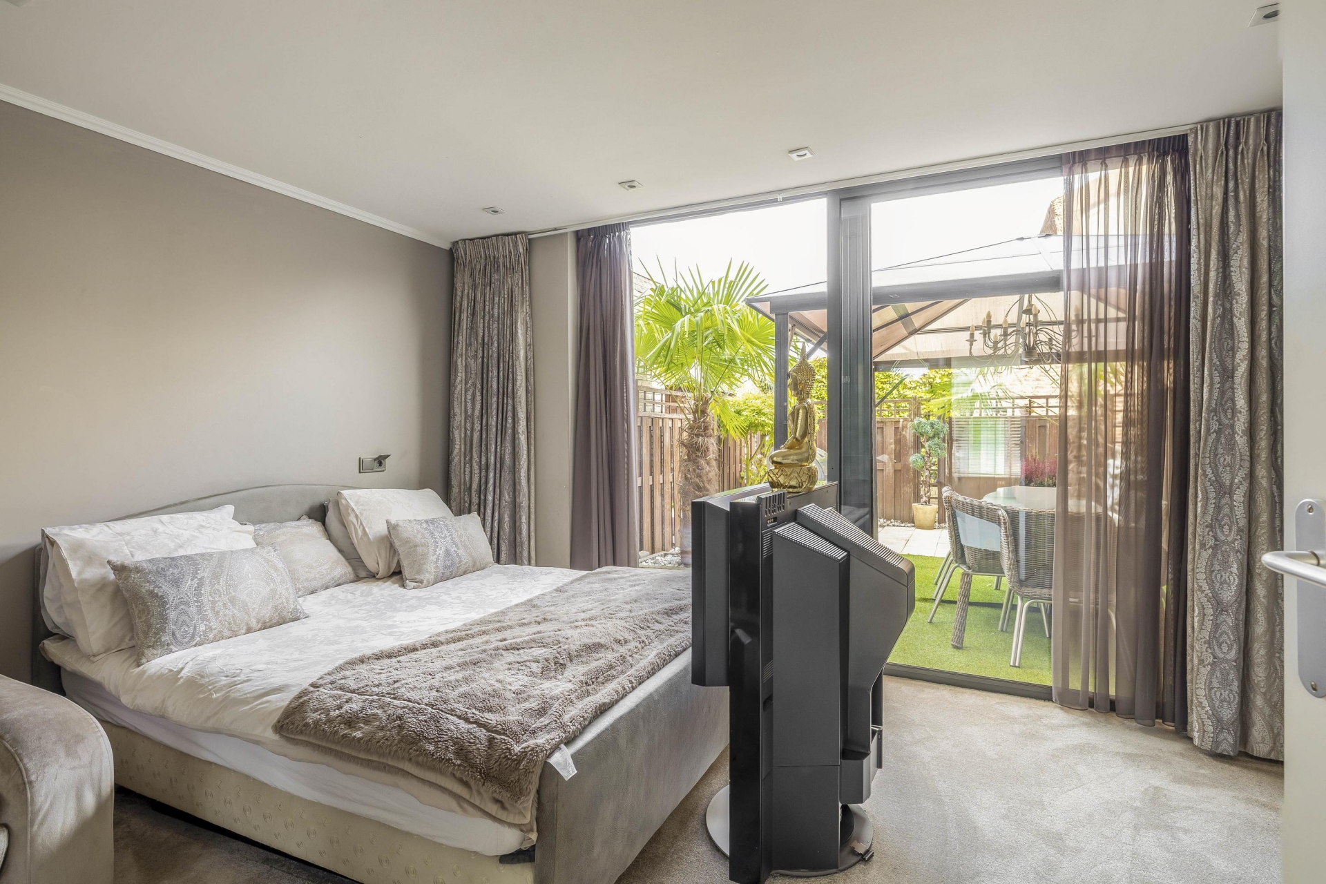 Entree/hal, toilet met fonteintje, trapopgang naar de eerste verdieping. Ruime slaapkamer aan de achterzijde, voorzien van een badkamer en suite. Hier zijn een ruime inloopdouche en wastafel te vinden. Vanuit de slaapkamer is er toegang tot de achtertuin, die gelegen is op het oosten.
