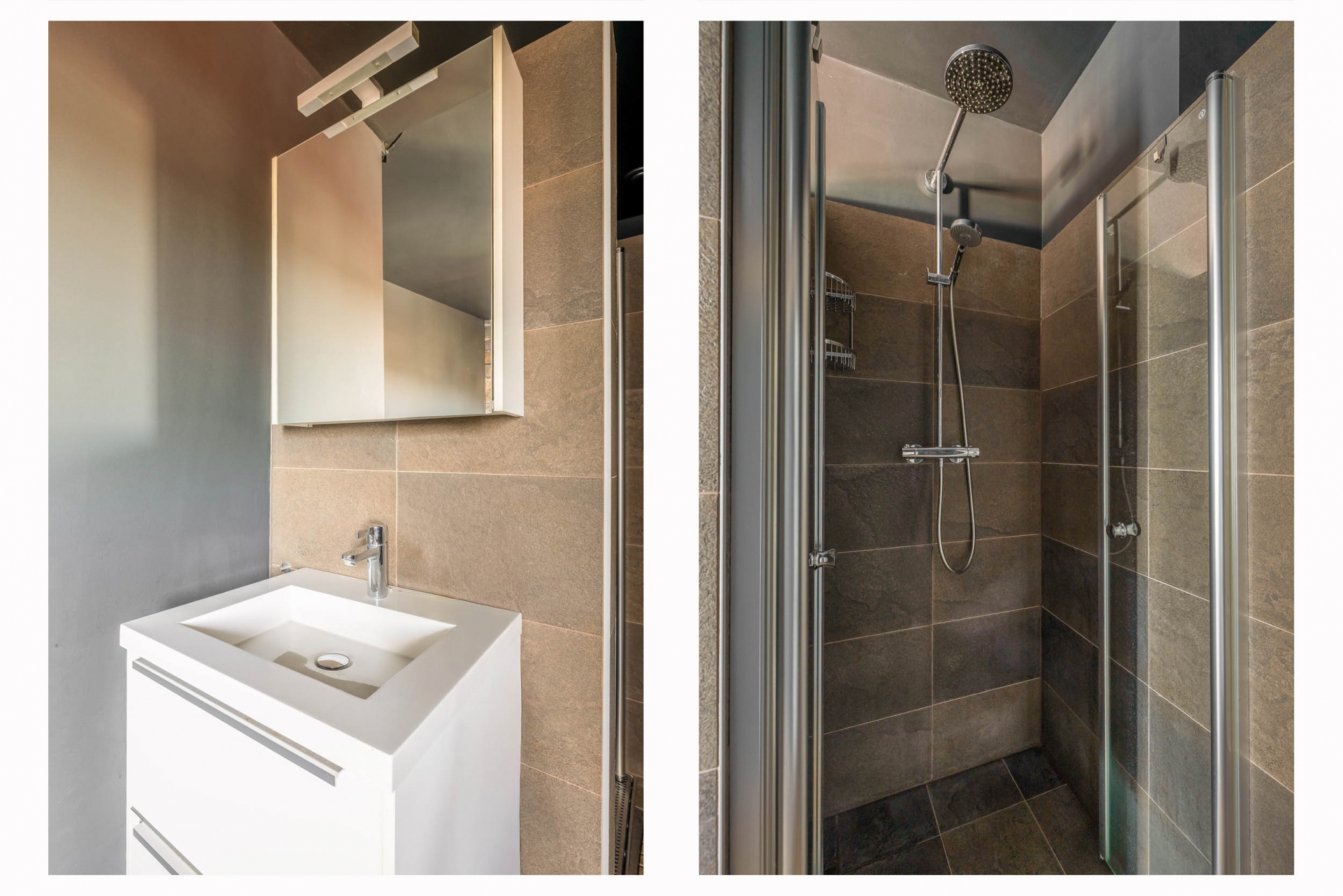 Een tussenhal geeft toegang tot 2e slaapkamer met eigen badkamer en-suite (met inloopdouche, 3e toilet, wastafelmeubel en designradiator). Hier bevindt zich ook de tweede hoofdentree tot het penthouse.