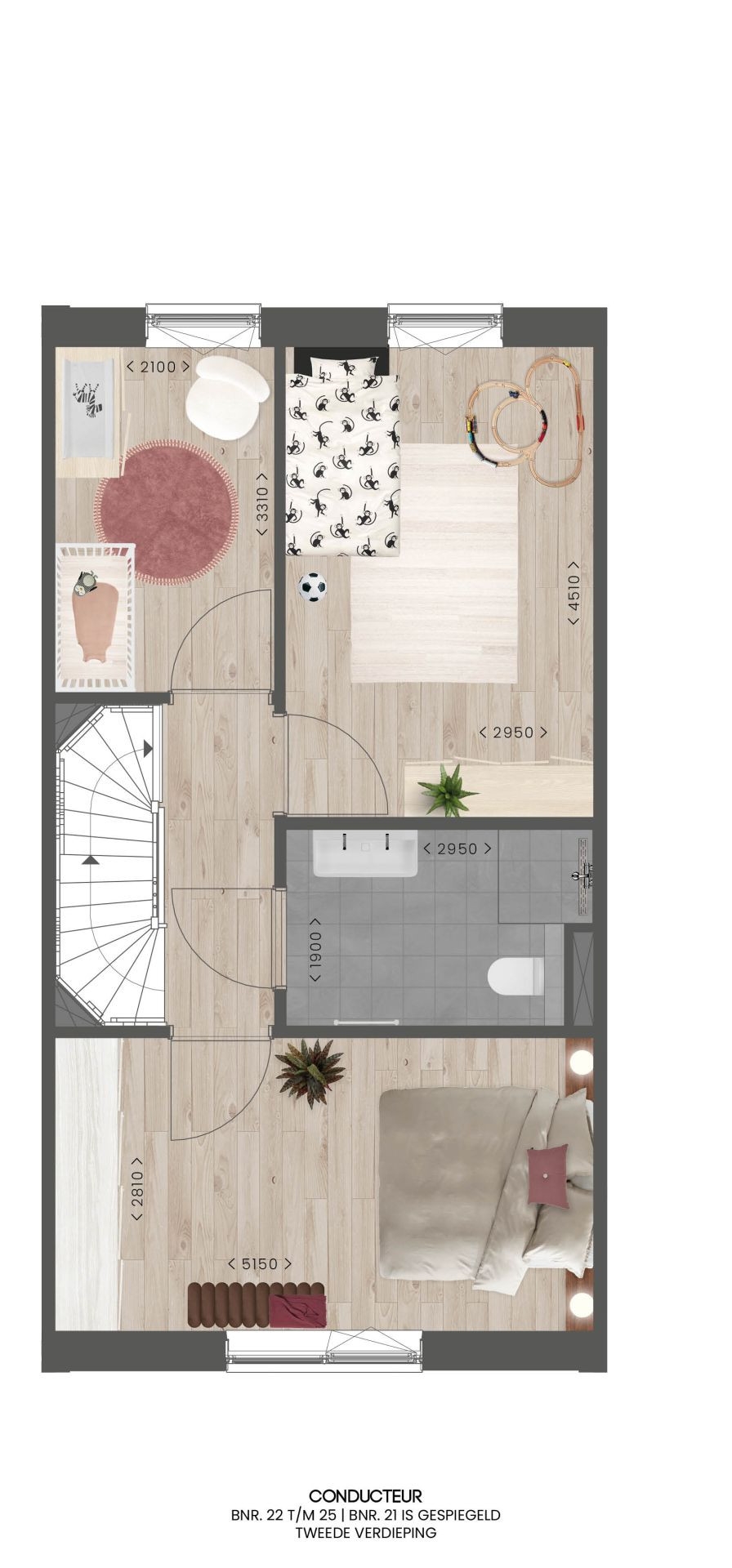 Aan de sfeervolle Spoorstraat liggen de herenhuizen van het type Conducteur. Deze woningen vallen direct op door hun charmante uitstraling: een mooie gemêleerde gevelsteen, afwisselende gevelindeling en elegante Franse balkons geven het geheel een karaktervolle en tijdloze look.