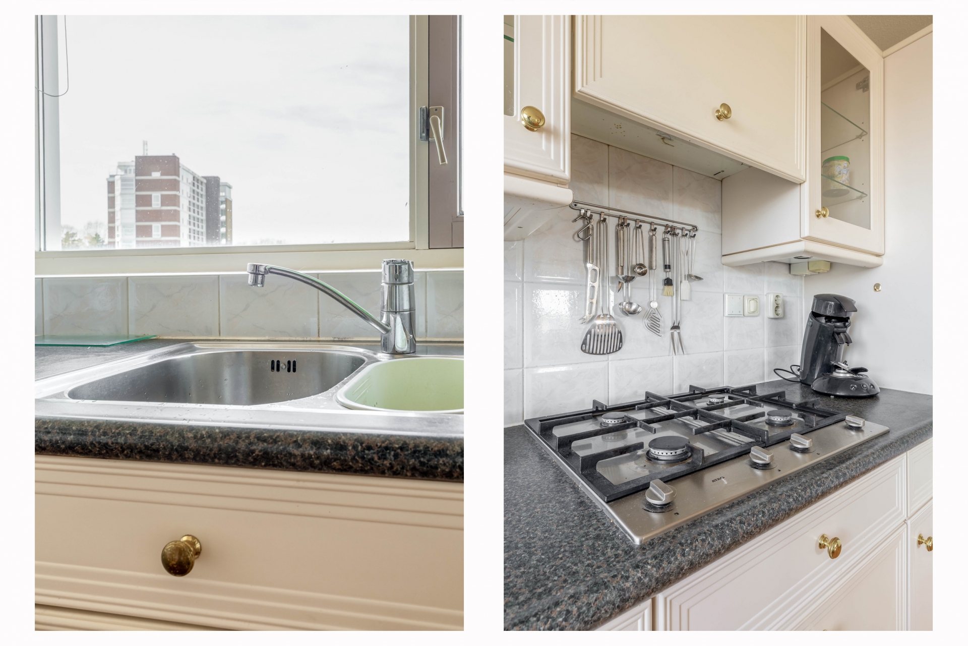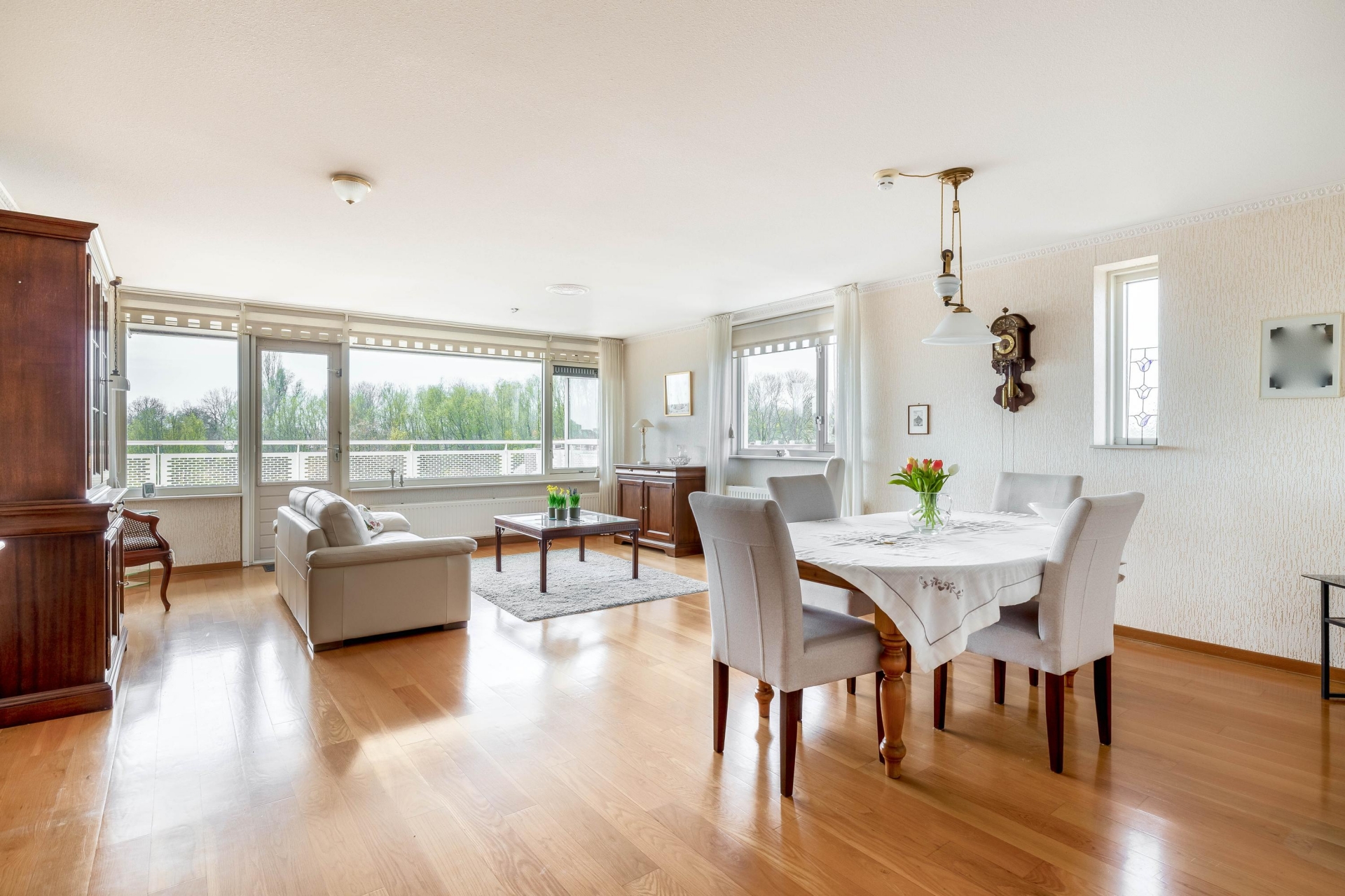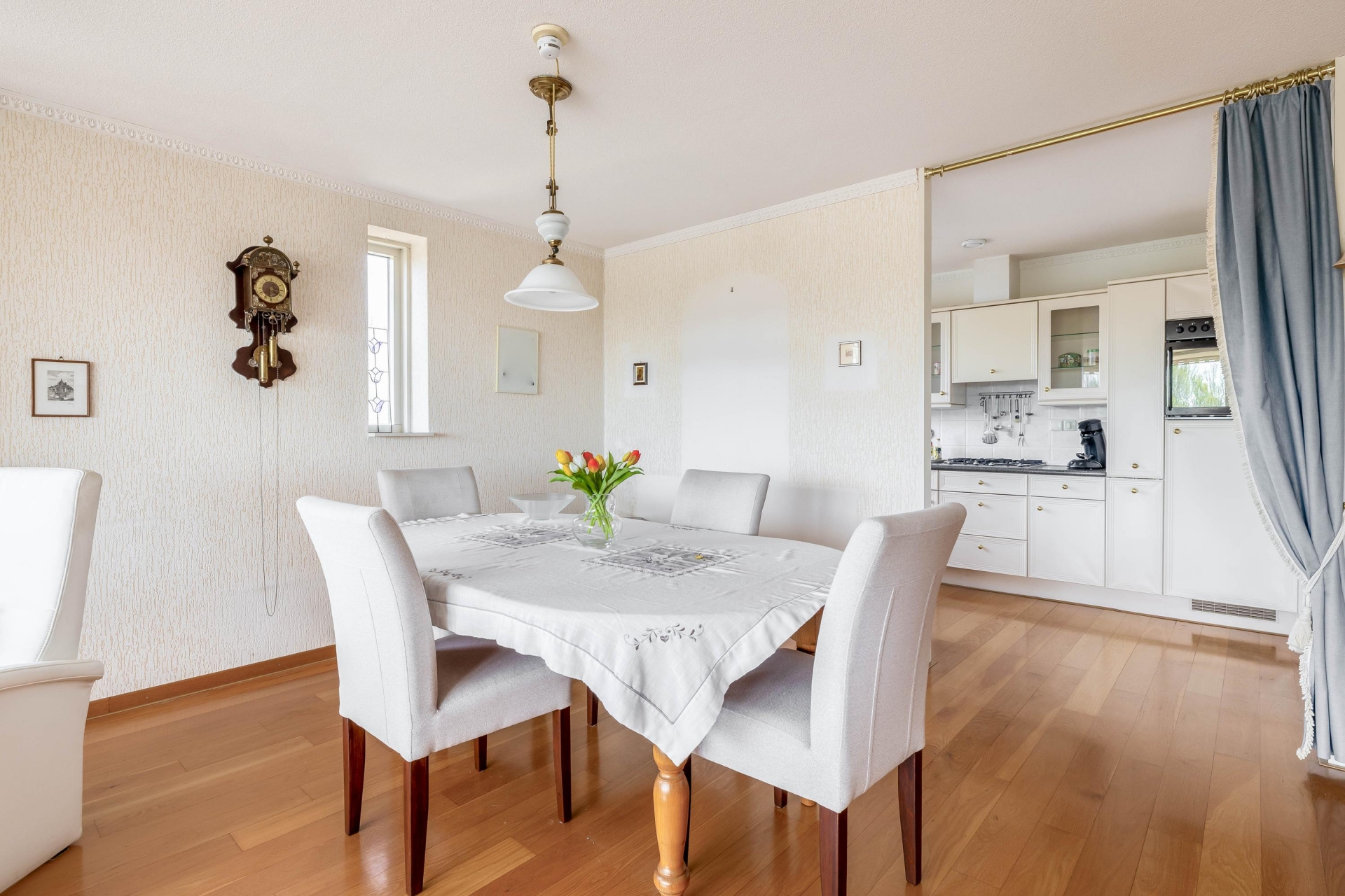 Zodra je de woonkamer binnenstapt valt het direct op: de grote raampartijen en het vrije uitzicht. Vanuit de zithoek kijk je uit over het water en het groen, wat zorgt voor een rustig en open gevoel. Dankzij de hoekligging profiteer je hier van extra lichtinval gedurende de hele dag. De woonkamer is royaal opgezet en biedt voldoende ruimte voor een comfortabele zit- en eethoek. Vanuit de woonkamer heb je direct toegang tot het balkon, waardoor binnen en buiten op een natuurlijke manier in elkaar overlopen.